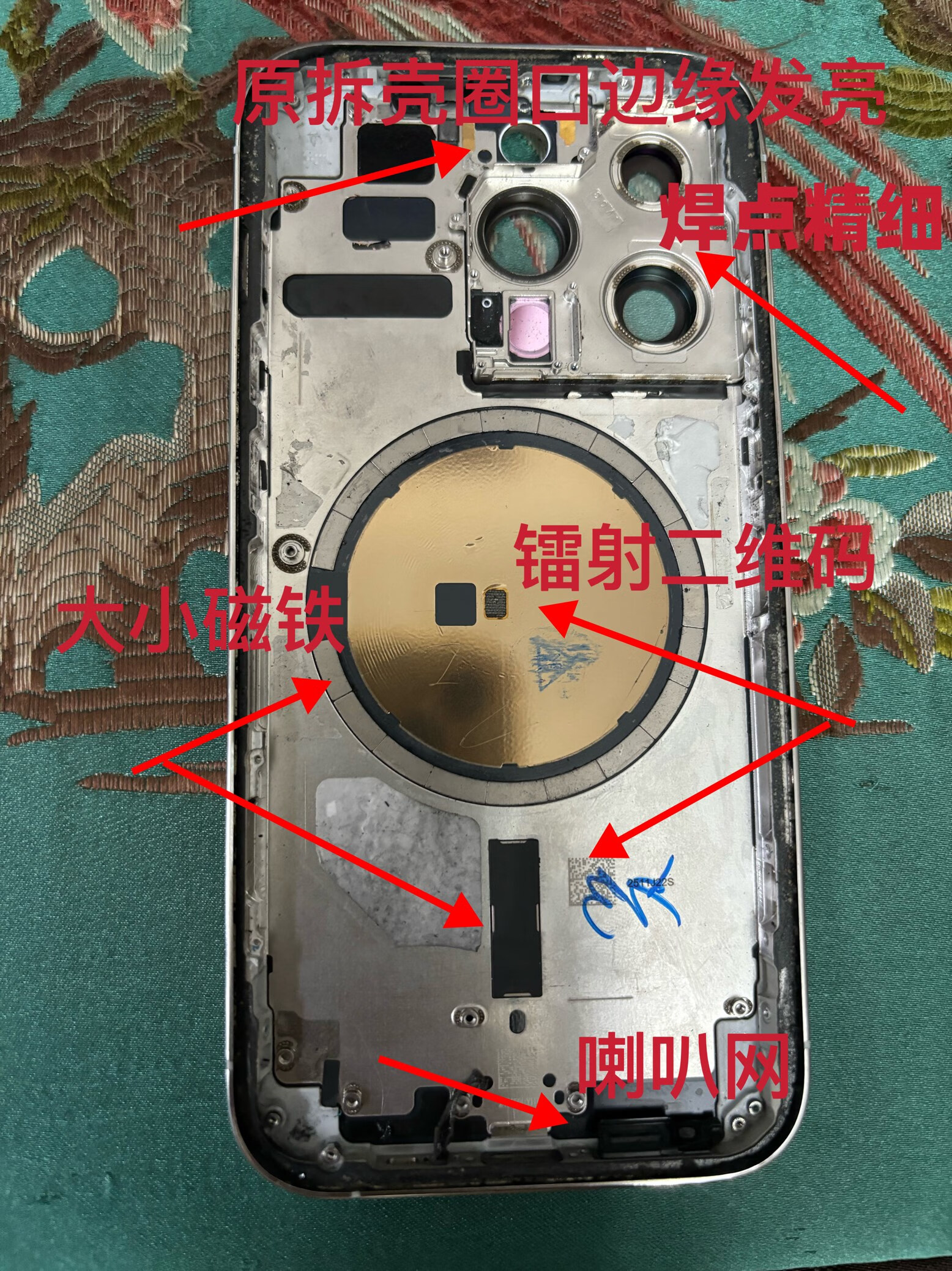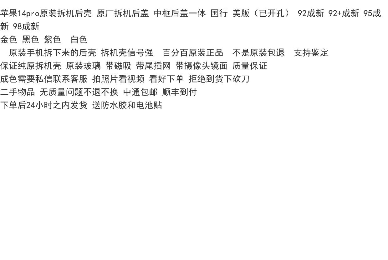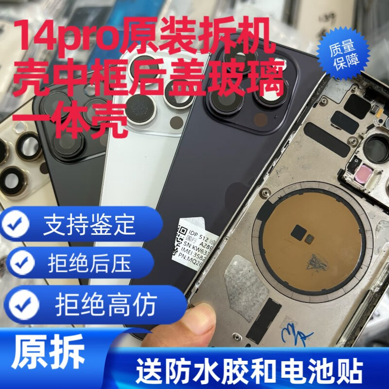 P Apple 14pro original disassembled rear case. Original disassembled rear cover. The middle frame and back cover are all glass. Black. 92% new. The middle frame has a few minor scratches.