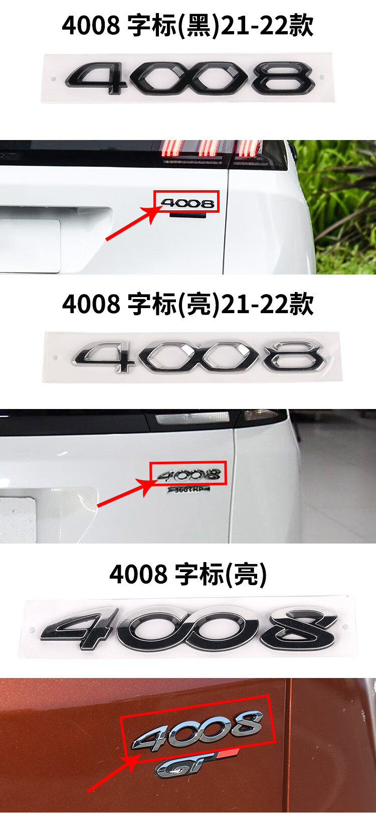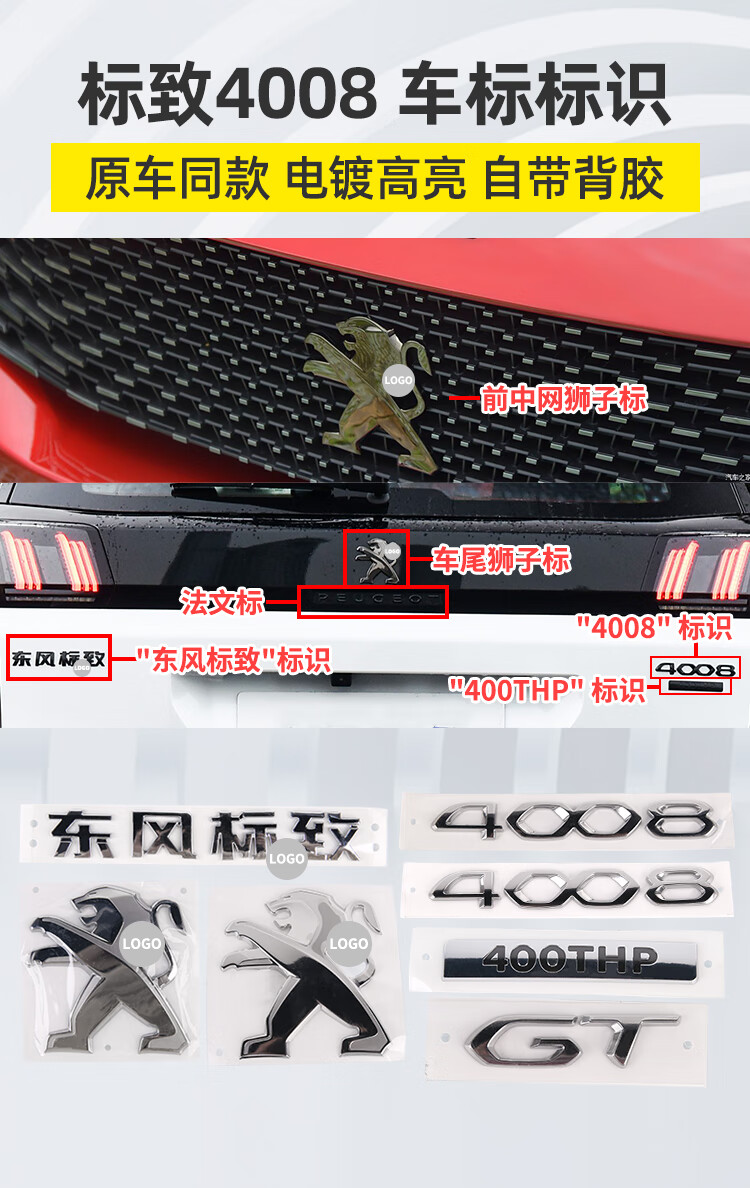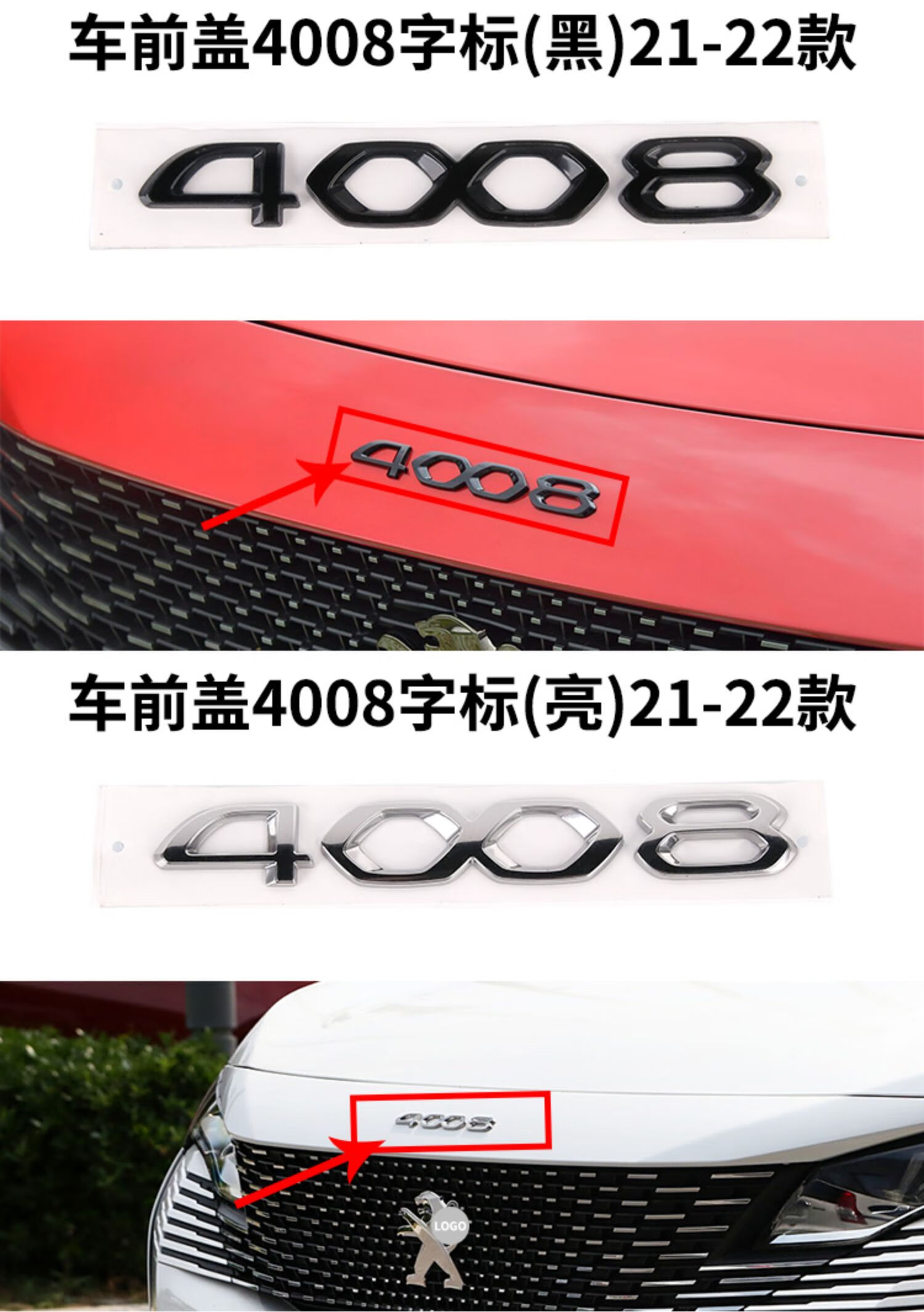 Yusenyi Dongfeng Peugeot 4008 car logo logo front cover lion logo GT rear rear English pinyin number logo 360THP car front cover 4008 character logo black 2122 model