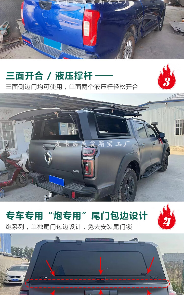 Yusenyi Pickup Cannon King Kong Cannon Fengjun 57 Trunk Cover Trunk All-in-one High Cover Tail Box High Top Cover 1.76 Meters Longer Order Free LED Work