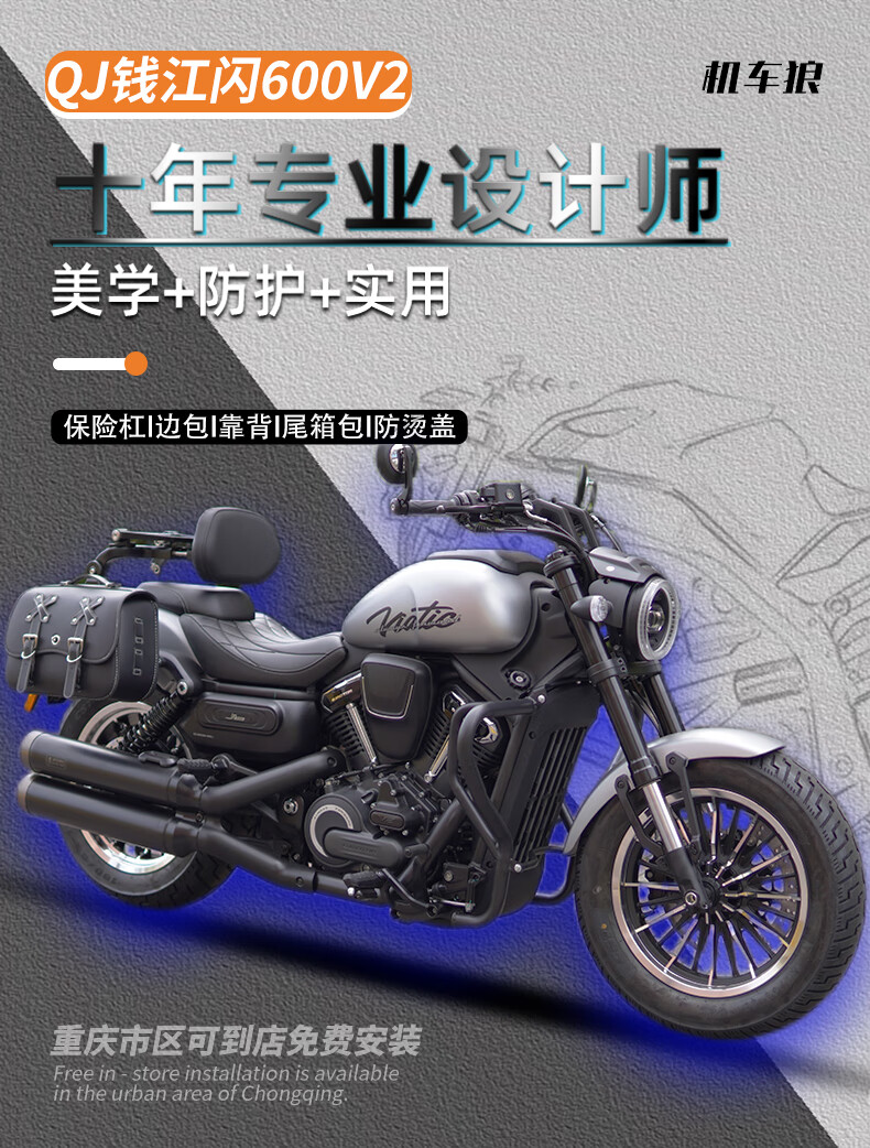 Gongma is suitable for QJ Qianjiang flash 600V2 guard bar original parts side bag rear backrest tail bag anti-scald cover non-destructive installation mobile phone holder (U-shaped handlebar model)