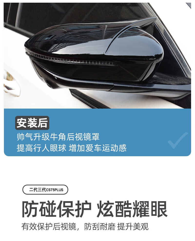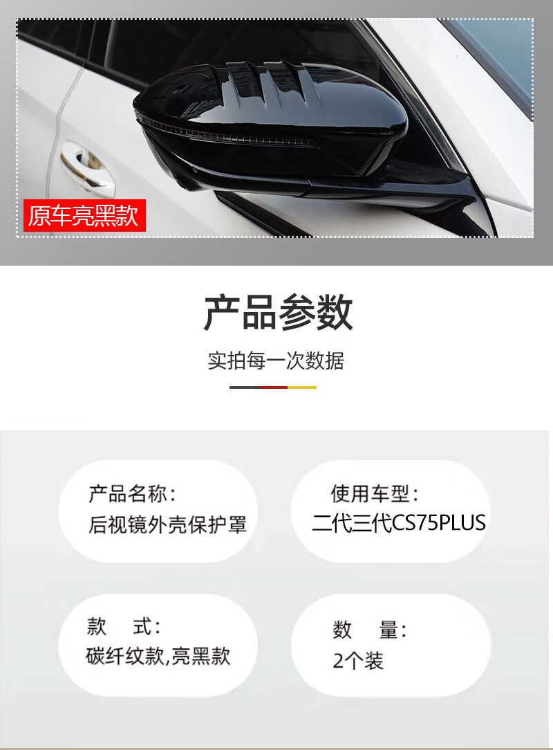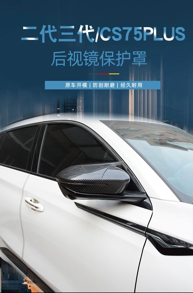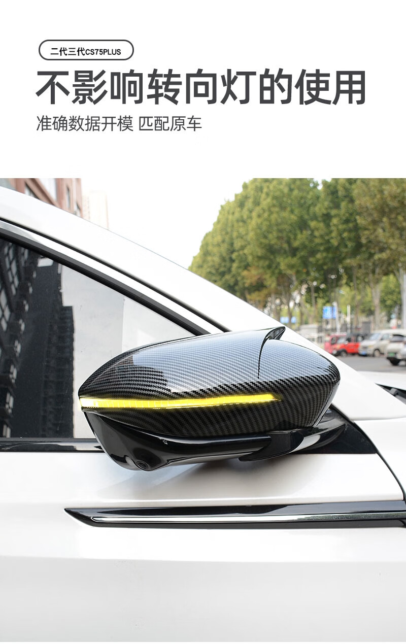 Yusenyi Changan second and third generation CS75plus horn rearview mirror cover reversing mirror housing protective cover modified horn rearview mirror cover carbon fiber pattern pair