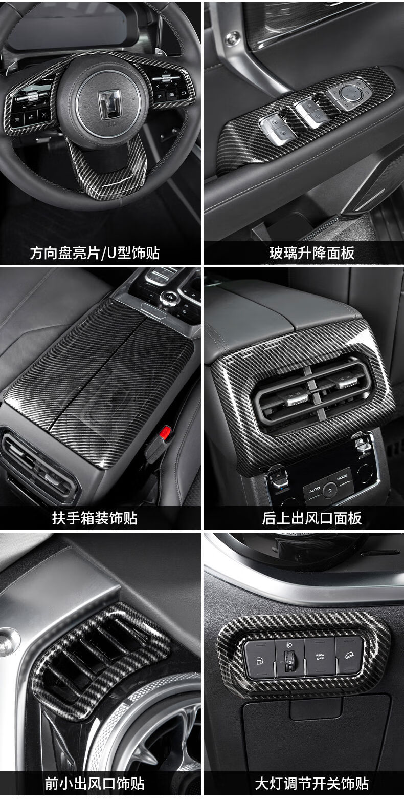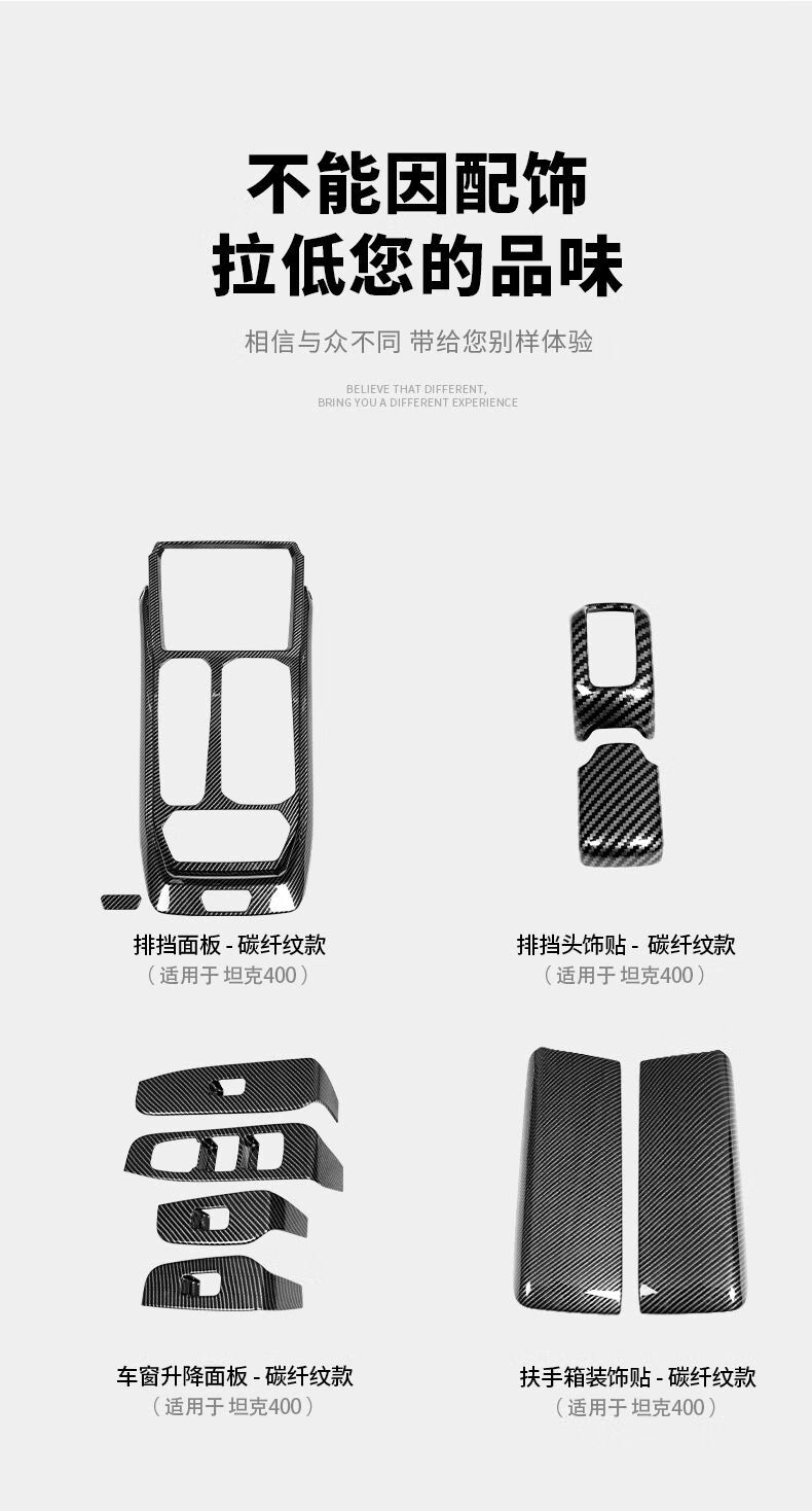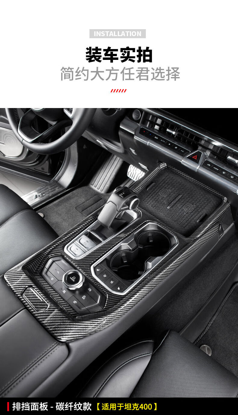 Yusenyi applicable tank 400hi4t interior modification kit central control gearbox glass lift rear anti-kick 4005D carbon fiber pattern armrest box cover 2-piece set