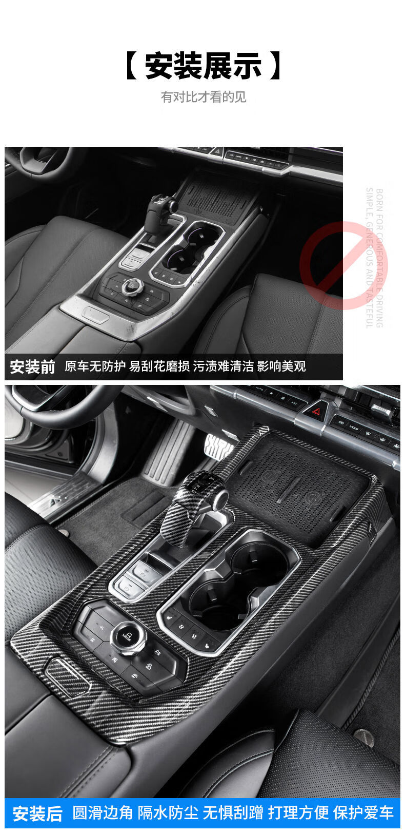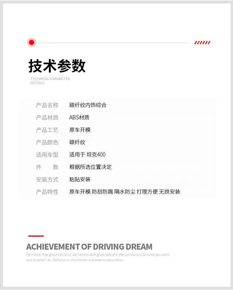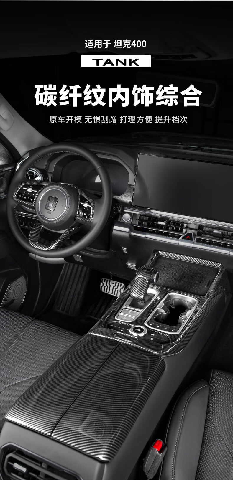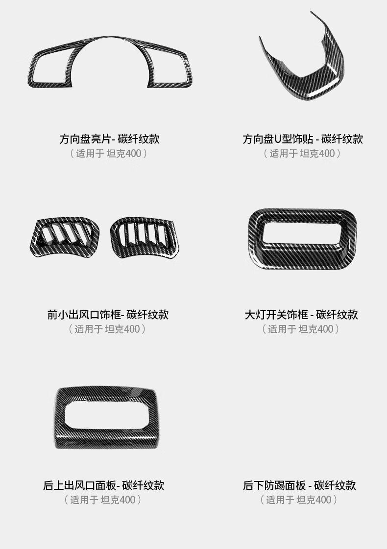 Yusenyi applicable tank 400hi4t interior modification kit central control gearbox glass lift rear anti-kick 4005D carbon fiber pattern armrest box cover 2-piece set