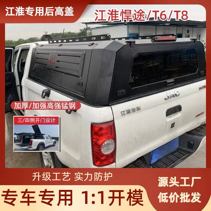 Litian t8pro Shuailing t6 Hantu pickup high-cover integrated three-door rear box cover cargo box protection modification Customized installation of side glass sliding windows