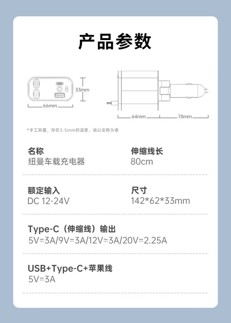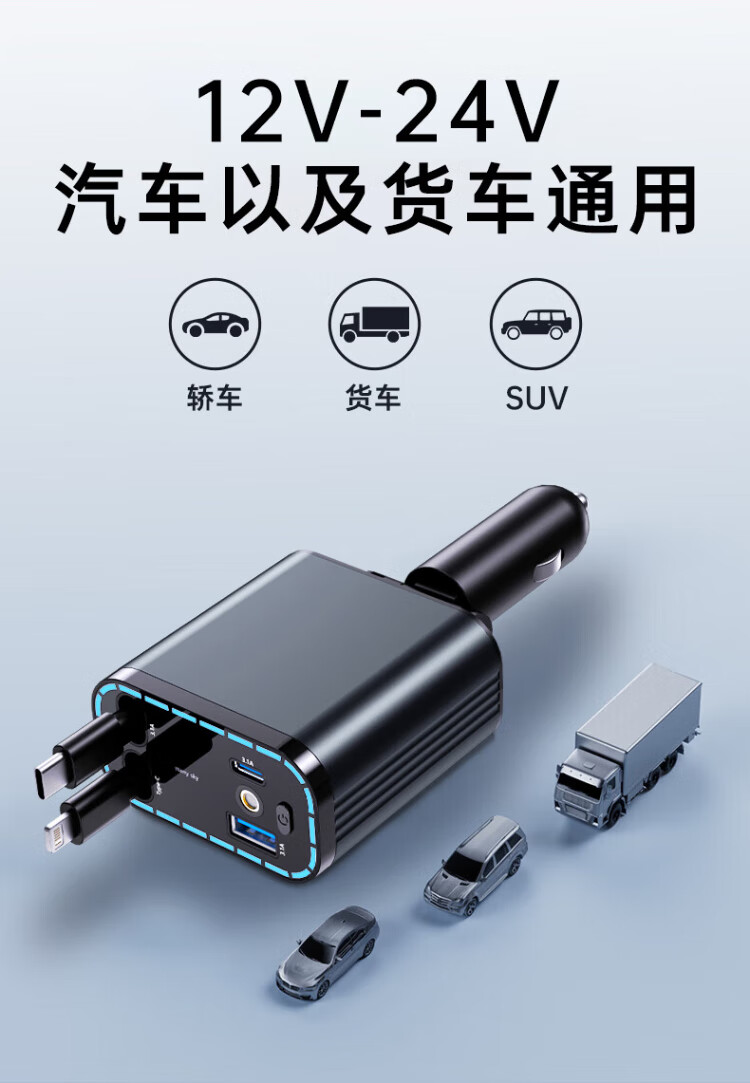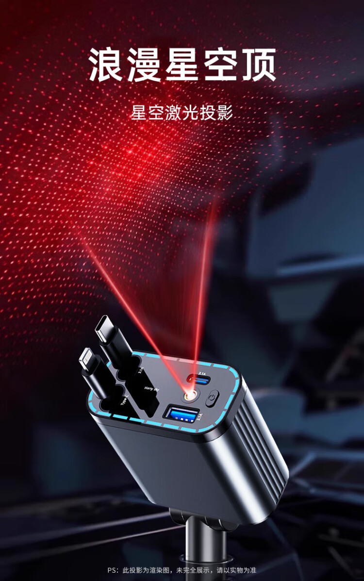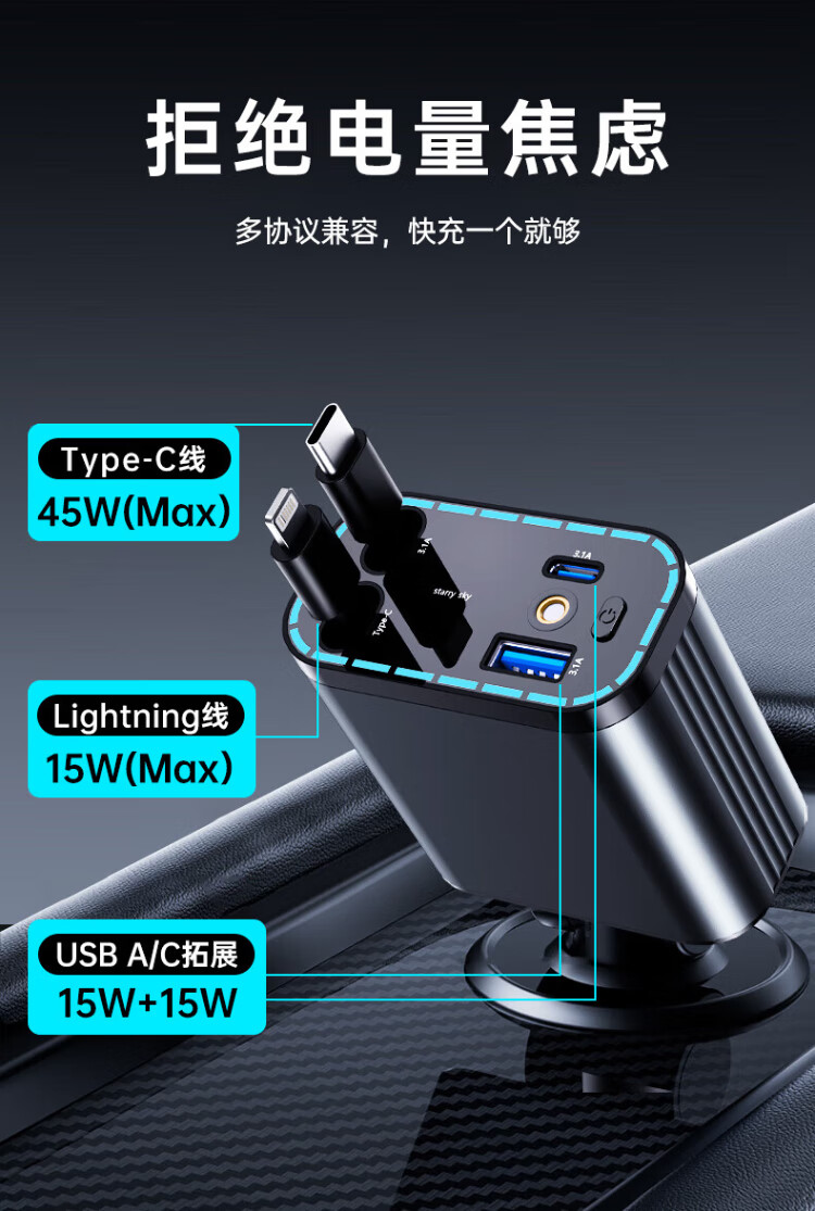 Newmine car charger super fast charging one to three retractable cable car charger cigarette lighter with cable multi-function converter suitable for Huawei Apple 16 Android