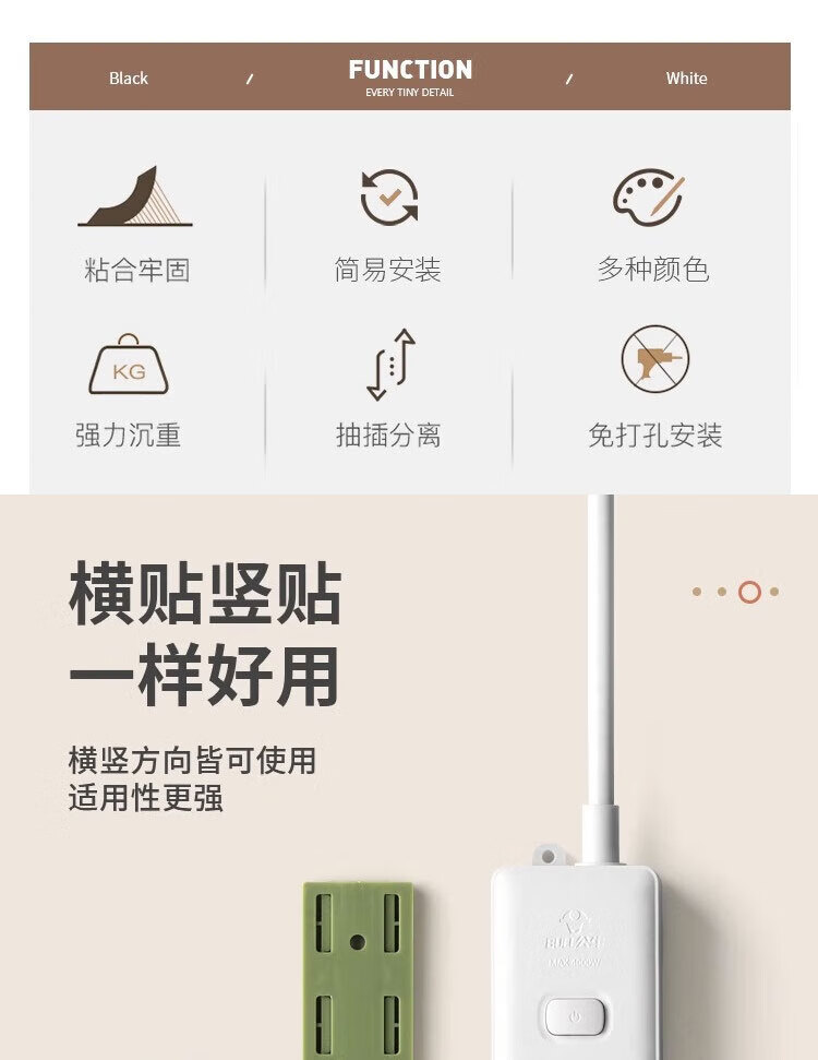 Huashi Wanqi punch-free holder student dormitory patch panel fixed strip wall-mounted router patch panel storage wall stickers strip holder 2 sets