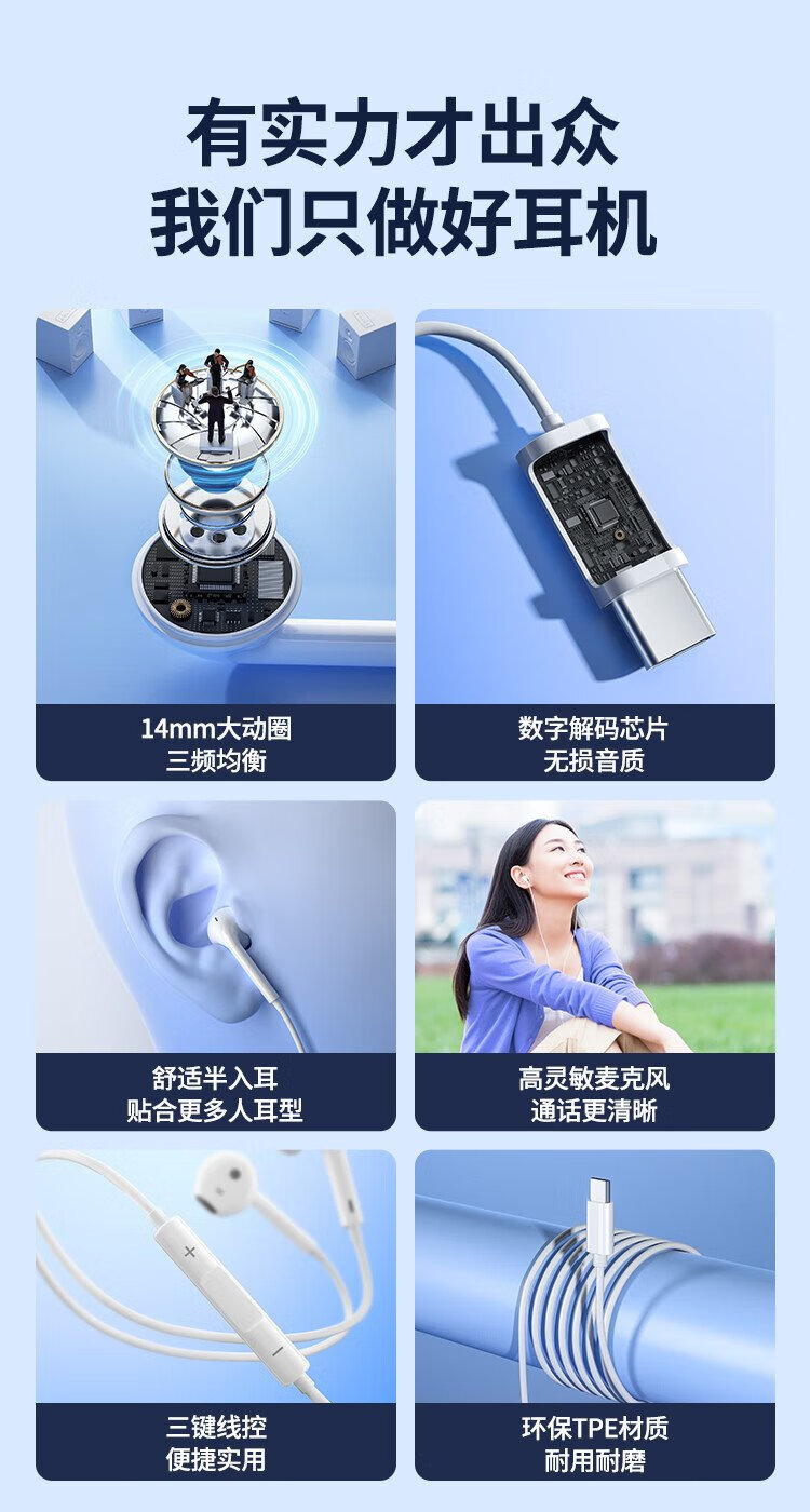 ENKOR wired earphones semi-in-ear adapter Apple iphone15/16/17promax/plus/Air/type-c interface USB-C series tablet ipad mobile phone