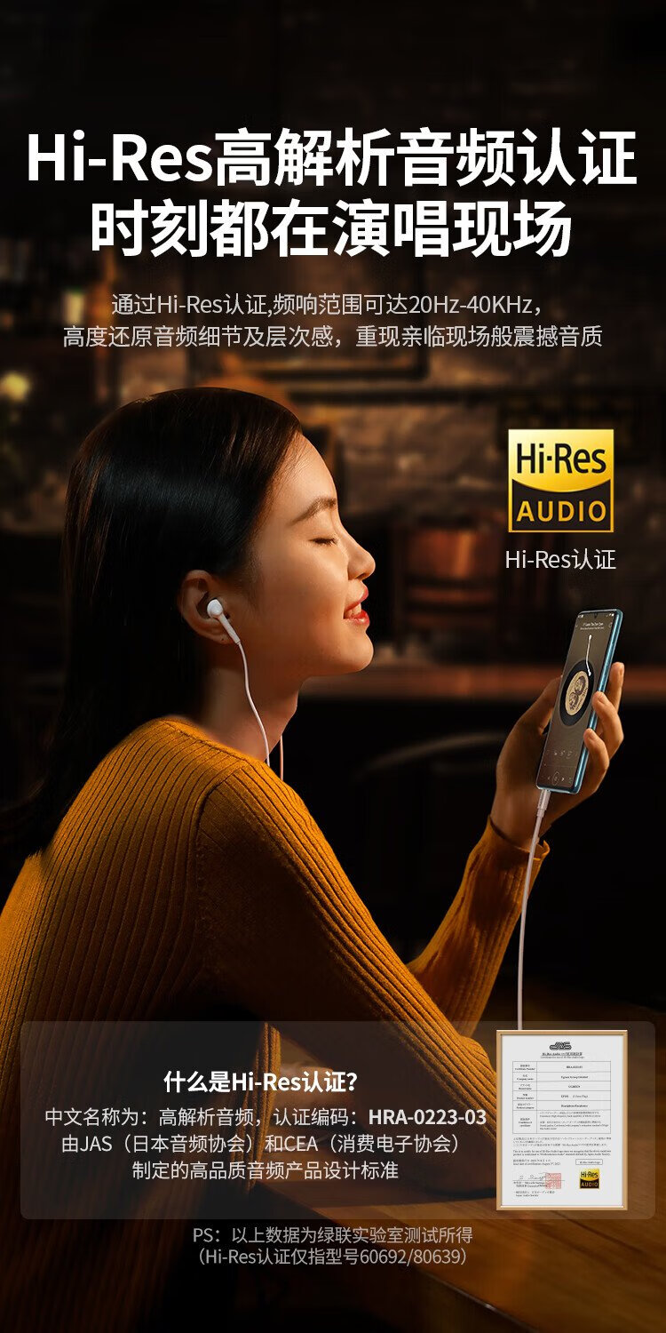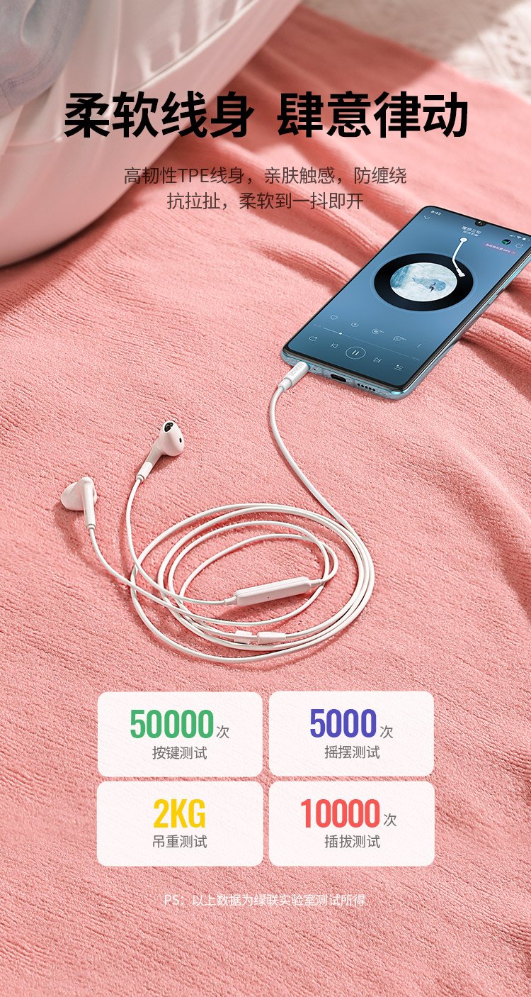 Green Link earphones wired semi-in-ear Hi-Res gold label certified 3.5mm round hole suitable for Huawei, Xiaomi, Apple mobile phones and computers to play chicken and karaoke games with wired control and microphone