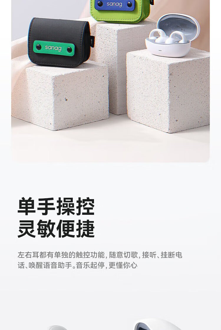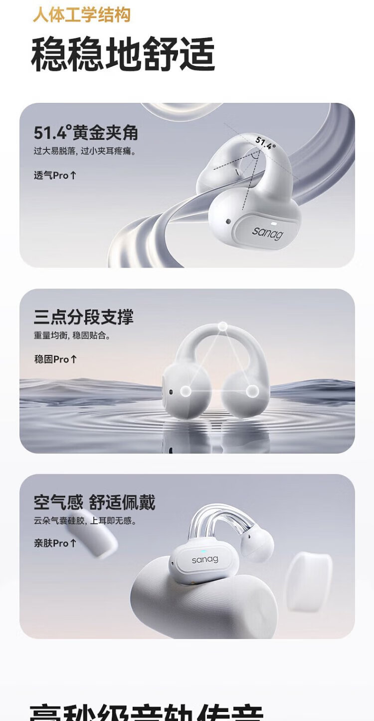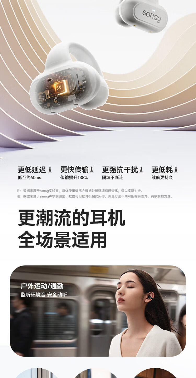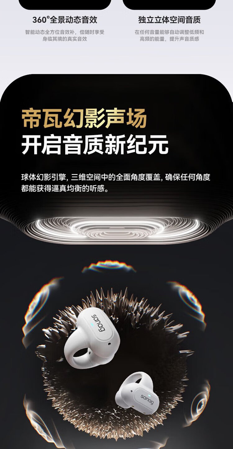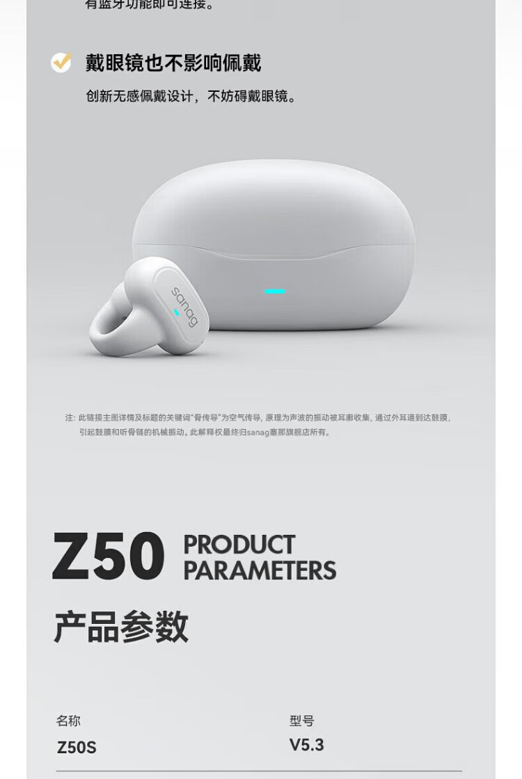 SANAG Z50S Bluetooth headset ear clip type bone conduction concept wireless open non-in-ear sports call noise reduction ear hanging earphone suitable for Apple and Xiaomi mobile phones