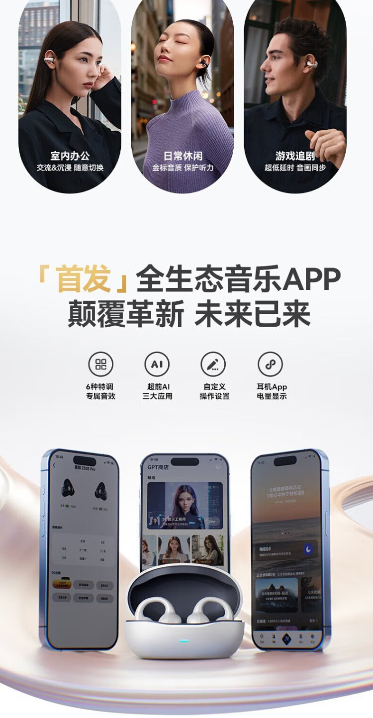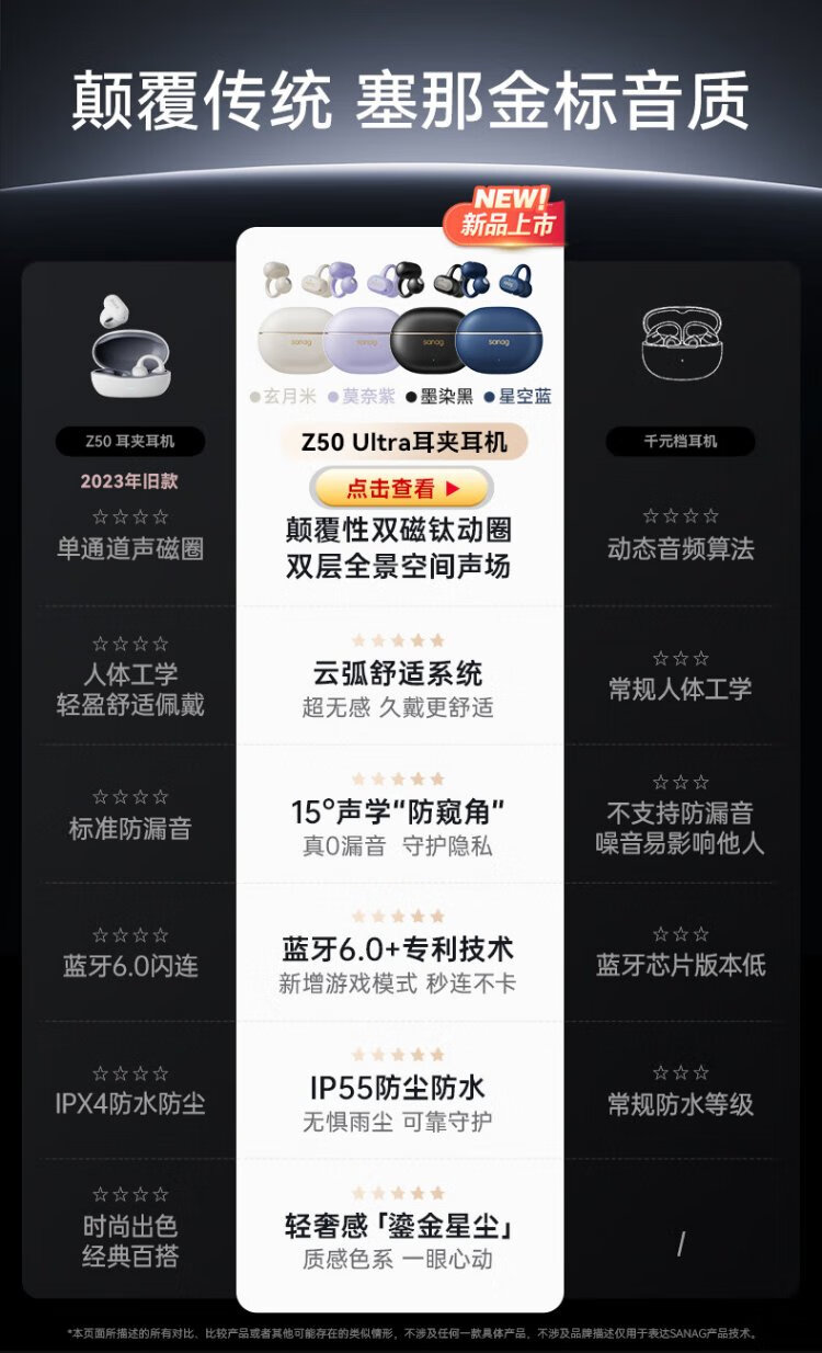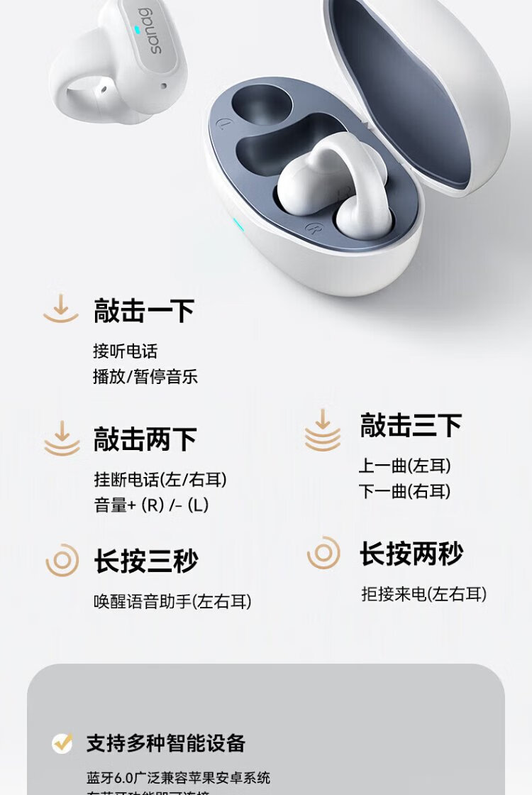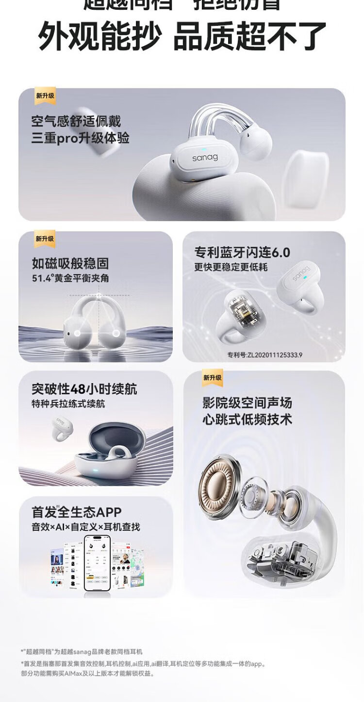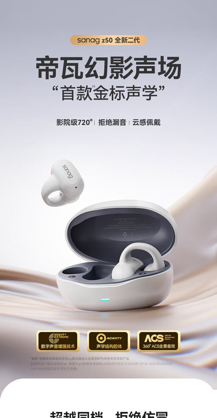 SANAG Z50S Bluetooth headset ear clip type bone conduction concept wireless open non-in-ear sports call noise reduction ear hanging earphone suitable for Apple and Xiaomi mobile phones