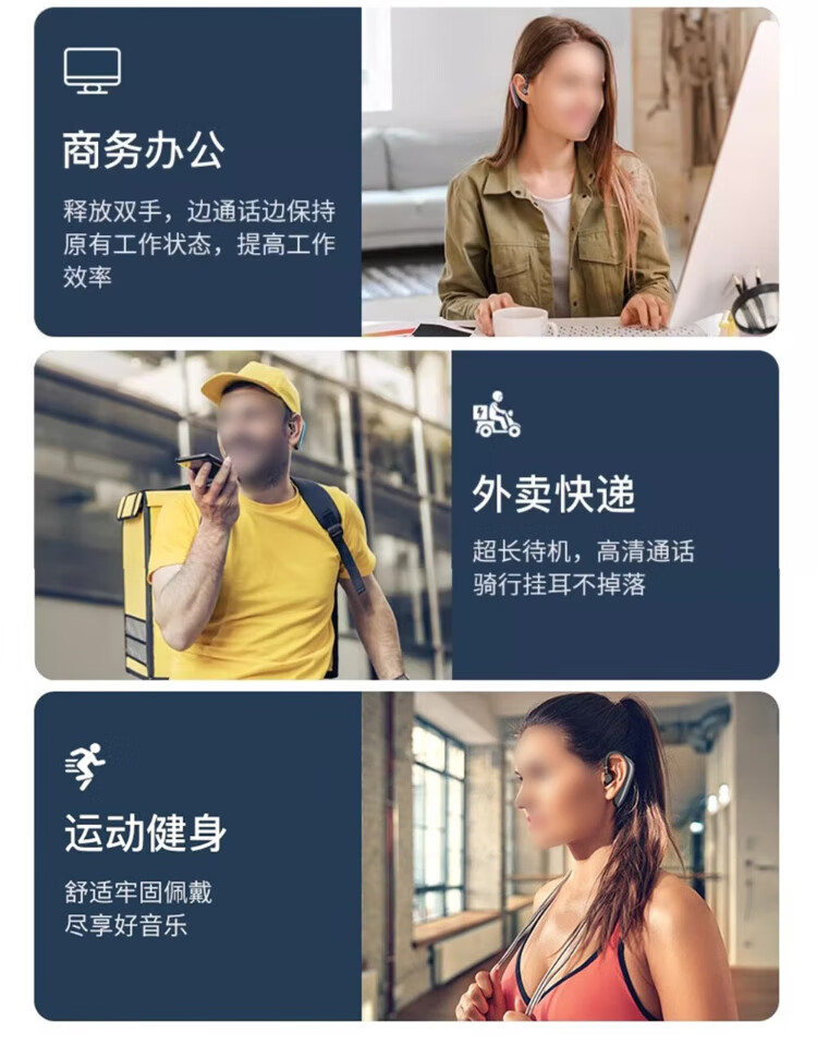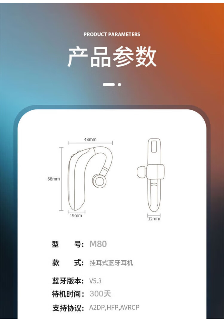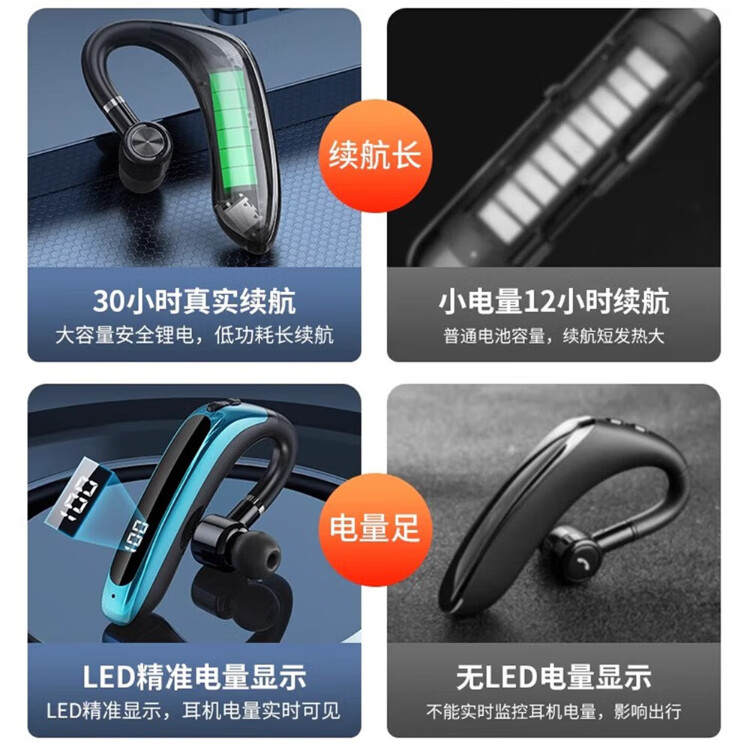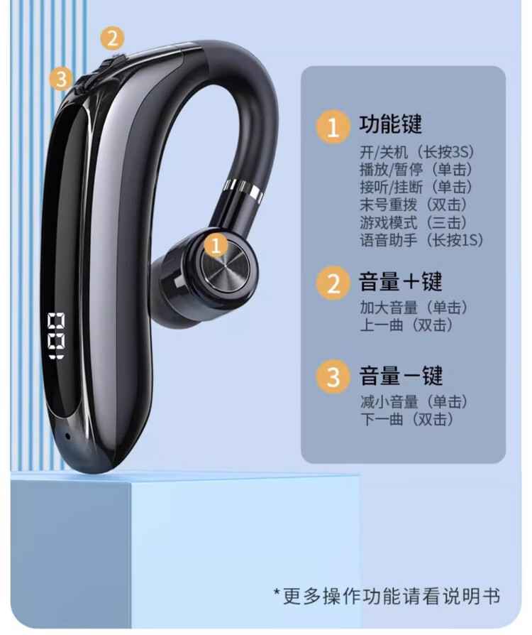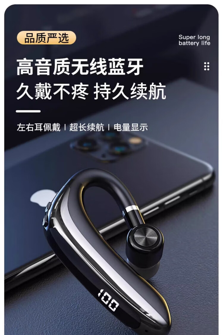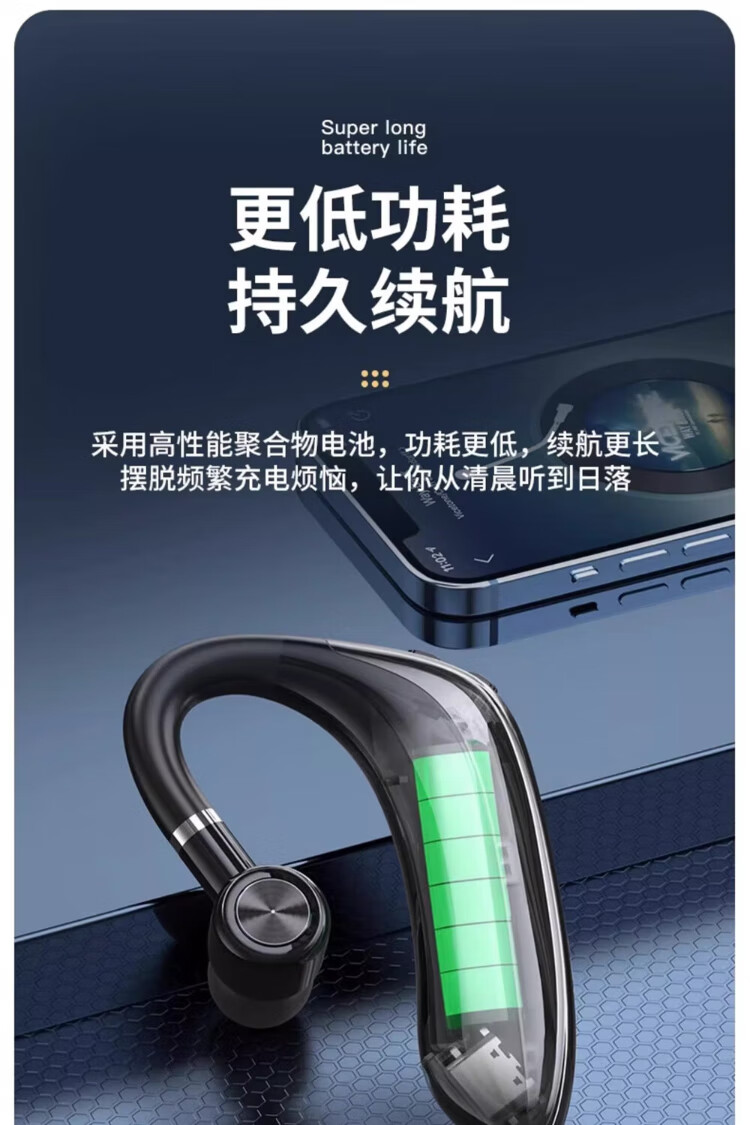 Shadow Giant Wireless Bluetooth Headset Headset Ultra-long Battery Life Single-Ear In-Ear Ear-Hook Ear-Hook Sports Running Listening to Songs and Calls Suitable for Apple and Huawei Takeaway Drivers for Driving Cars