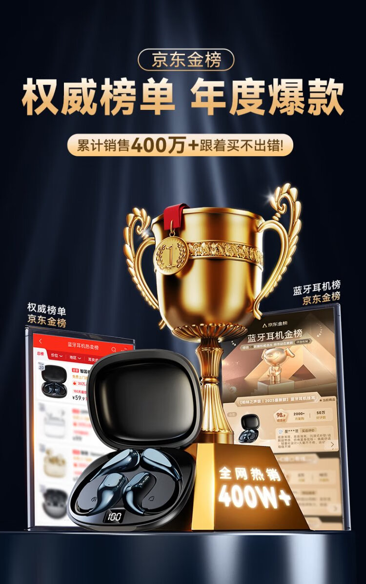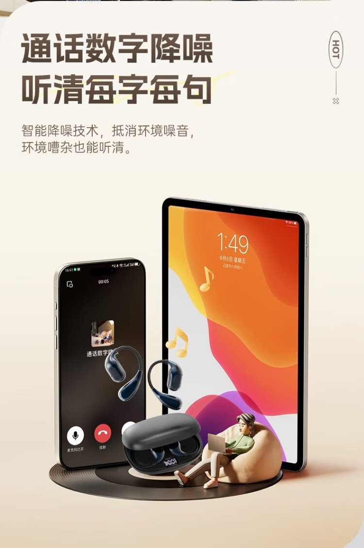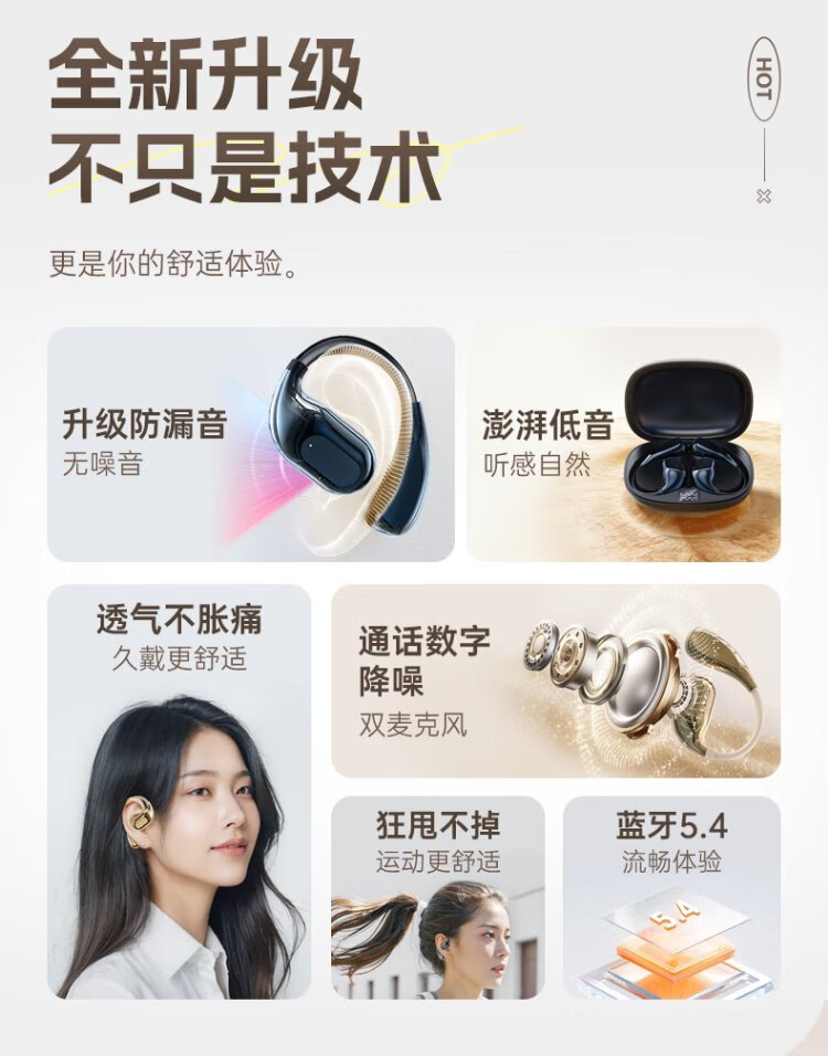 Wise Nation Voice of Berlin丨2025 latest Bluetooth headset ear-hook wireless non-bone conduction non-ear clip type sports running noise reduction + super long battery life does not hurt & ears