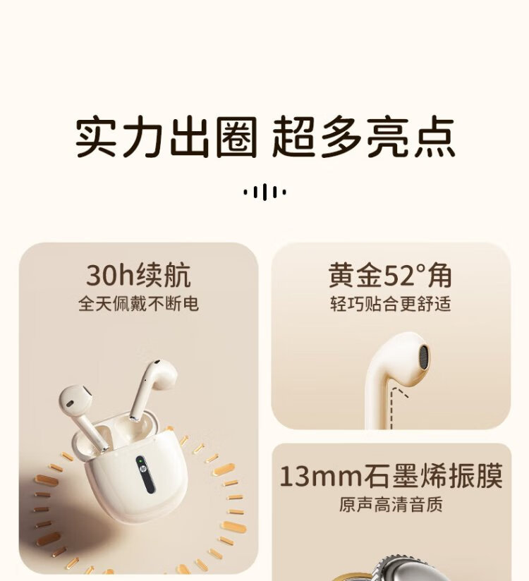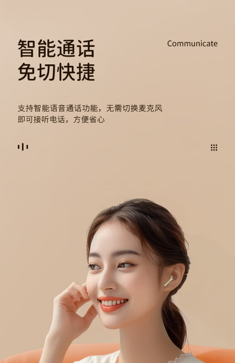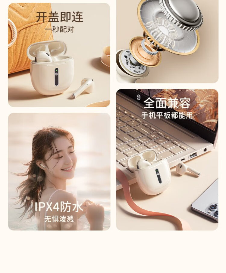 HP True Wireless Bluetooth 5.3 Earphones H10H Compact Semi-in-Ear Game Call Smart Noise Canceling Music Earphones for Apple Android Phones