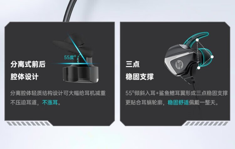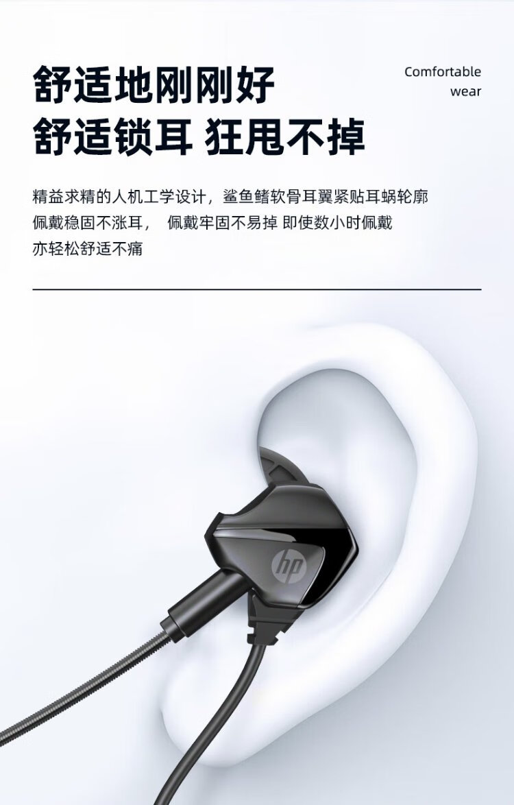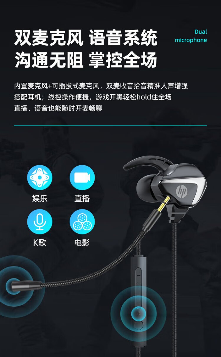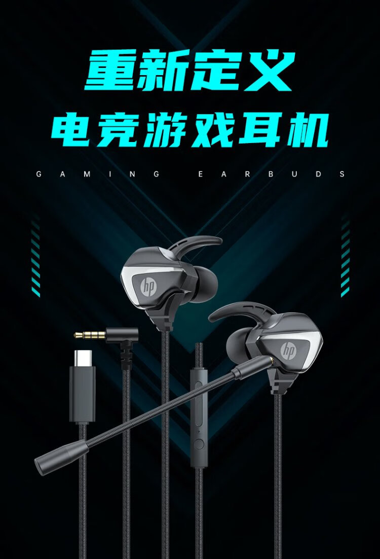 HP DHH-3113 gaming wired headset, in-ear headset with microphone, smart noise reduction microphone, mobile phone, computer, e-sports bass, delta office learning music headset
