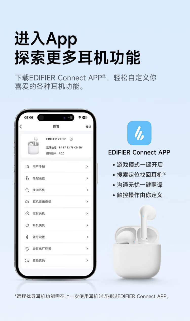 Edifier (EDIFIER) 2025 new X1 Evo true wireless Bluetooth headset Bluetooth 6.0 AI translation suitable for Apple, Huawei, Xiaomi OPPO mobile phones Naili