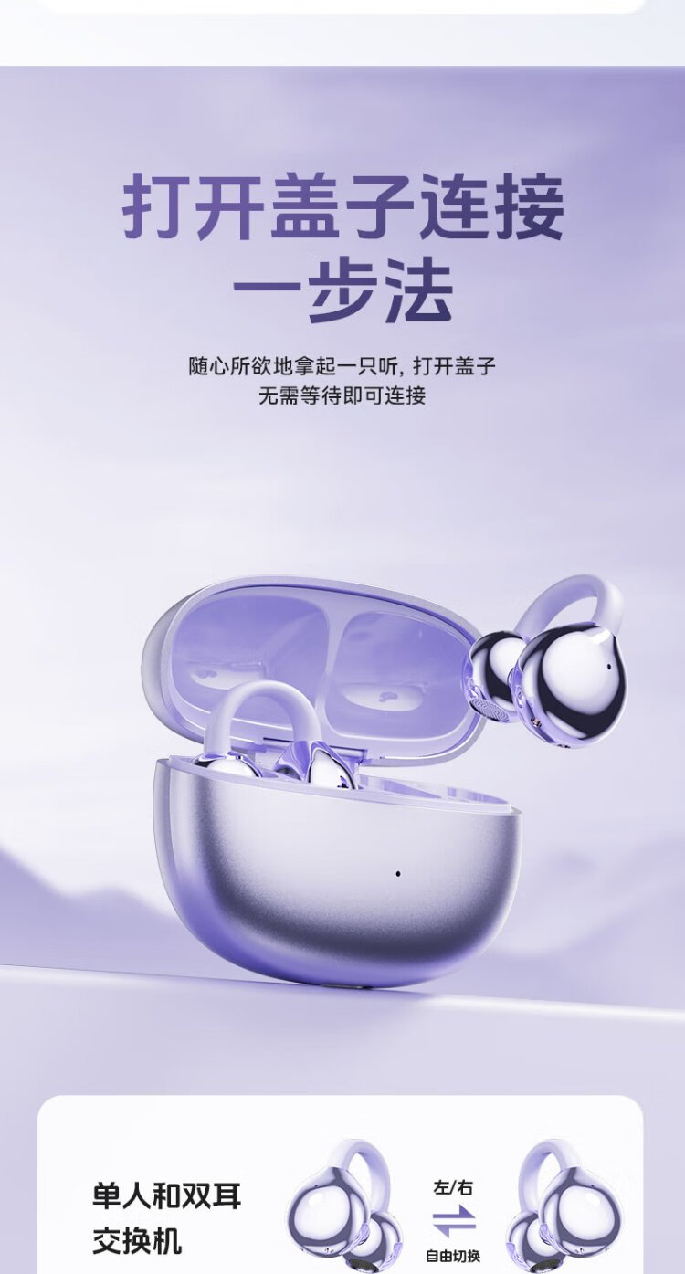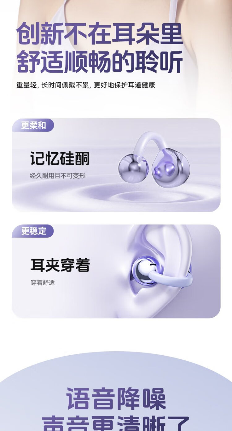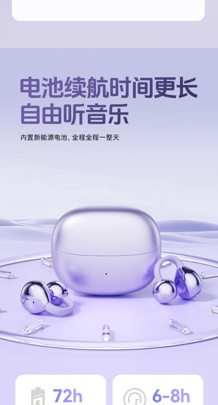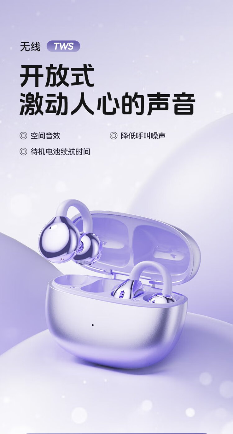 Wise Nation's latest model in 2025 | Women's only Bluetooth headset ear clip type wireless open type non-in-ear hook non-bone conduction ultra long endurance sports ultra running star ring