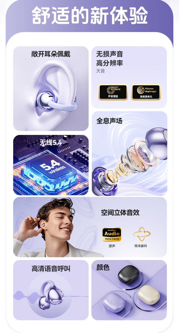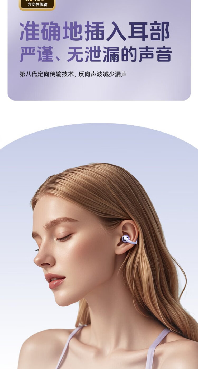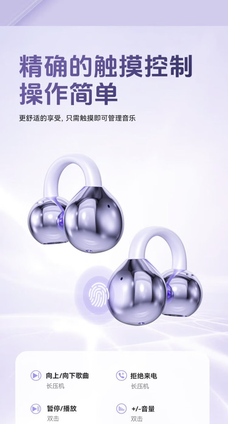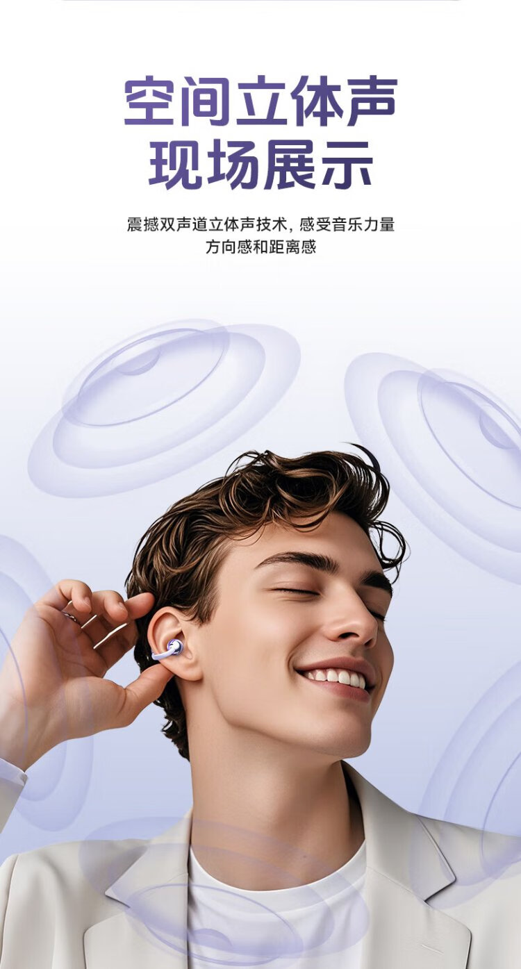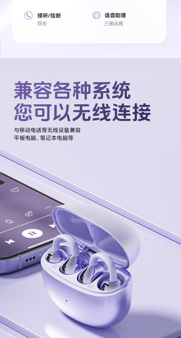 Wise Nation's latest model in 2025 | Women's only Bluetooth headset ear clip type wireless open type non-in-ear hook non-bone conduction ultra long endurance sports ultra running star ring