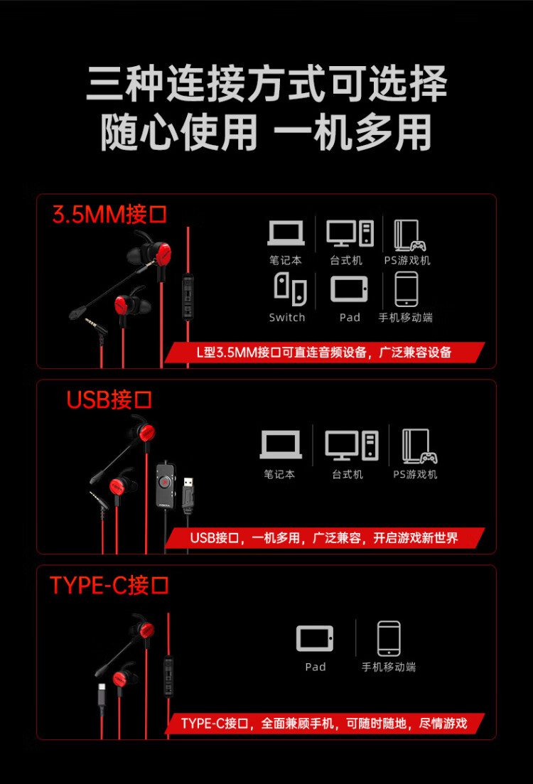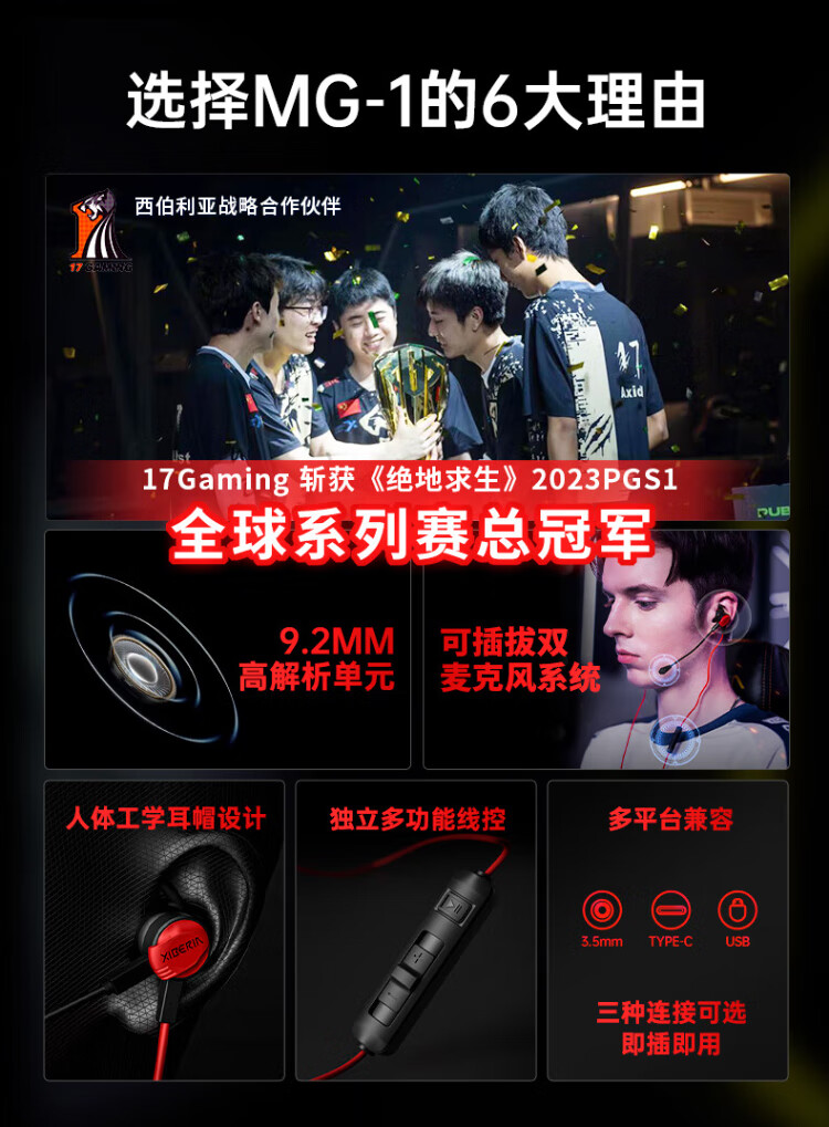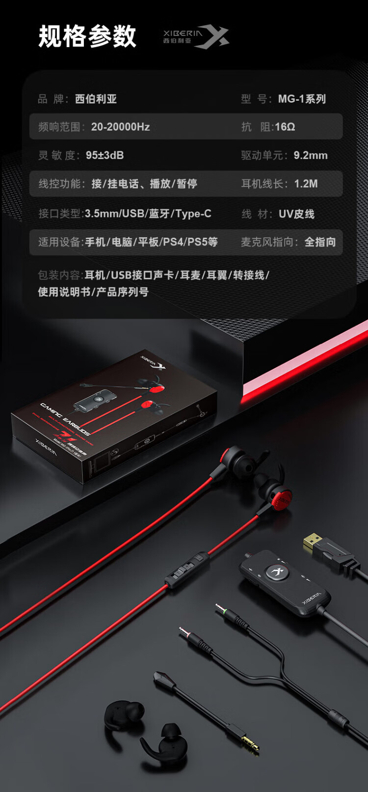 Siberia (XIBERIA) MG-1/pro mobile phone earbuds e-sports in-ear gaming headset music listening position identification computer chicken headset with microphone MG-1 type-c mobile phone/tablet universal gaming headset