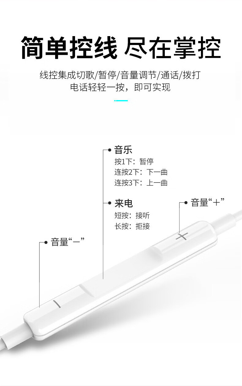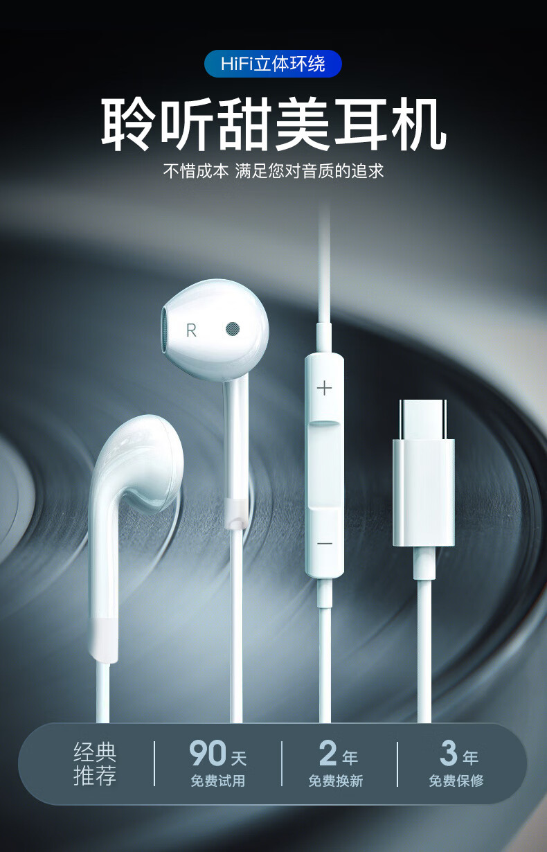 Type-c earphones are wired and suitable for Huawei Honor 80 70 60pro p40 nova8 9 Xiaomi 11 mobile phone noise reduction Naiyu upgraded Type-c flat interface white