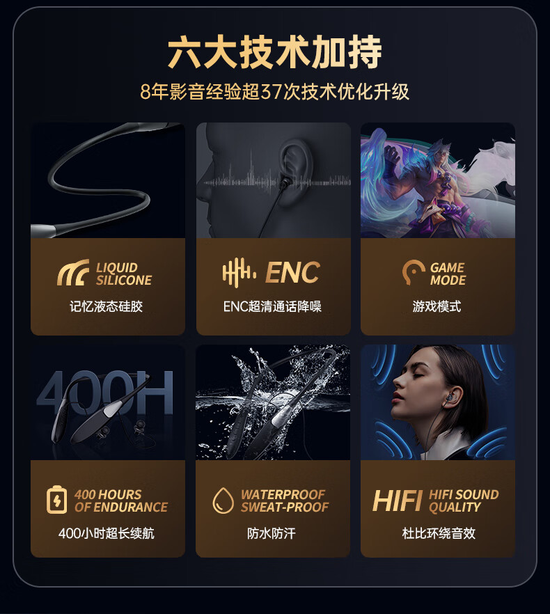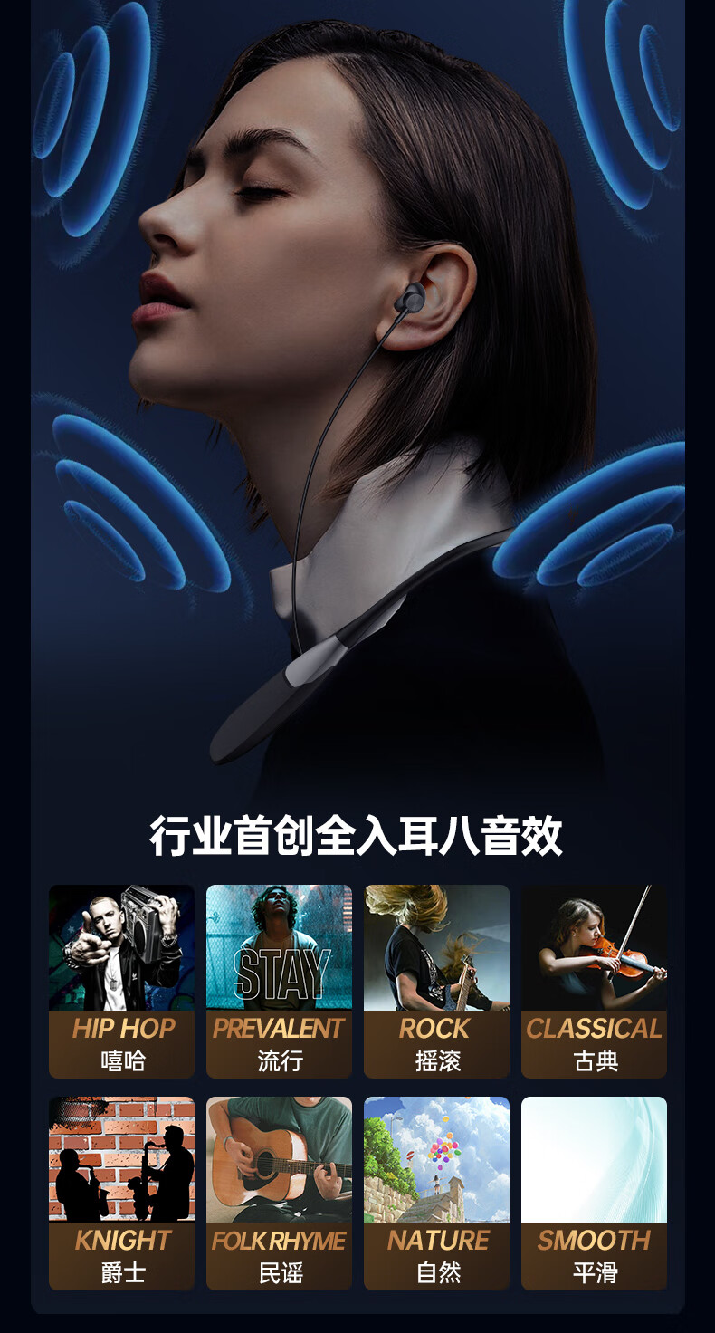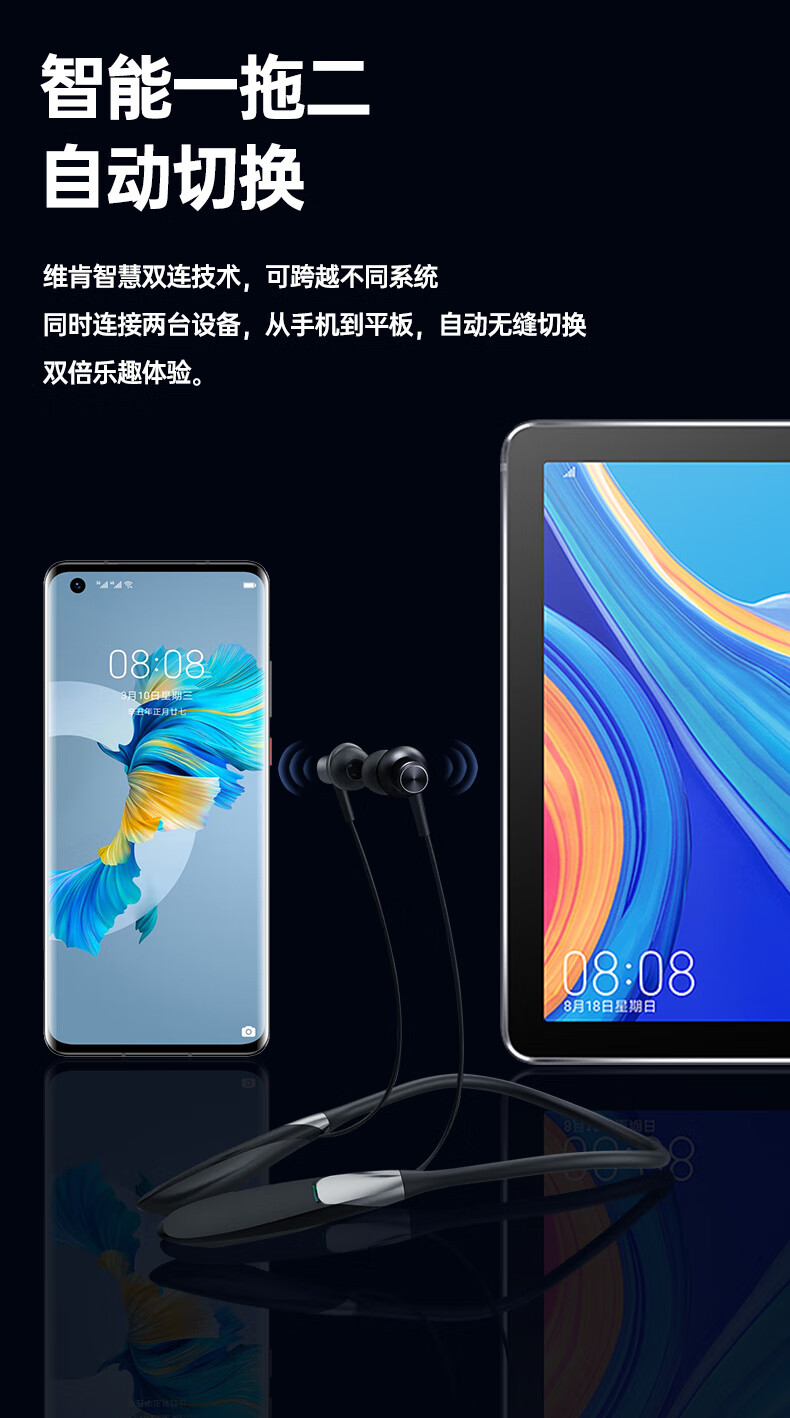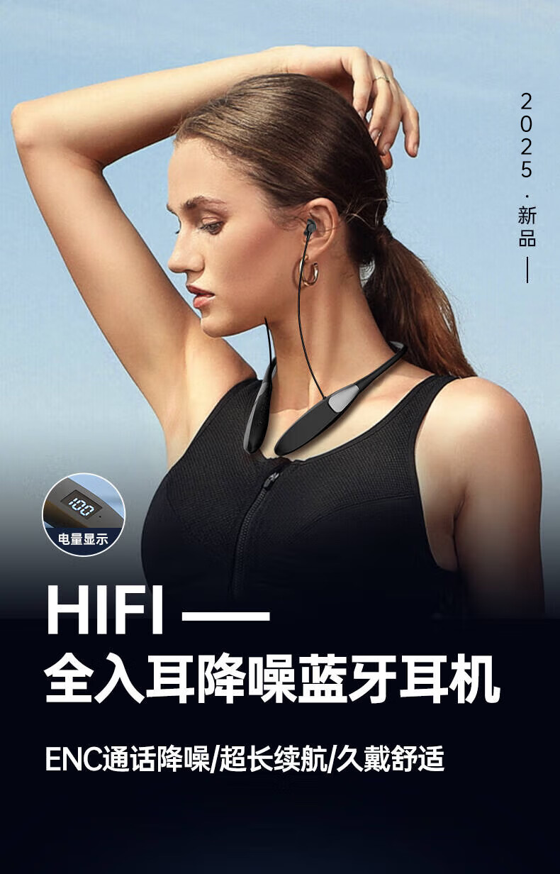Viken 2025 New Voice of Berlin Noise Canceling Bluetooth Headset Hanging Neck-Hook In-Ear Wireless Sports High Power Waterproof Sweat High Quality Suitable for Apple and Xiaomi Wired Super Large Power | 400h Long Battery Life Dual Mode | Call Noise Canceling Headphones