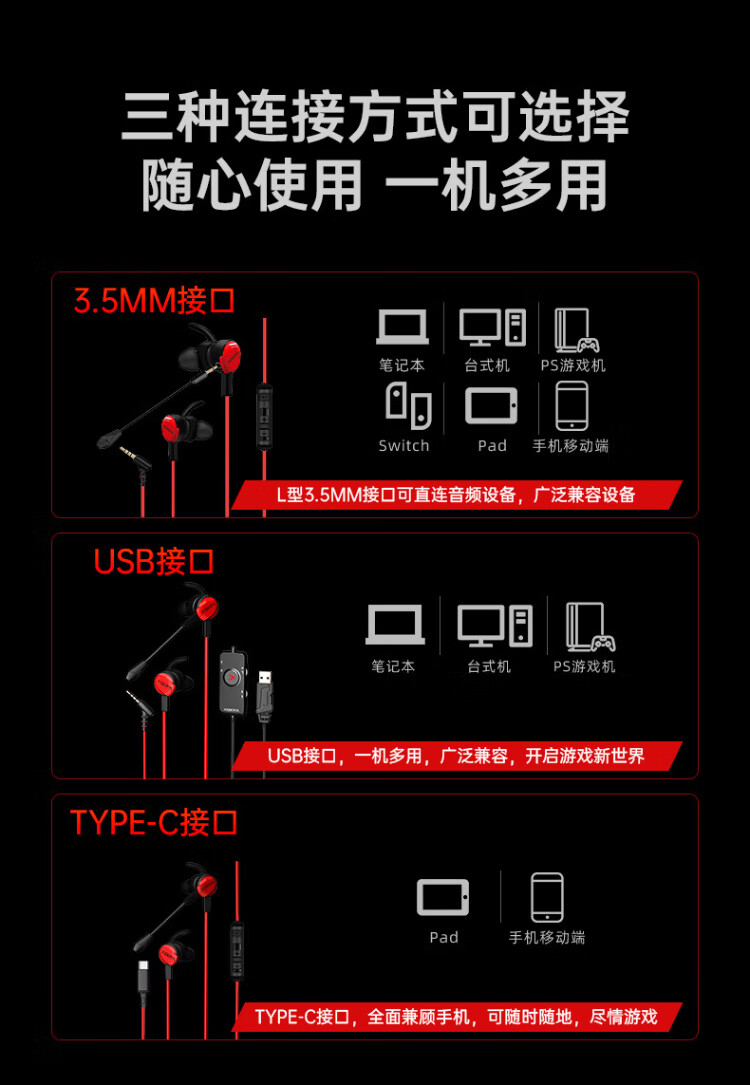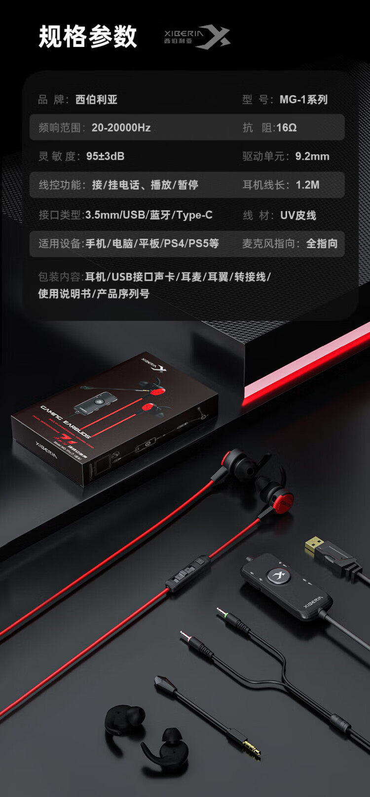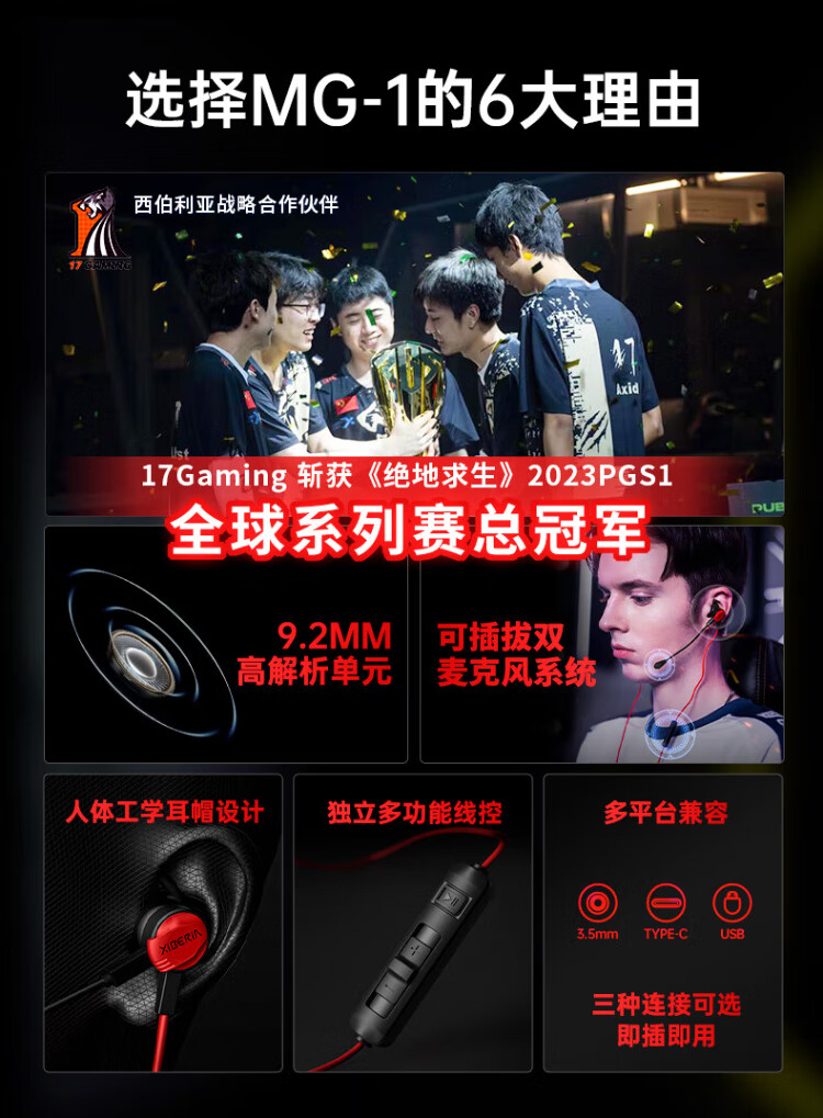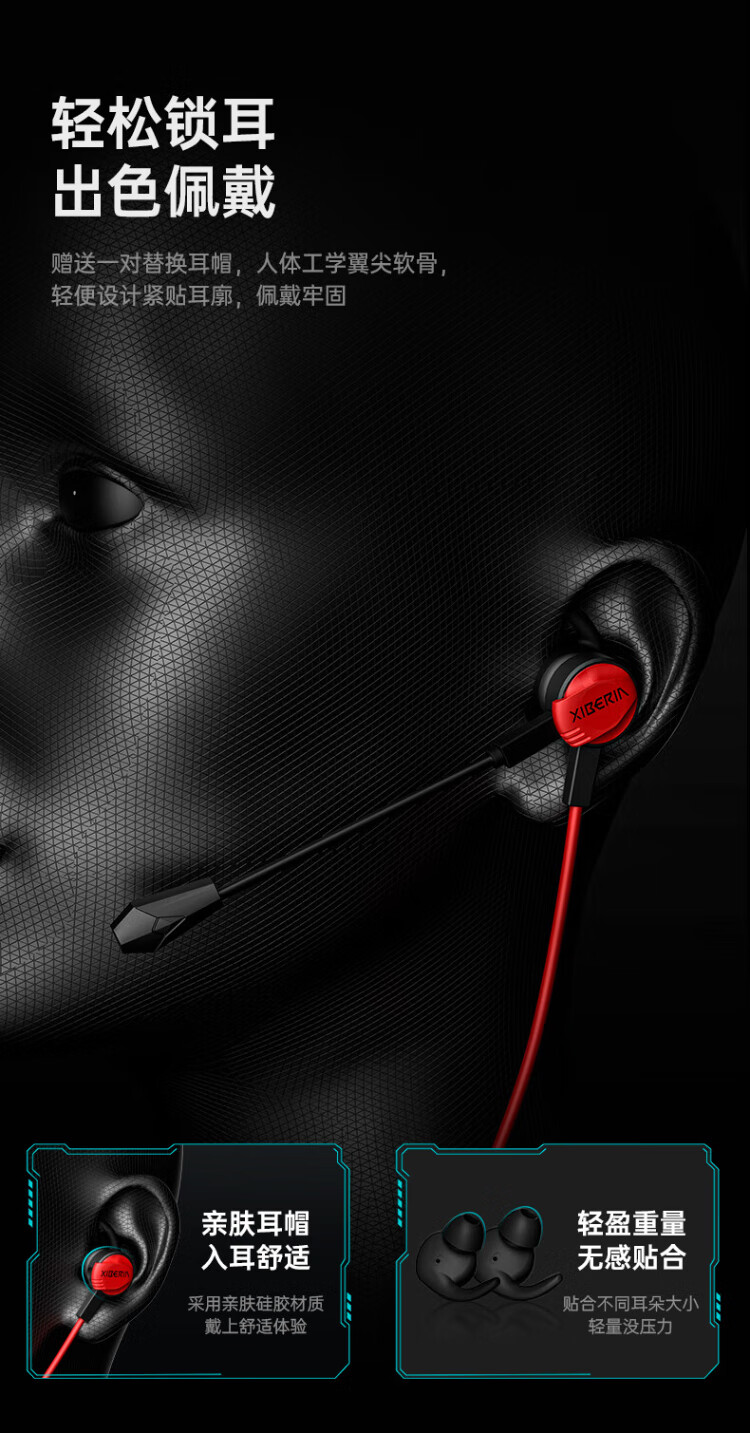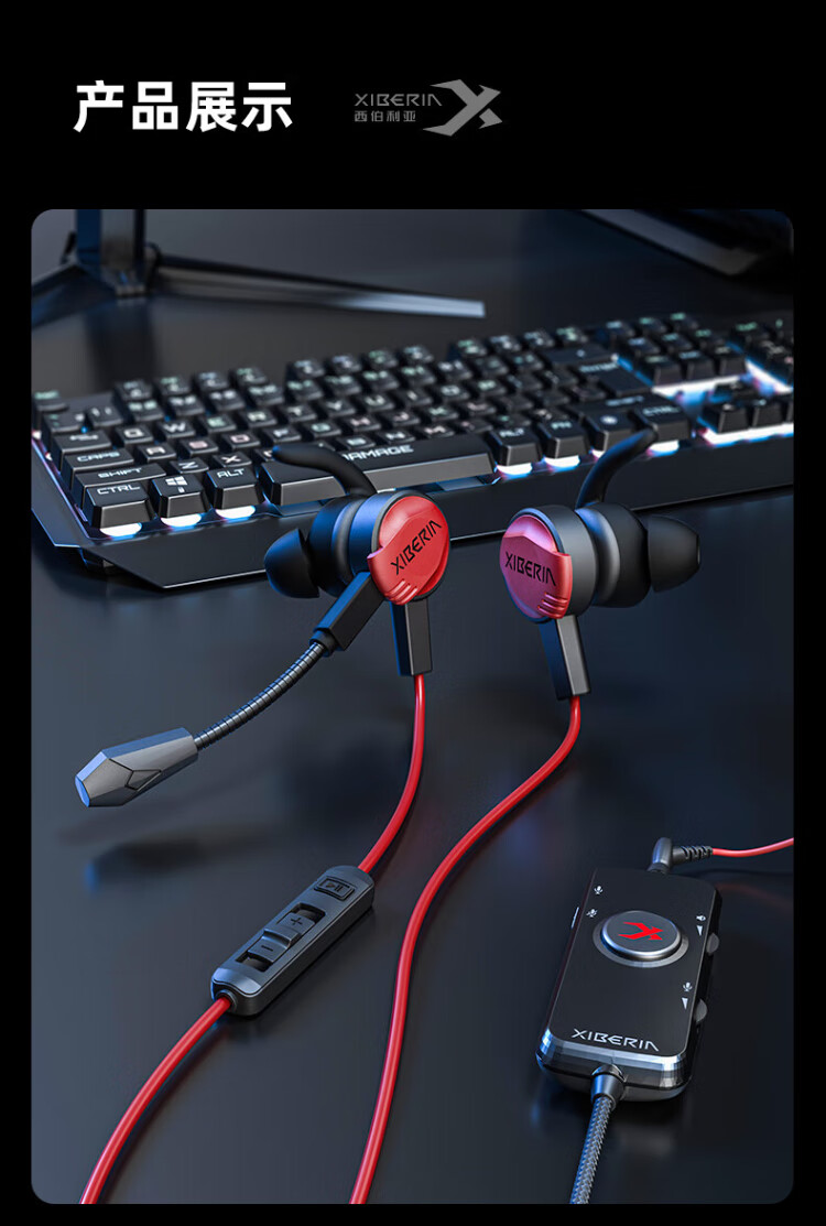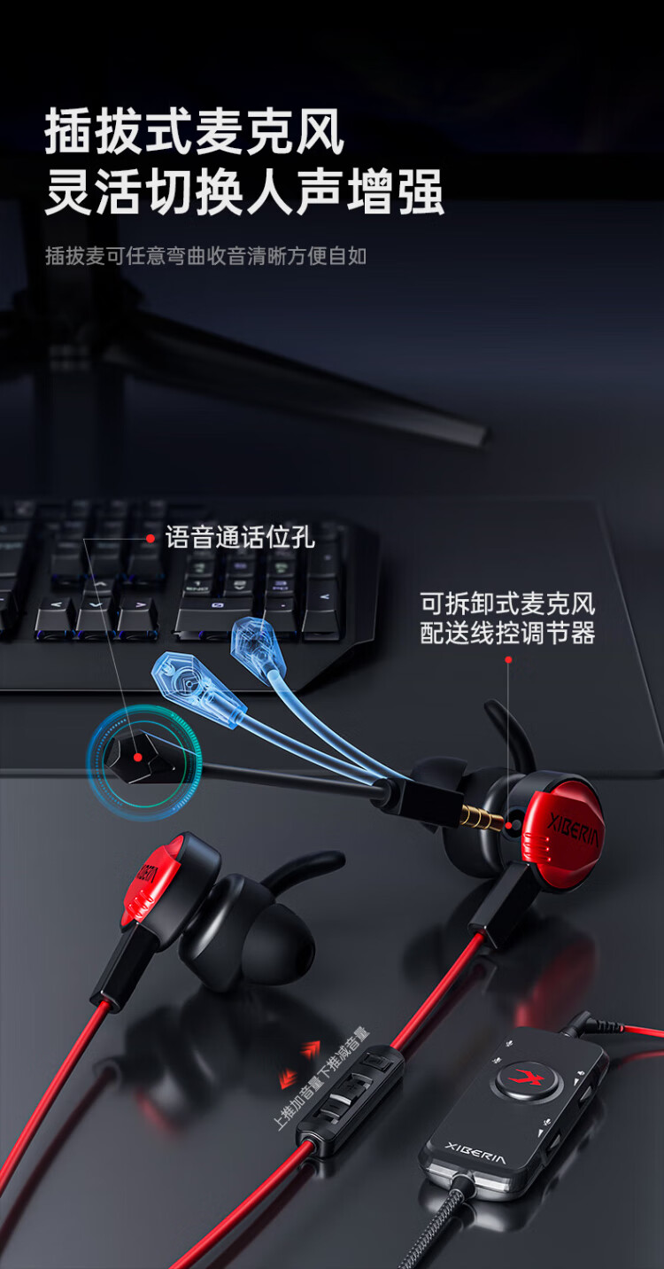 Siberia (XIBERIA) MG-1/PRO in-ear gaming headset wired e-sports computer mobile phone headset 7.1 sound effect HD call detachable microphone chicken conference live broadcast with microphone MG-1 black red 3.5mm standard version