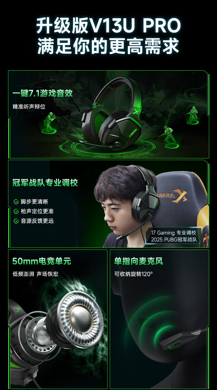 Siberia (XIBERIA) V13PRO headset gaming headset wired e-sports headset USB one-button 7.1 channel with microphone mobile phone computer CSGO listening position professional headset V13PRO professional version USB one-button 7.1 sound effect