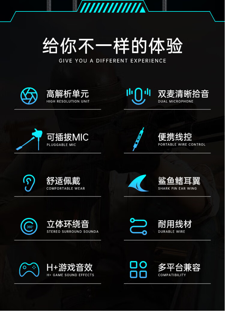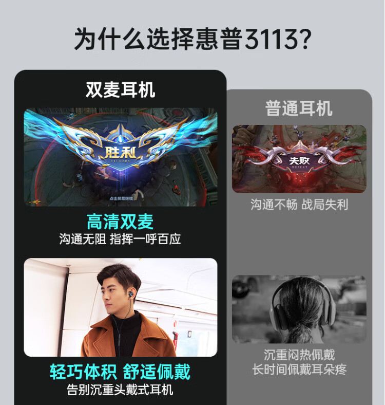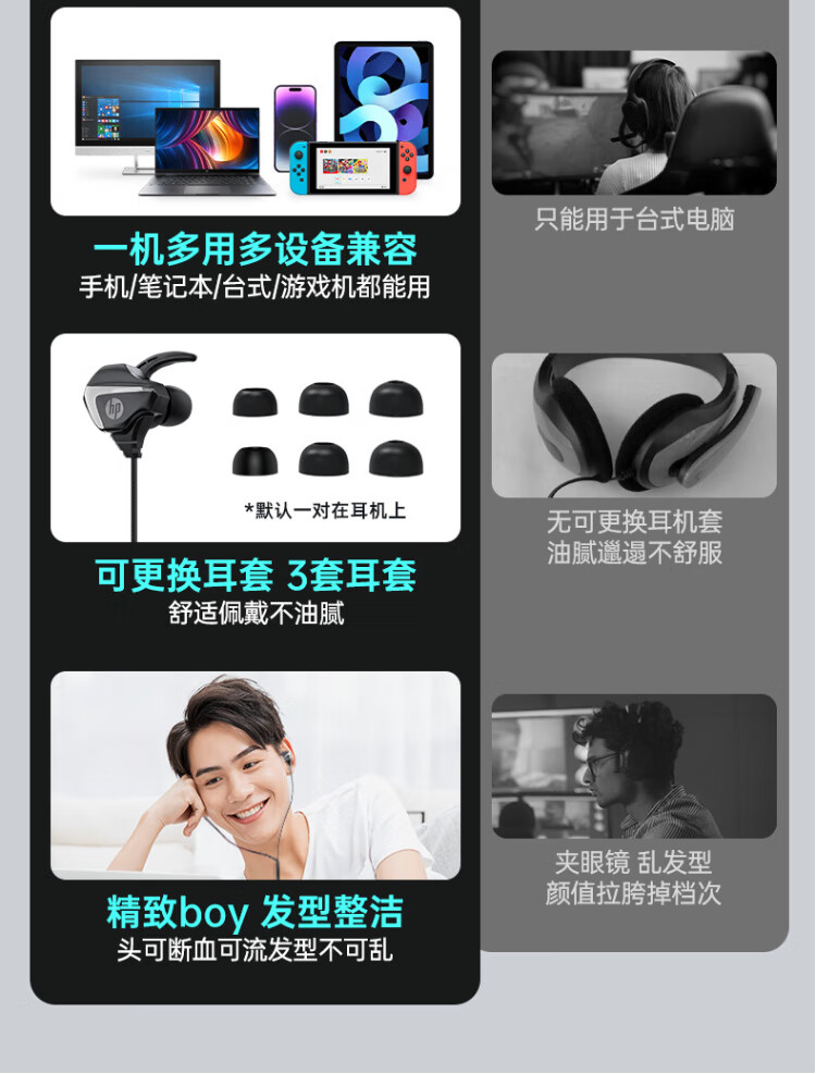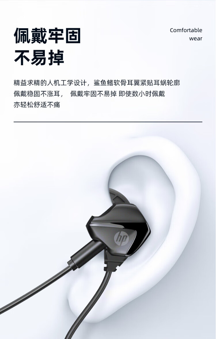 HP gaming wired headset in-ear headset with microphone smart noise reduction microphone mobile phone computer e-sports heavy bass eating chicken office learning single round hole one machine dual microphone
