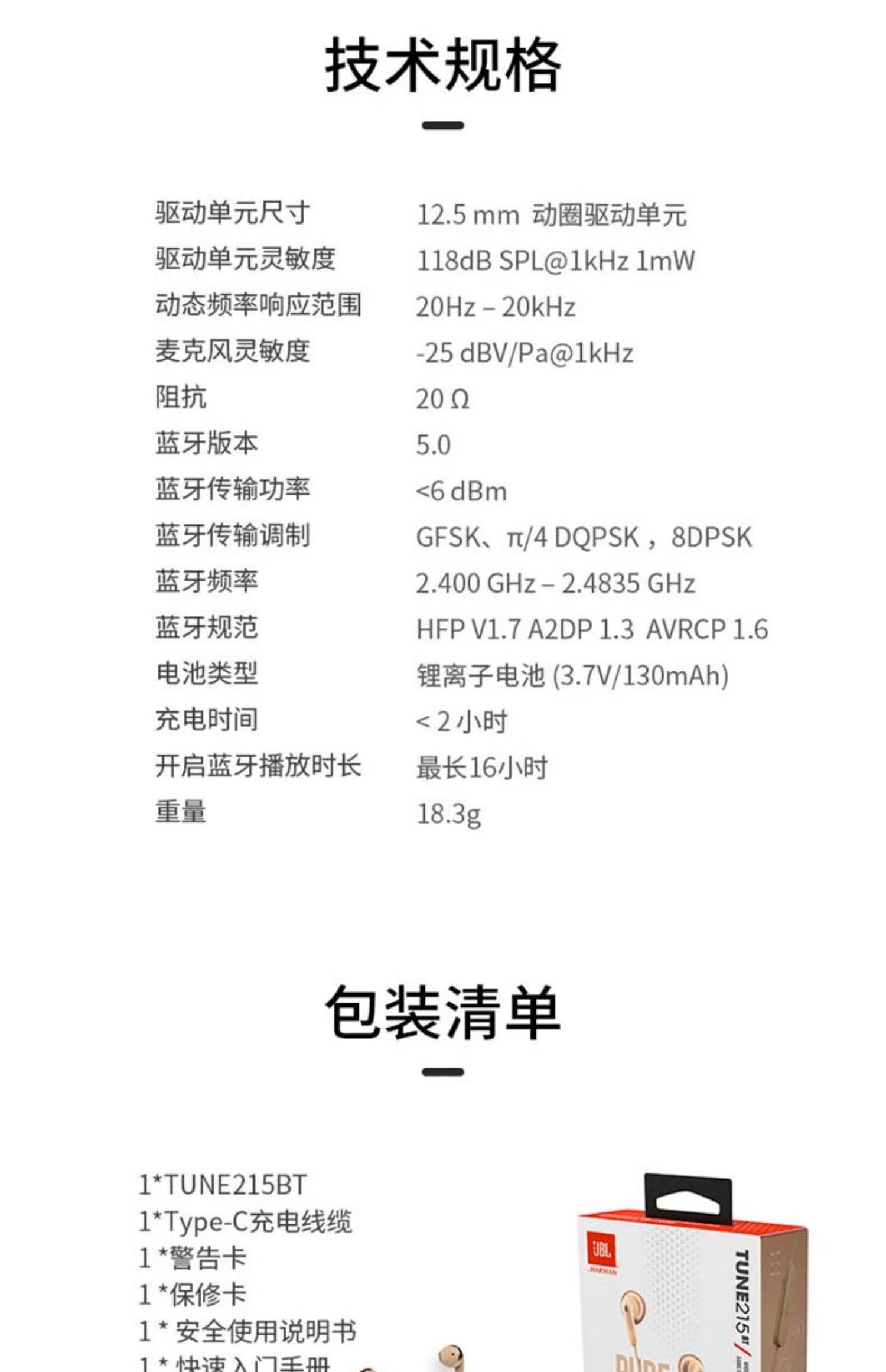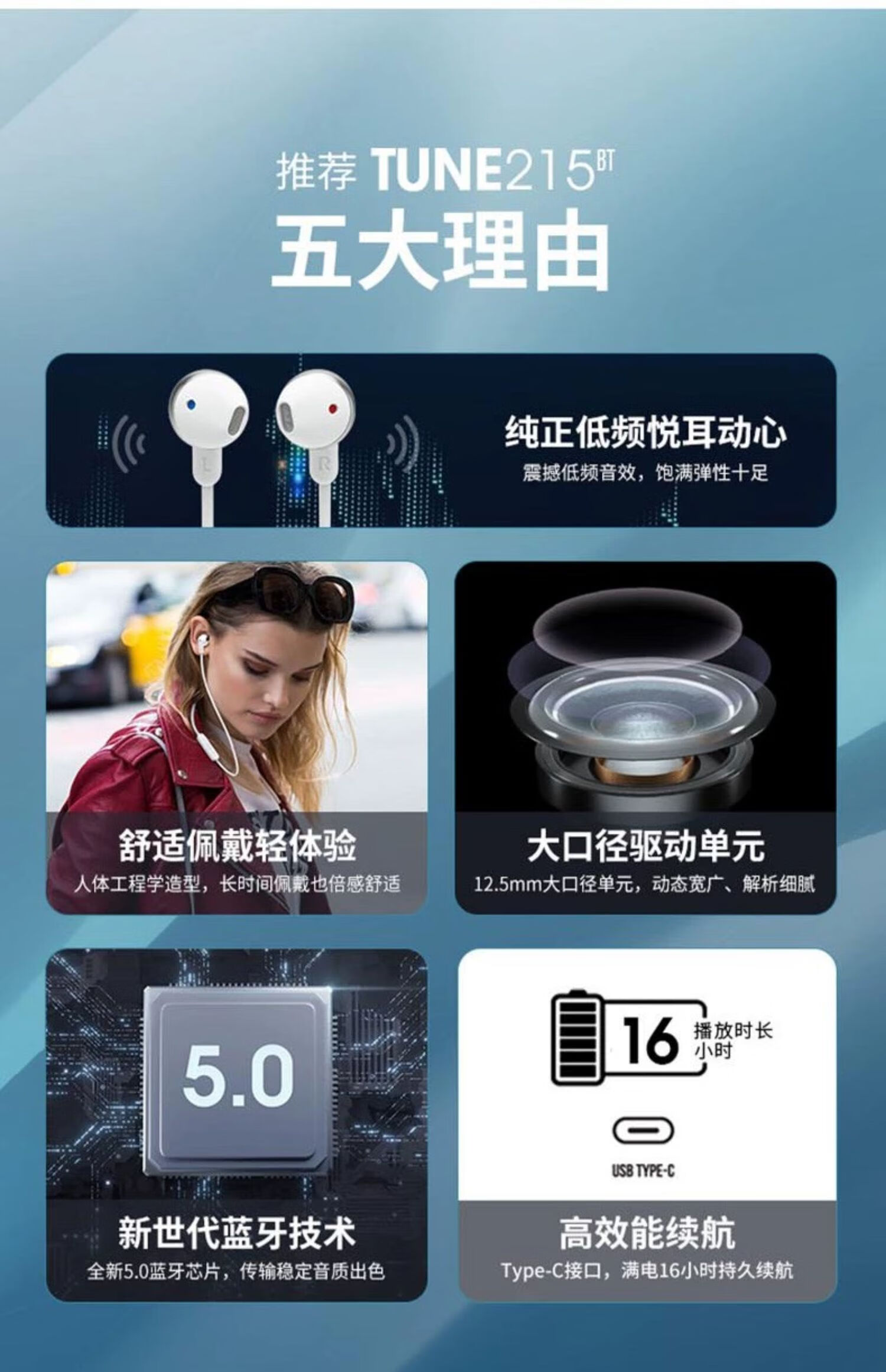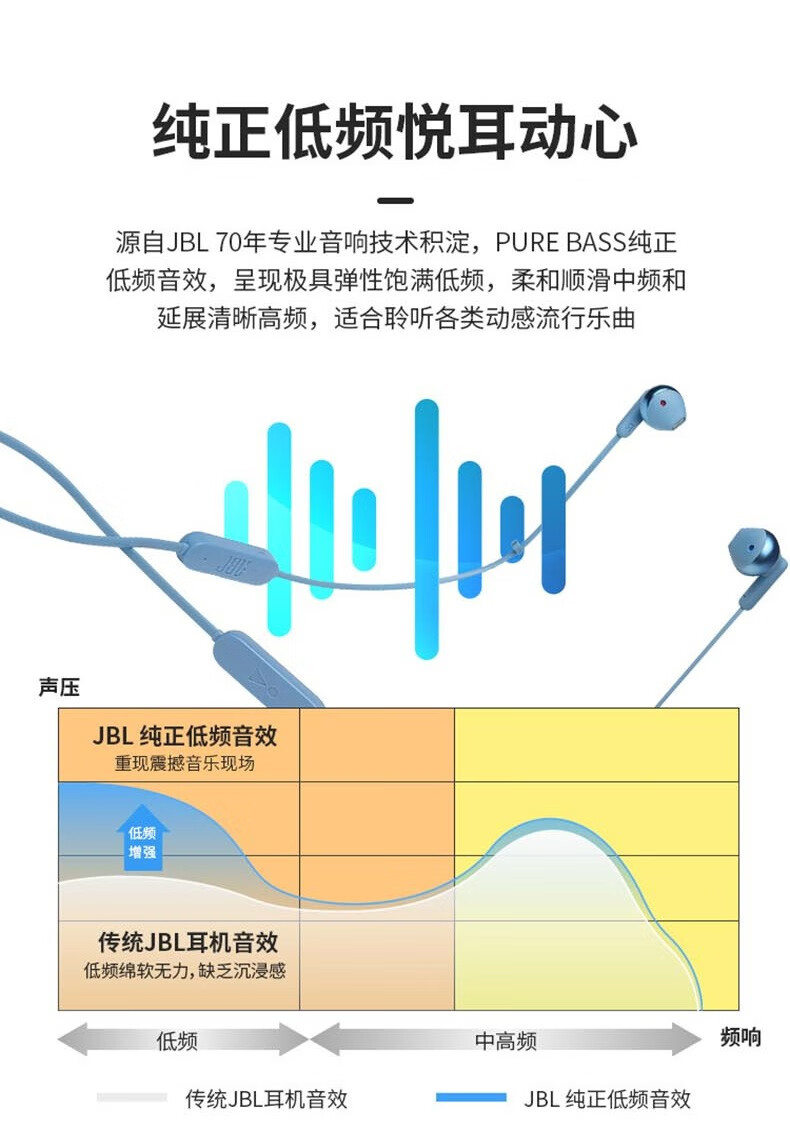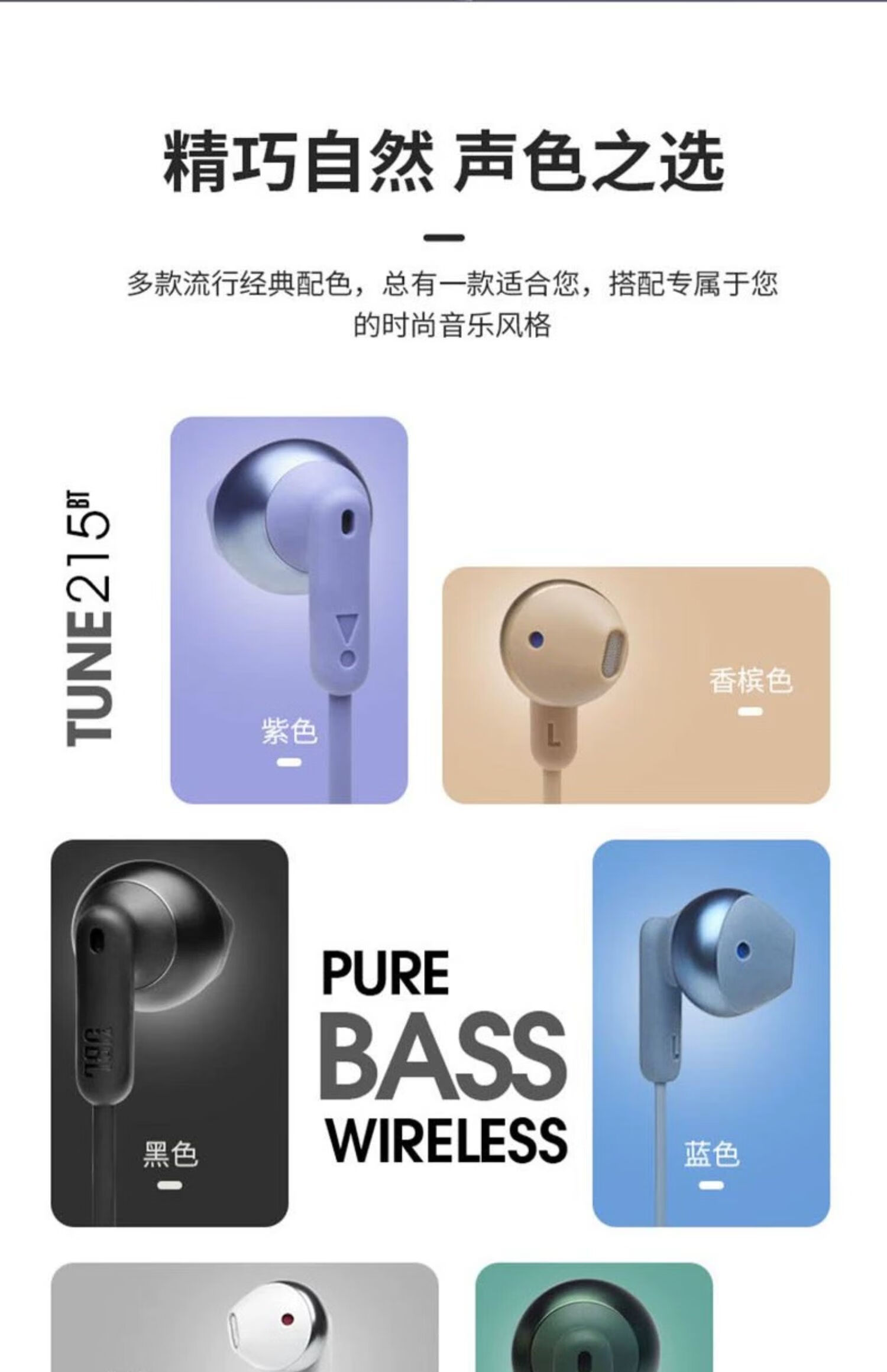 JBL T215BT wireless Bluetooth headset semi-in-ear neck headset sports neck headset high quality blue