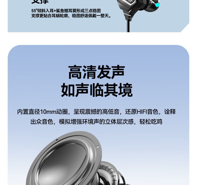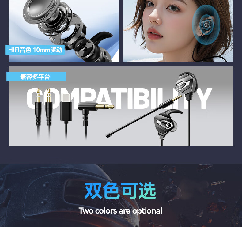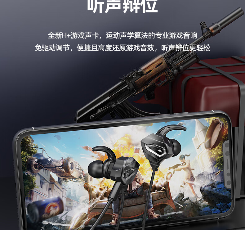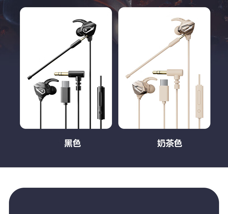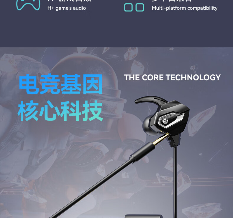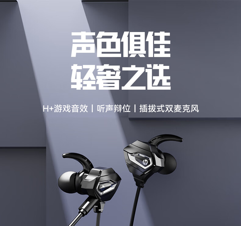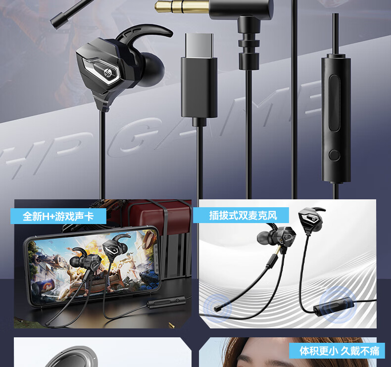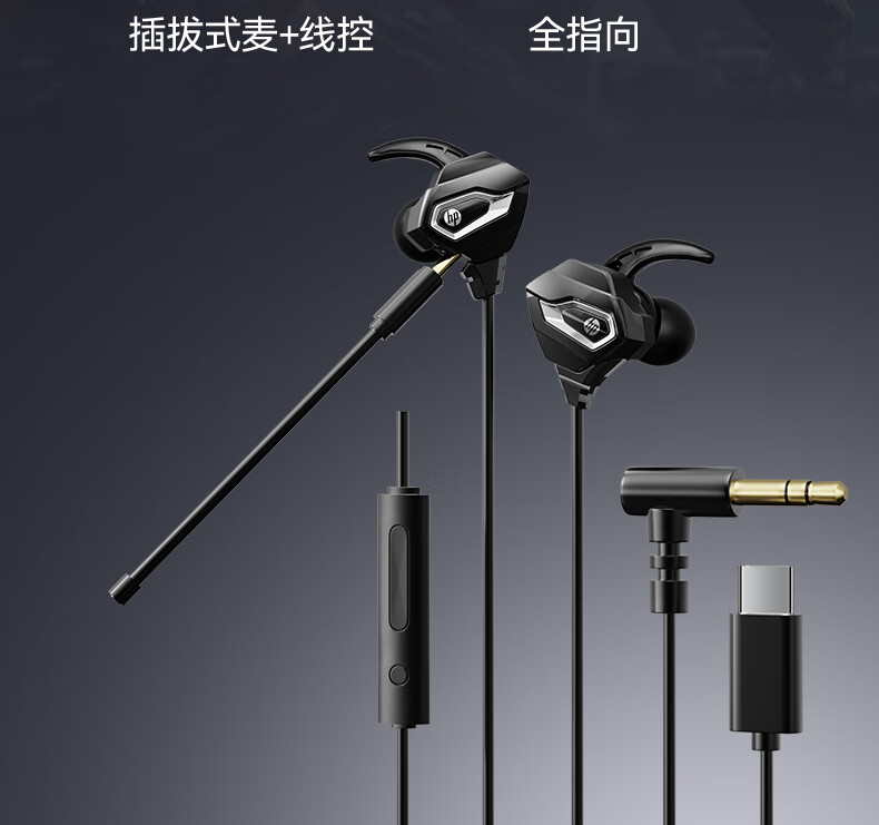 HP e-sports game dedicated wired in-ear headphones for mobile phones, laptops, universal round hole Type-C online class office with microphone wire control no delay listening sound identification black/dual microphone (3.5mm round head)