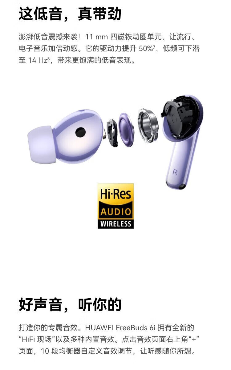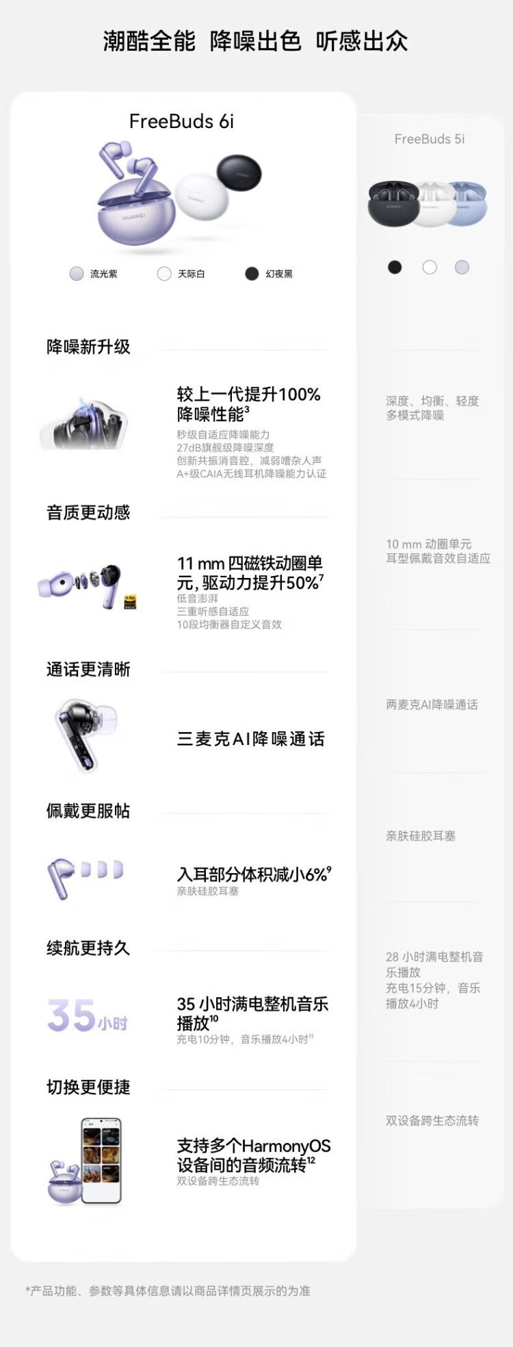 Huawei FreeBuds6i 7i True Wireless Bluetooth Earphones Active Noise Canceling Earphones In-Ear Sports Music Games Super Long Battery Life Gift Suitable for mate70pro+ Huawei FreeBuds 6i-Streamer Purple Binding + Posting Singles to Receive Luxury Gifts