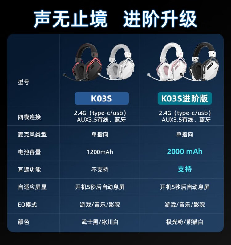 Siberia (XIBERIA) K03S wireless 2.4G Bluetooth gaming headset, head-mounted wired four-mode computer e-sports chicken mobile gaming headset, ultra-long battery life display, fps listening position, K03S Glacier White