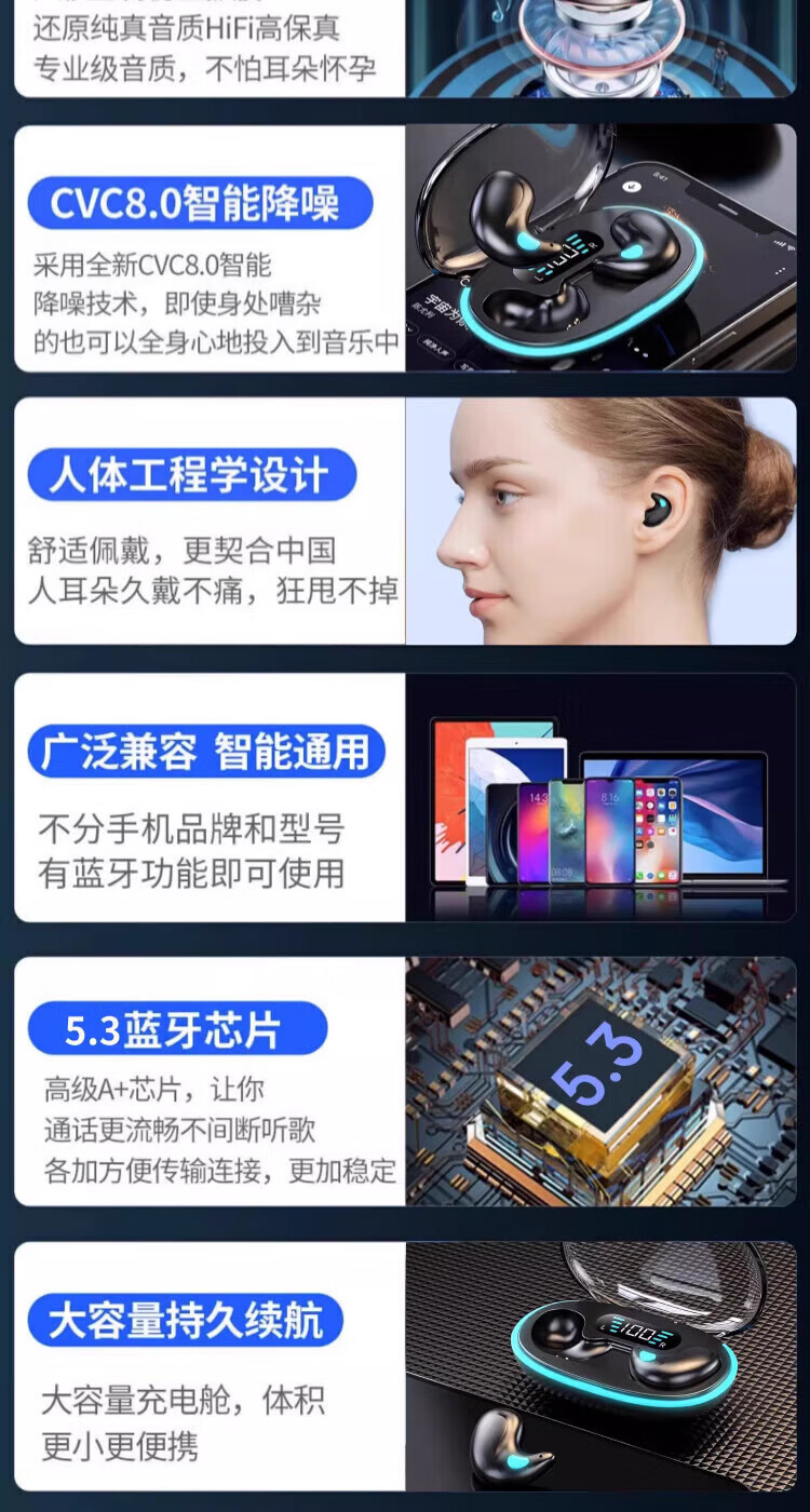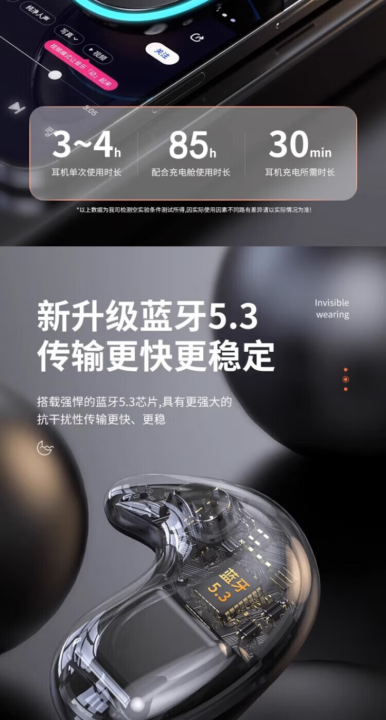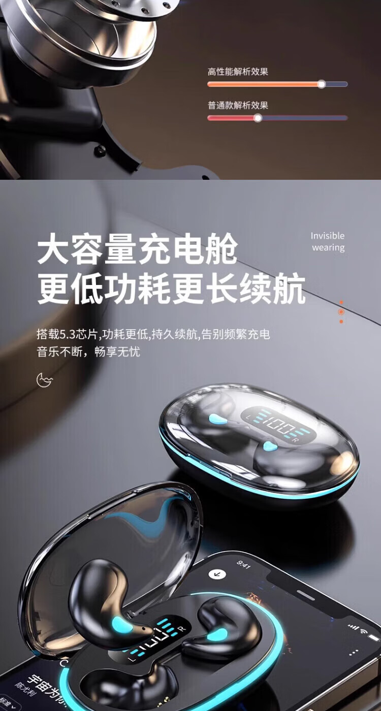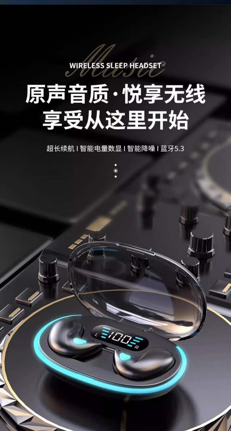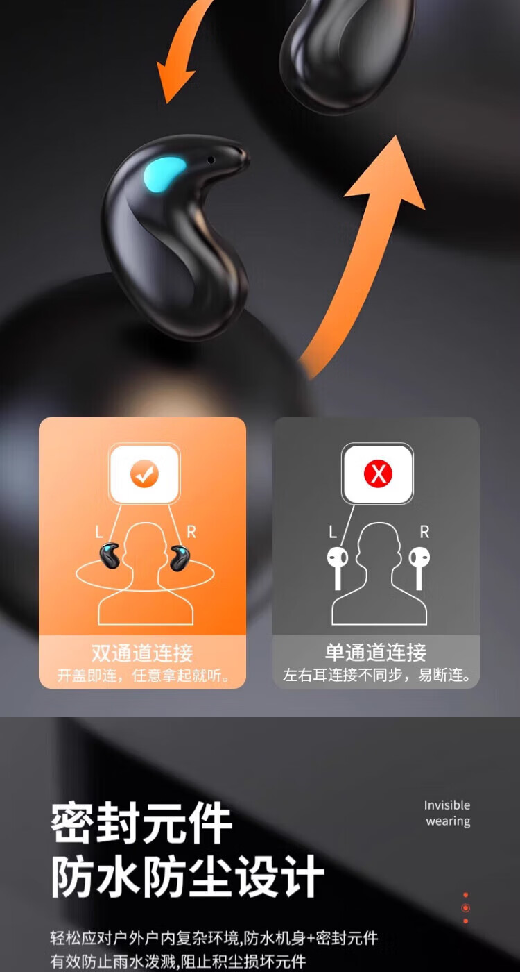 SR German Berlin Sound Sleep Headphones Bluetooth Headset Bone Conduction On-Ear Invisible Mini True Wireless In-Ear Ultra-Long Battery Active Noise Reduction Call Clear Flagship Black Bluetooth 5.3