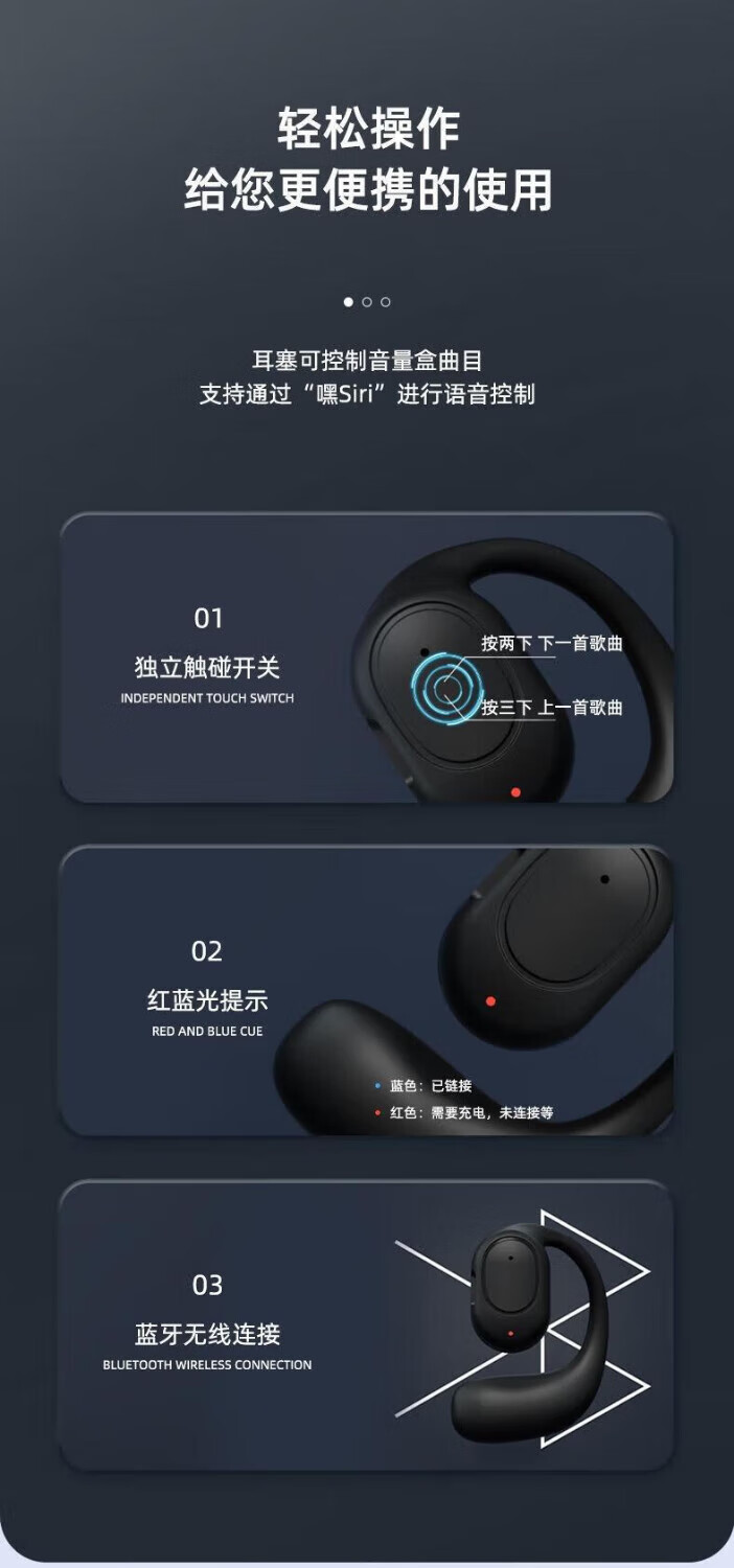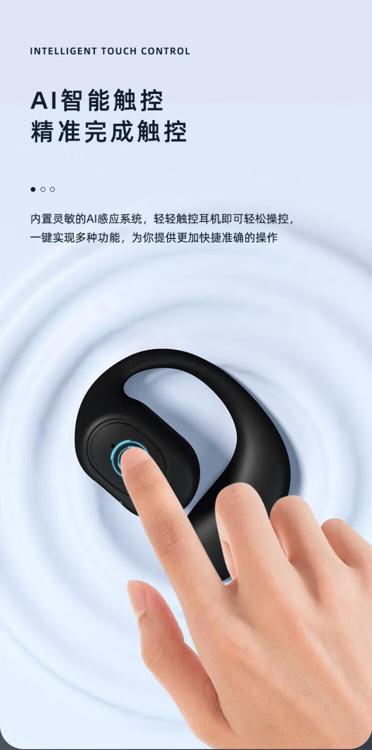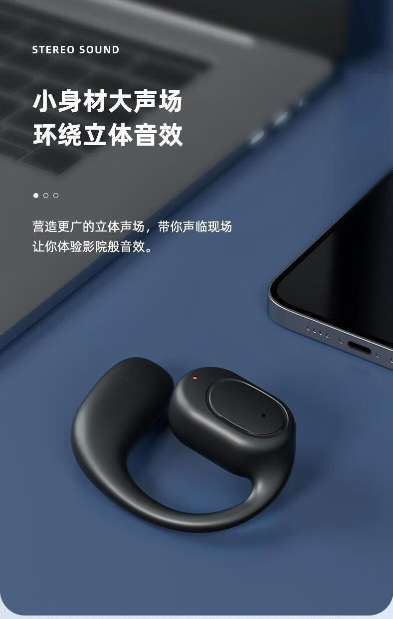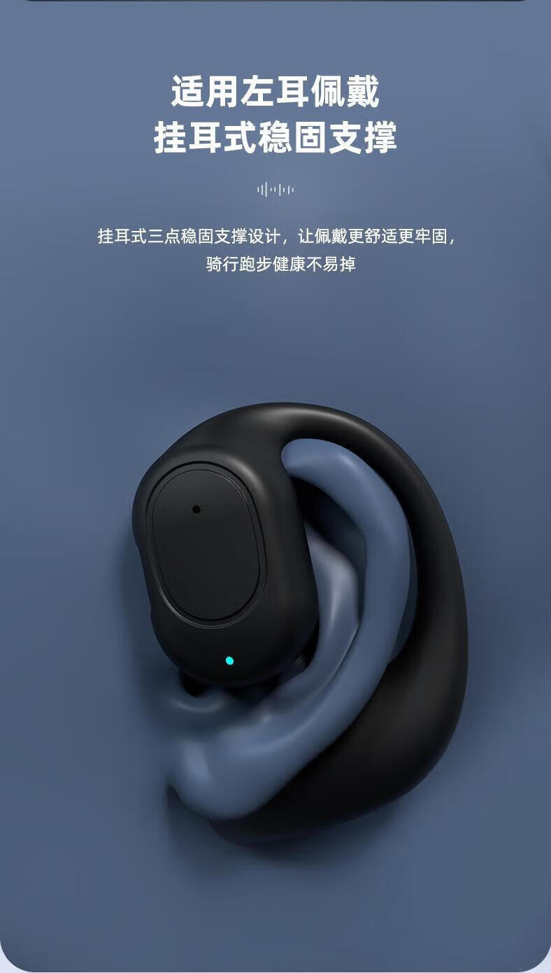Shell Mok Bluetooth headset, open, in-ear, bone conduction, large capacity, long battery life, standby call, noise reduction, high-definition sound quality, suitable for Huawei, Apple, vivo, Xiaomi, cool black, ultra-clear call, incoming call number, universal