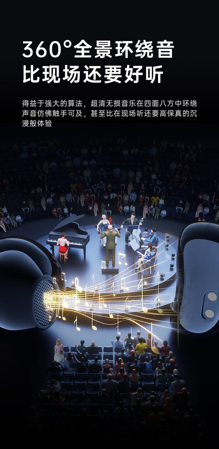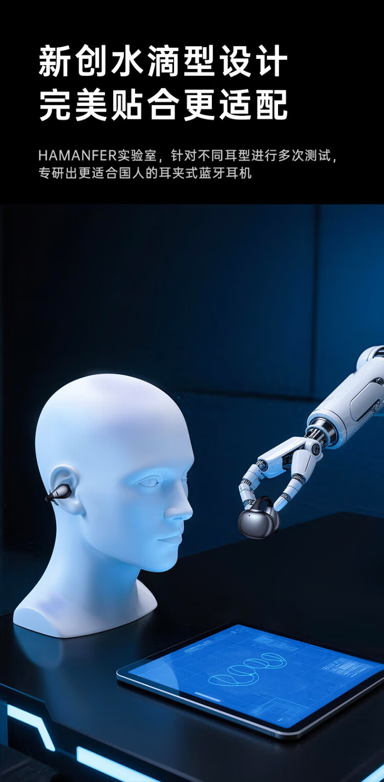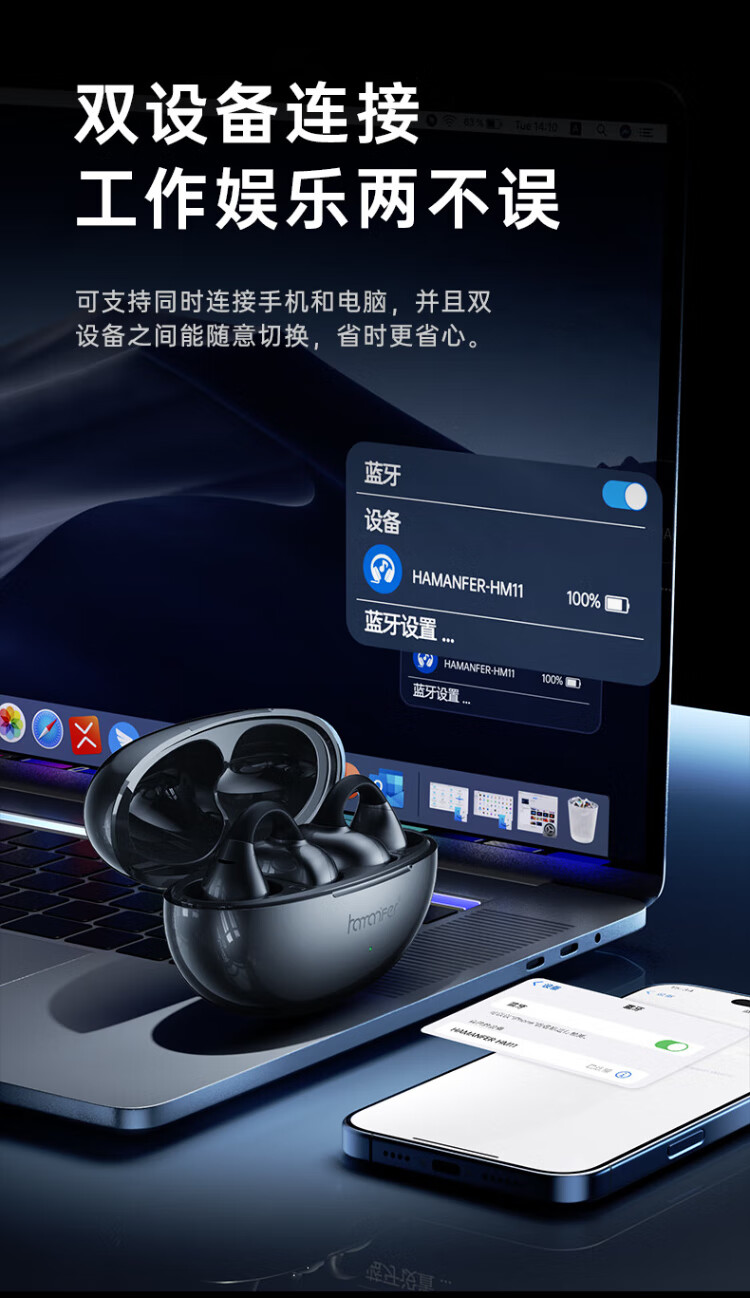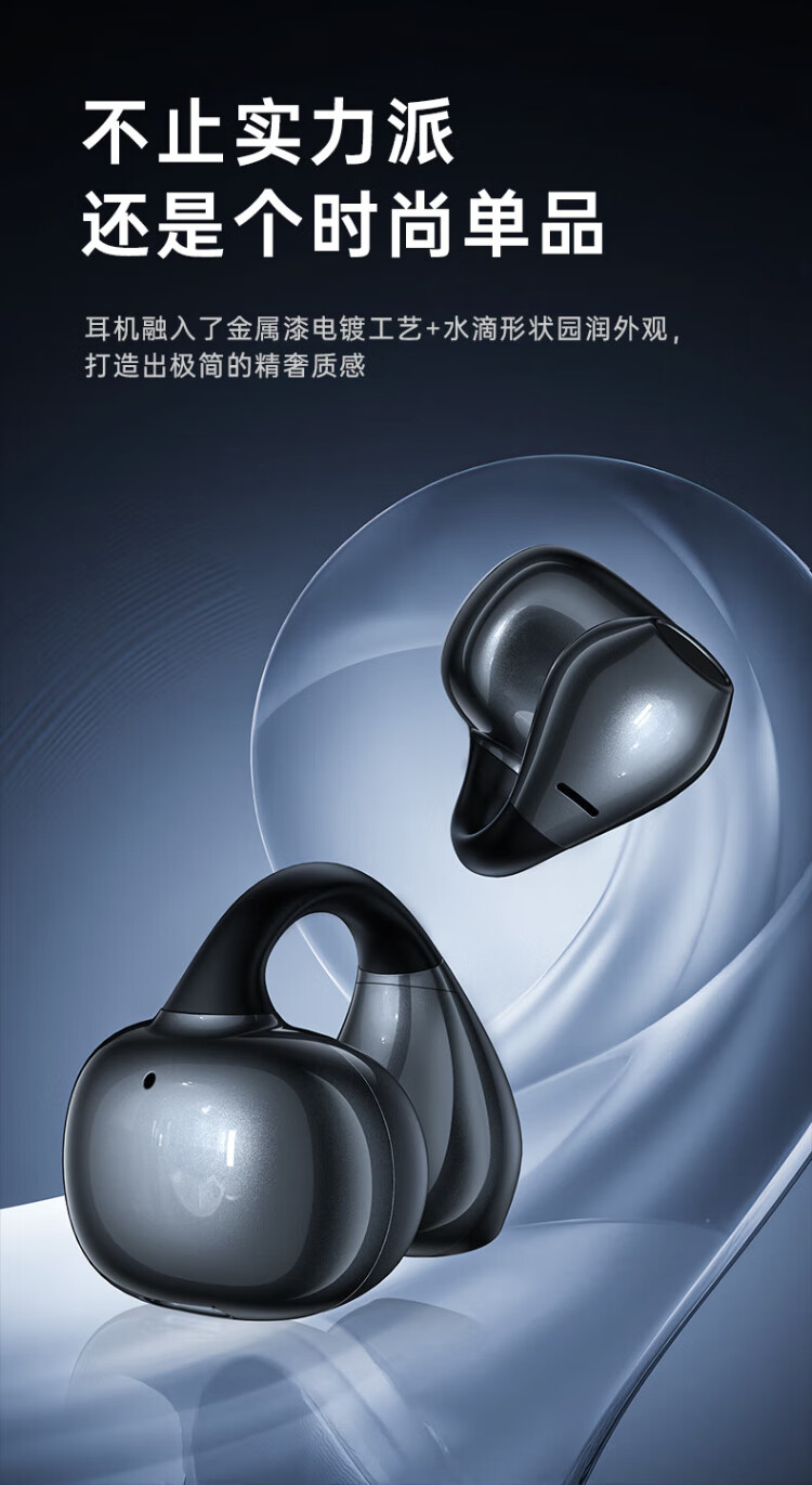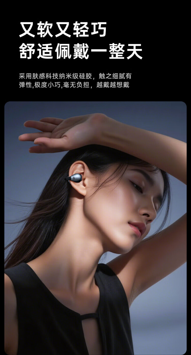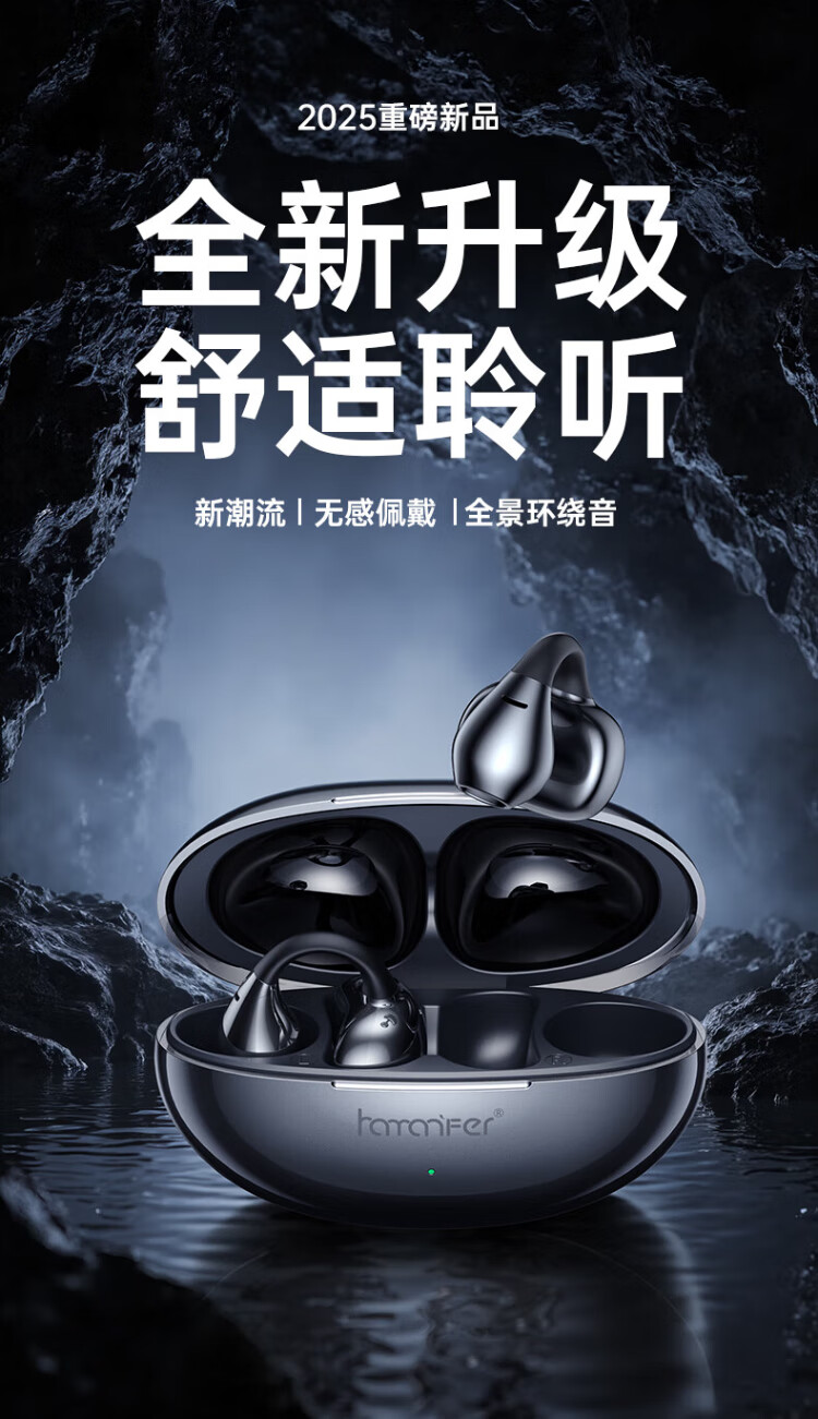 HAMANFER German Brand Voice of Berlin/Top New Bluetooth Headset Ear Clip Type Open True Wireless In-Ear Game Sports Call Noise Reduction Suitable for Apple Huawei Starry Sky Black Panoramic Surround Sound丨Cloud Sense Wearing