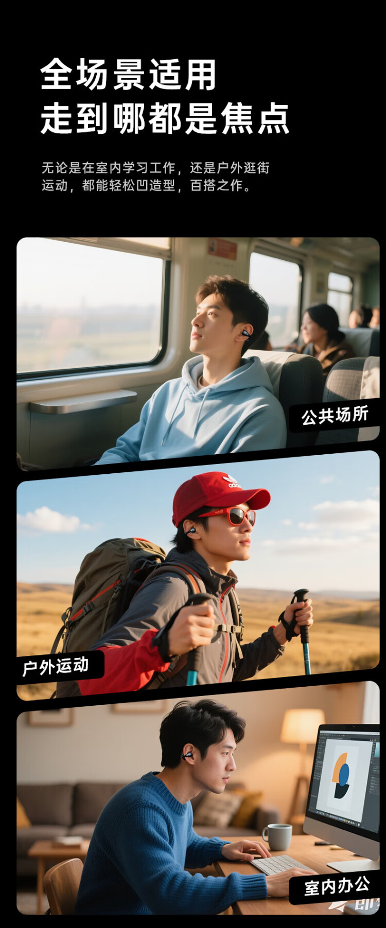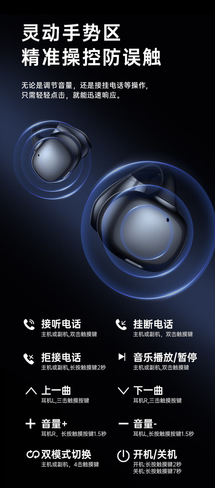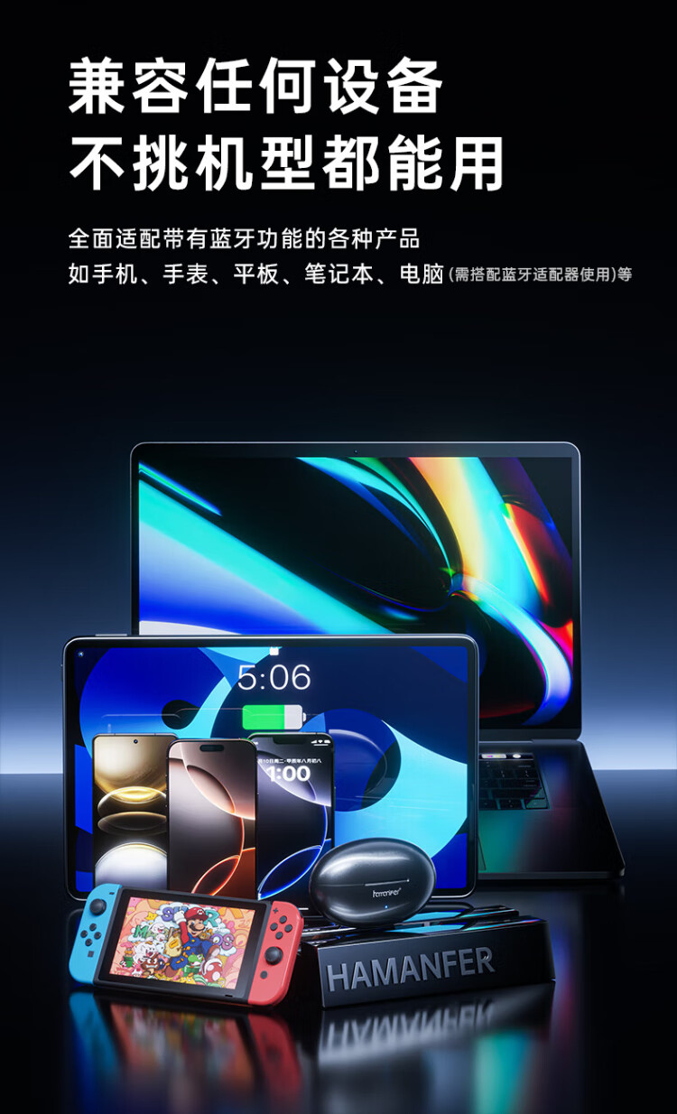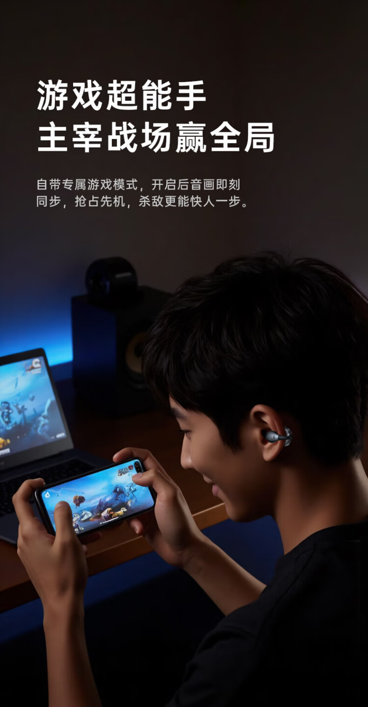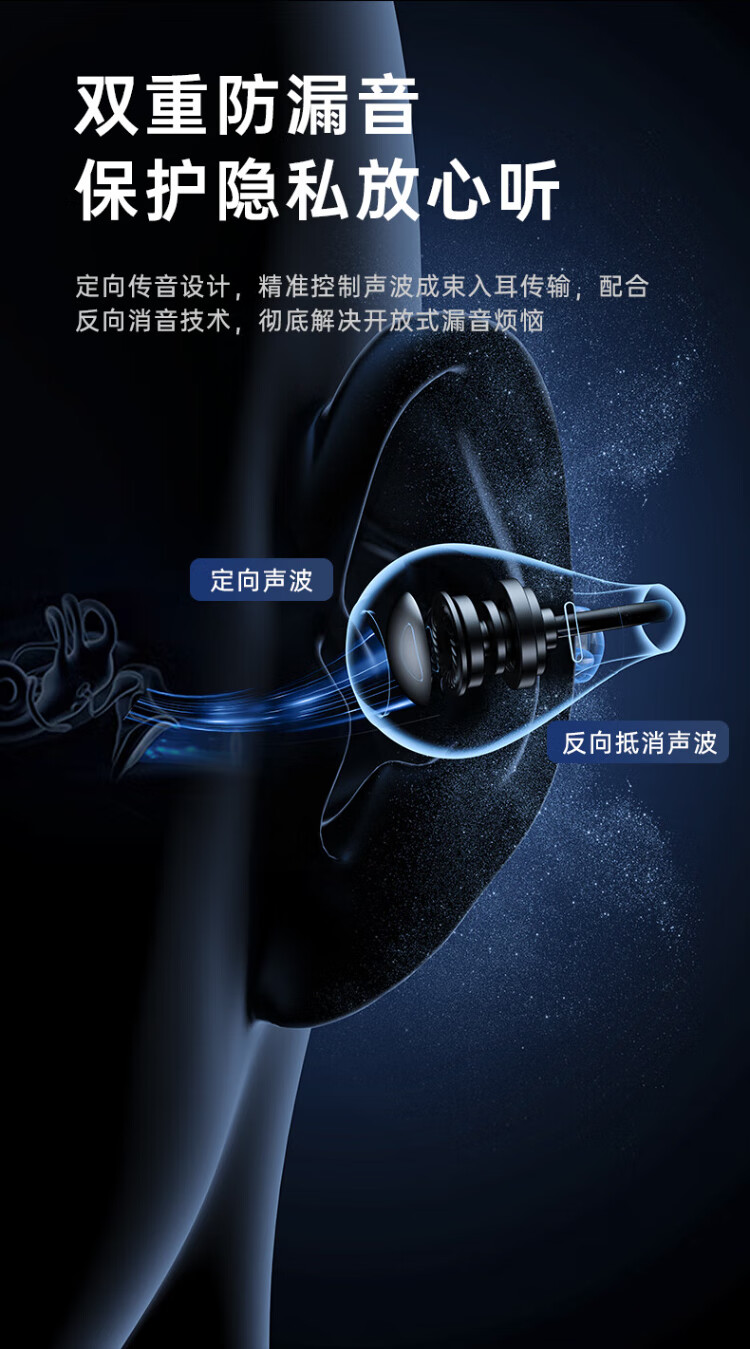 HAMANFER German Brand Voice of Berlin/Top New Bluetooth Headset Ear Clip Type Open True Wireless In-Ear Game Sports Call Noise Reduction Suitable for Apple Huawei Starry Sky Black Panoramic Surround Sound丨Cloud Sense Wearing