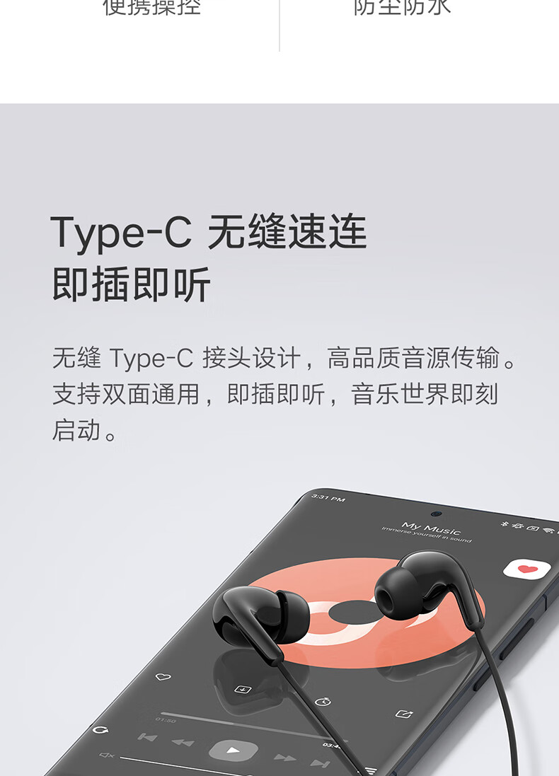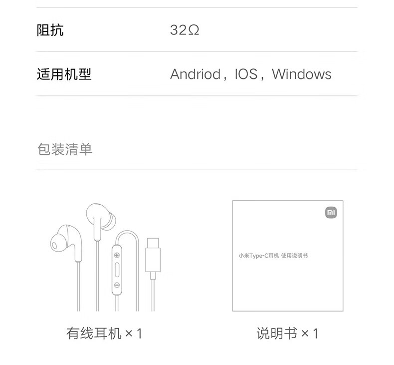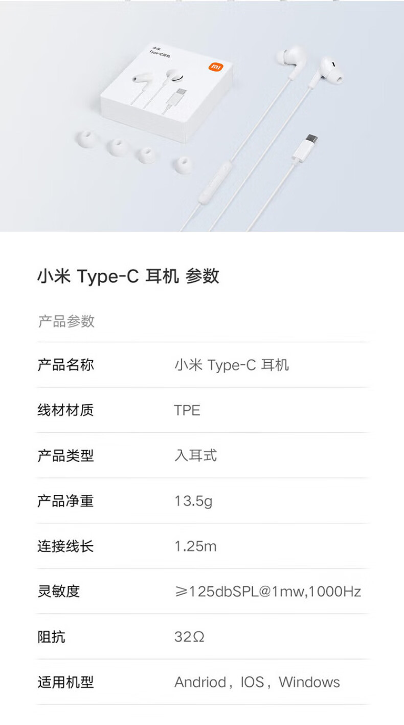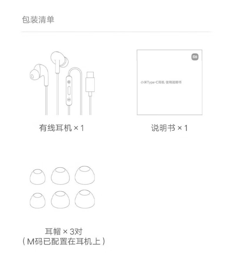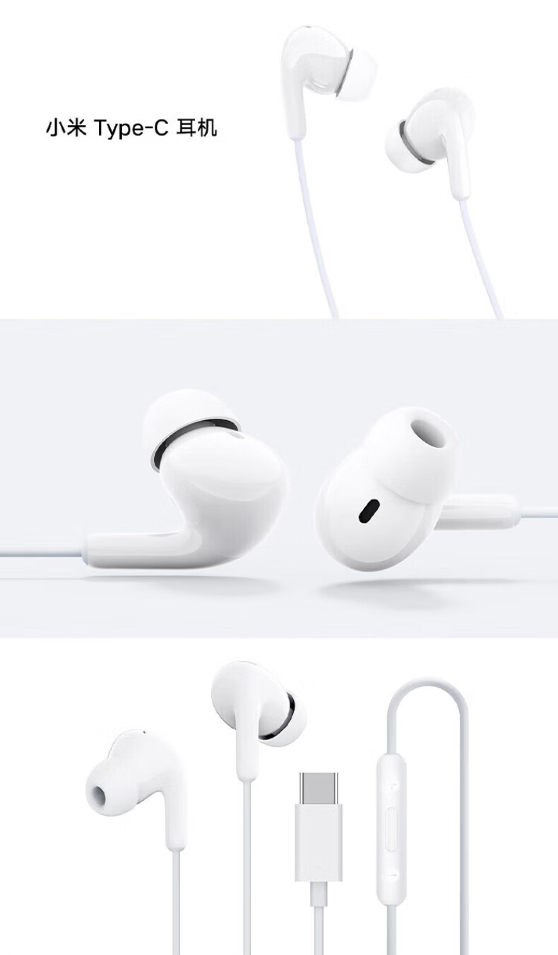 Xiaomi original typec wired headphones in-ear music sports headphones Huawei Honor Android Apple Universal Xiaomi Type-C headphones white