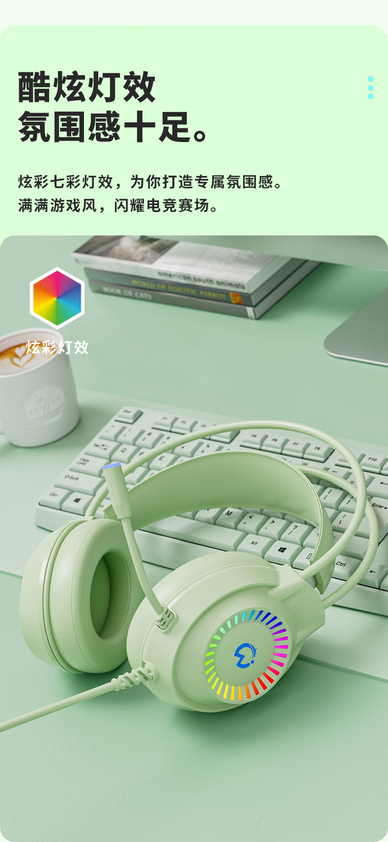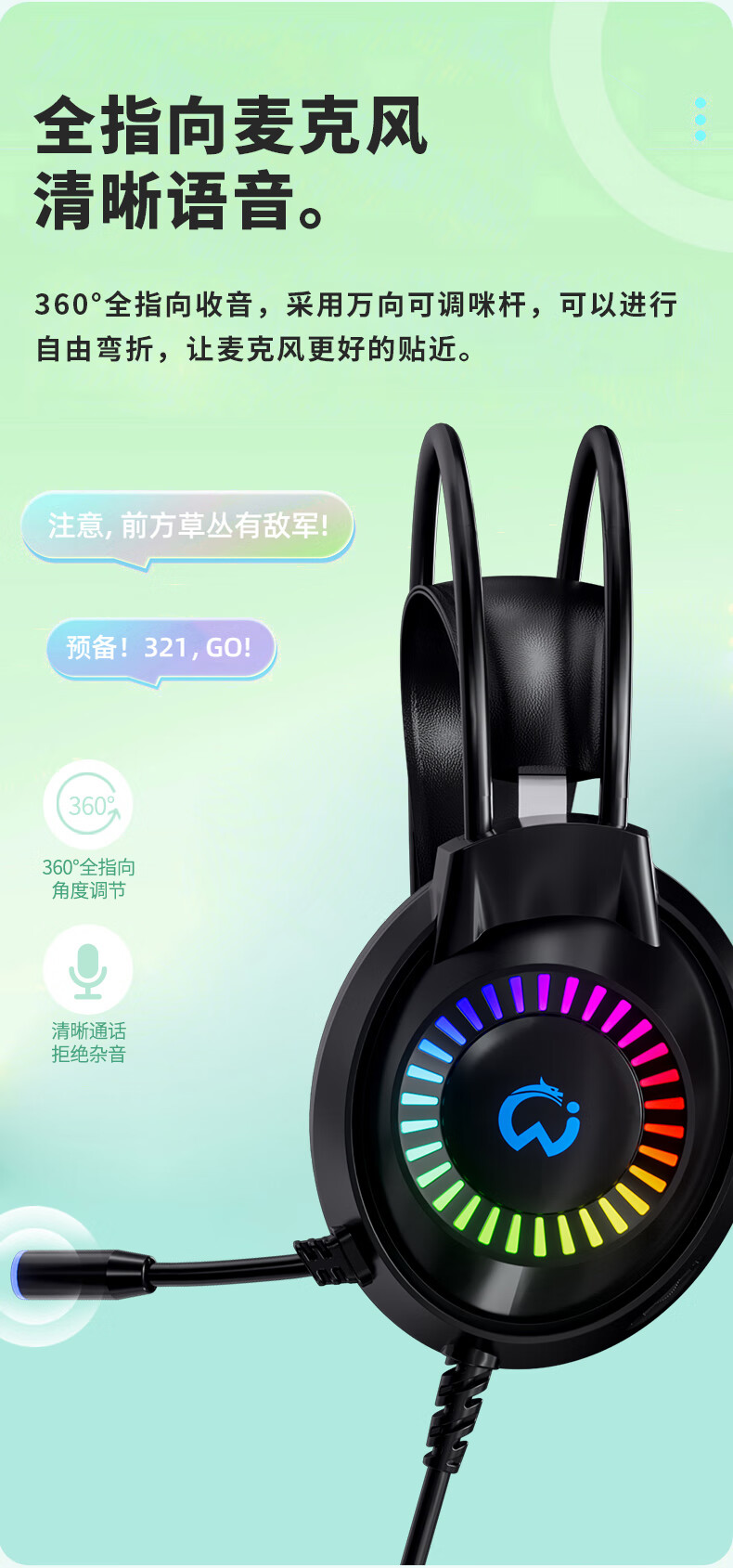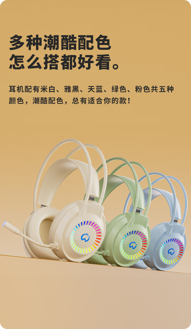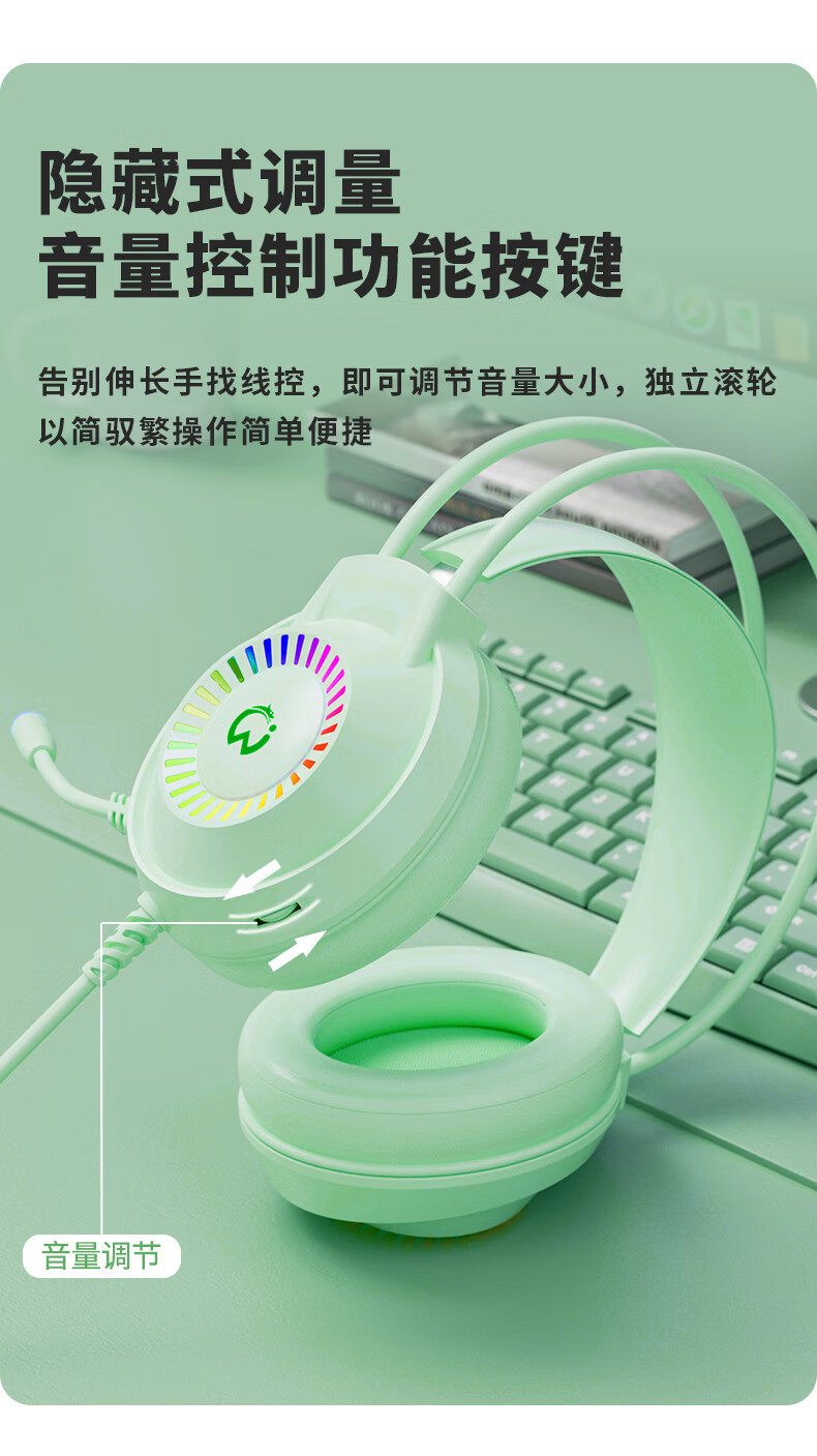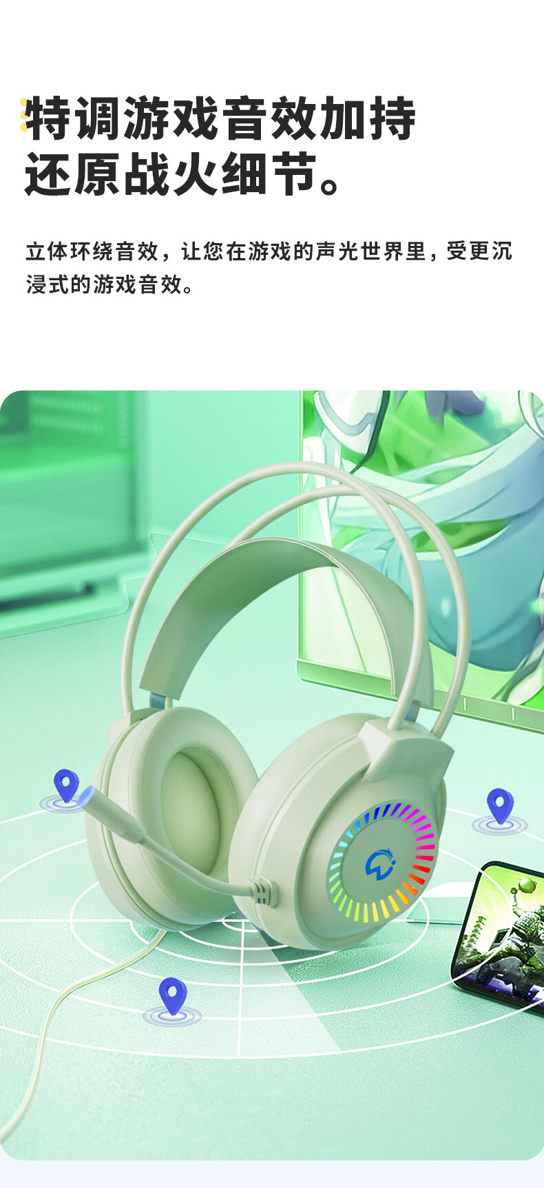 Hunter mobile phone headset with microphone gaming e-sports desktop dedicated wired notebook Type-C headset sky blue single plug-3.5MM single round hole notebook for Dolby surround sound