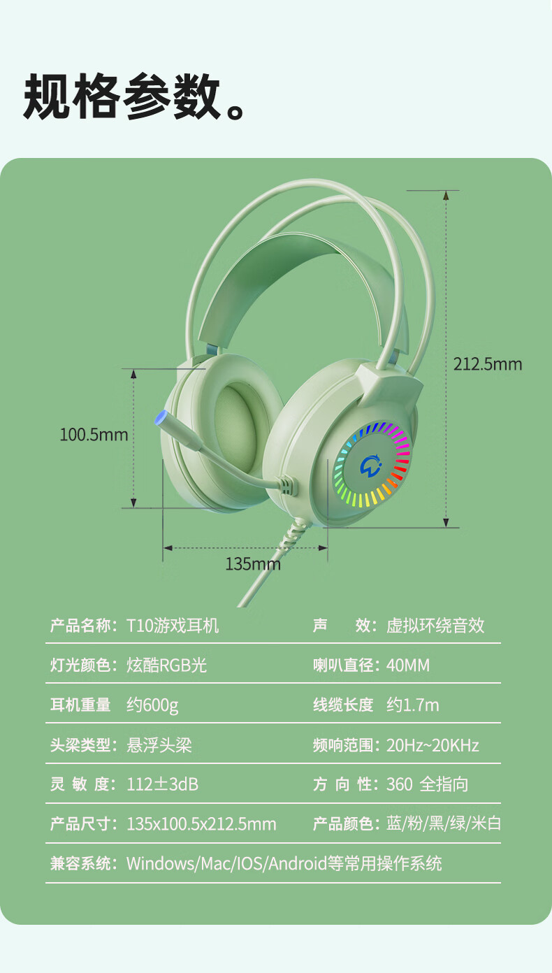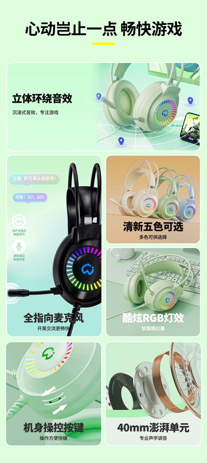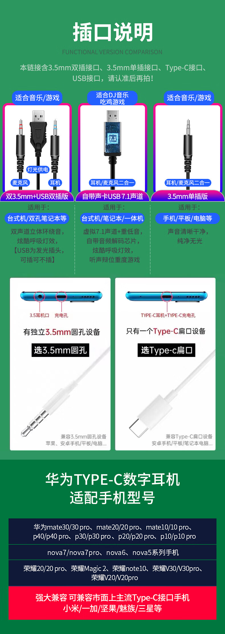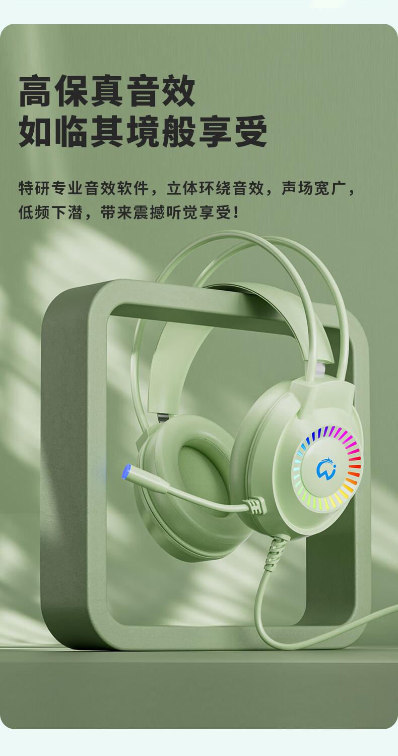 Hunter mobile phone headset with microphone gaming e-sports desktop dedicated wired notebook Type-C headset sky blue single plug-3.5MM single round hole notebook for Dolby surround sound
