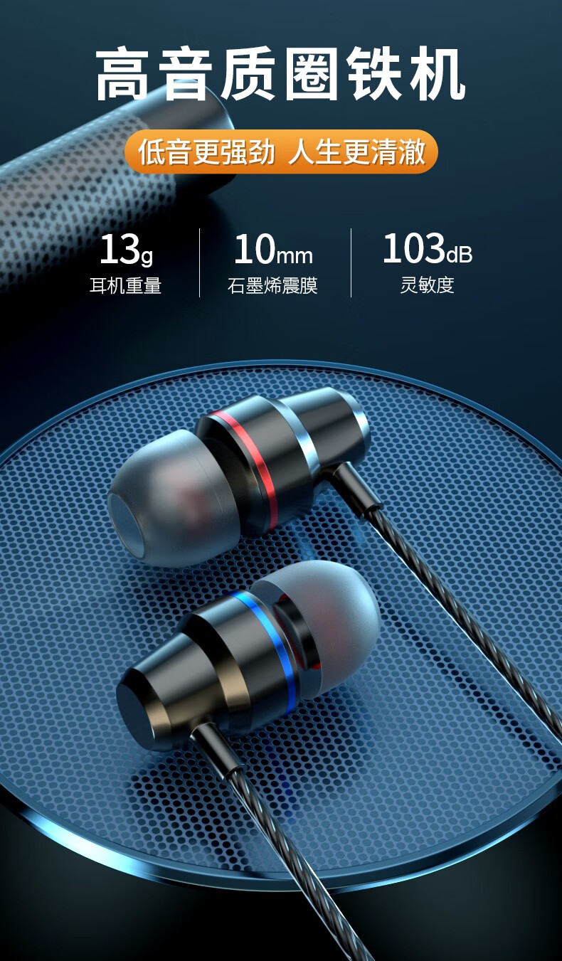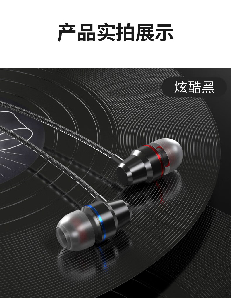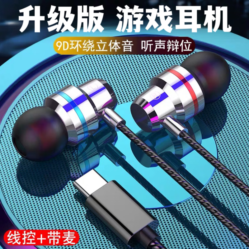 Wired earphones Type-c interface in-ear type suitable for Android Huawei Apple Xiaomi mobile phone calls karaoke sports running games eating chicken computer free storage bag cool black flat mouth