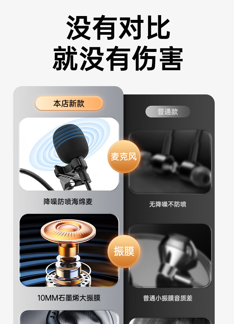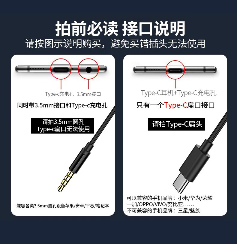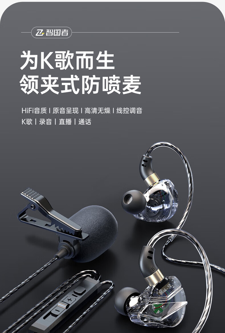 Suoying dual-mic noise reduction and anti-blowout wired earphones for karaoke type-C port 3.5mm singing mobile phone recording live broadcast microphone all-in-one singing bar with built-in sound card to record songs for everyone capacitor dual microphone + 14mm dynamic coil Type-C karaoke earphones dedicated for mobile phone recording