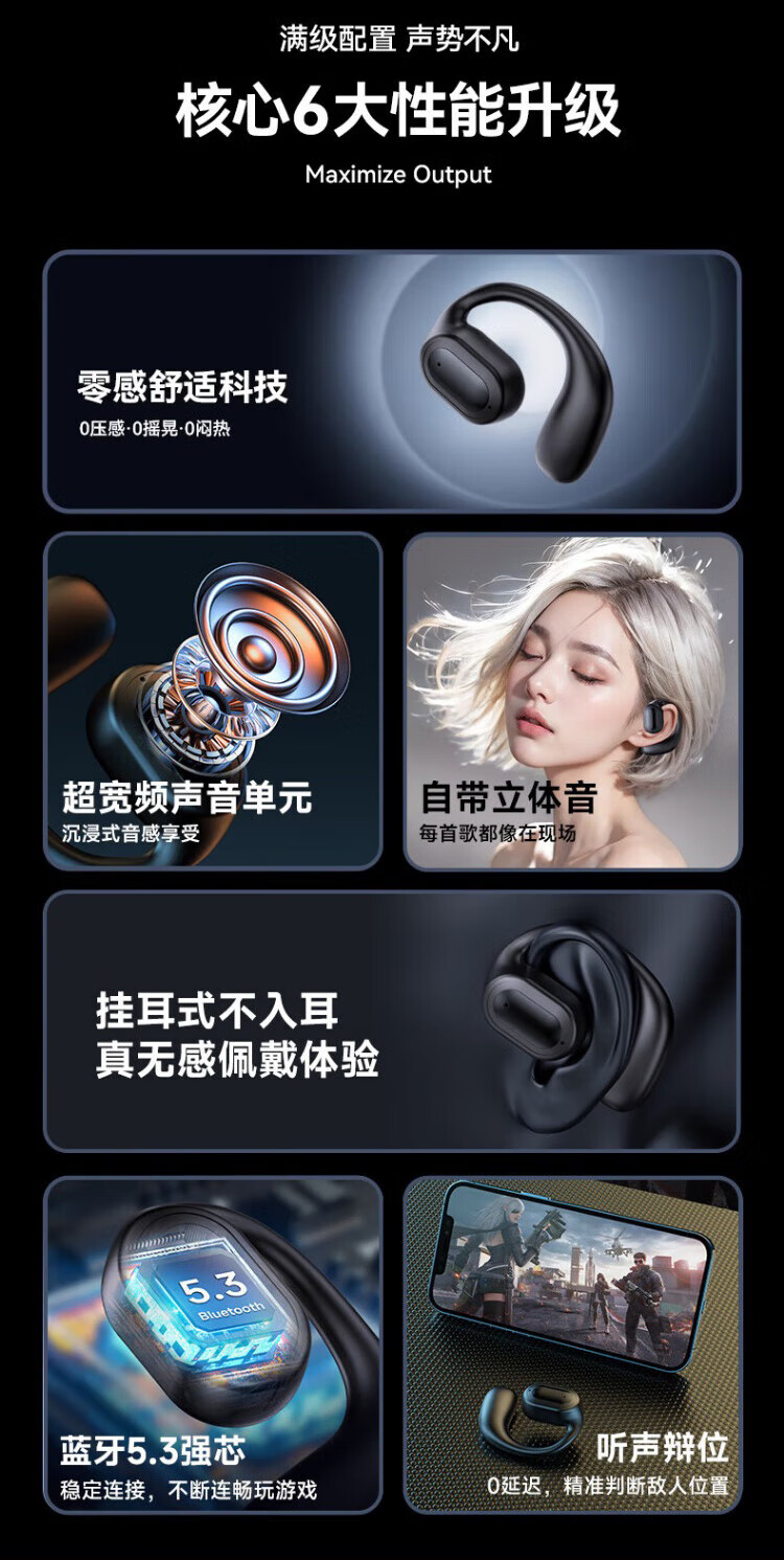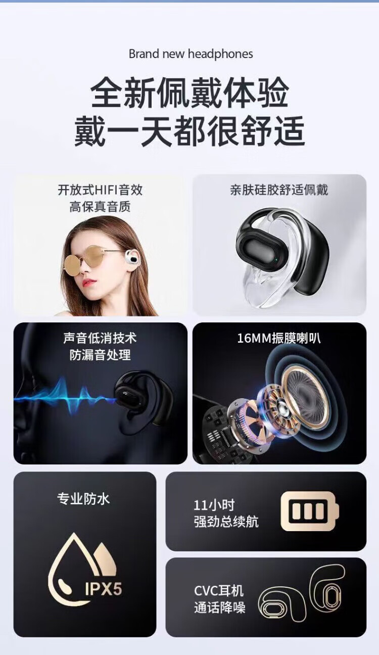 Welfare exclusive wireless ear-mounted Bluetooth headset, left ear, not in the ear, sports, running, cycling, driving, calling, Apple, Huawei, Xiaomi, OPPO Honor mobile phone, regular style - black bag