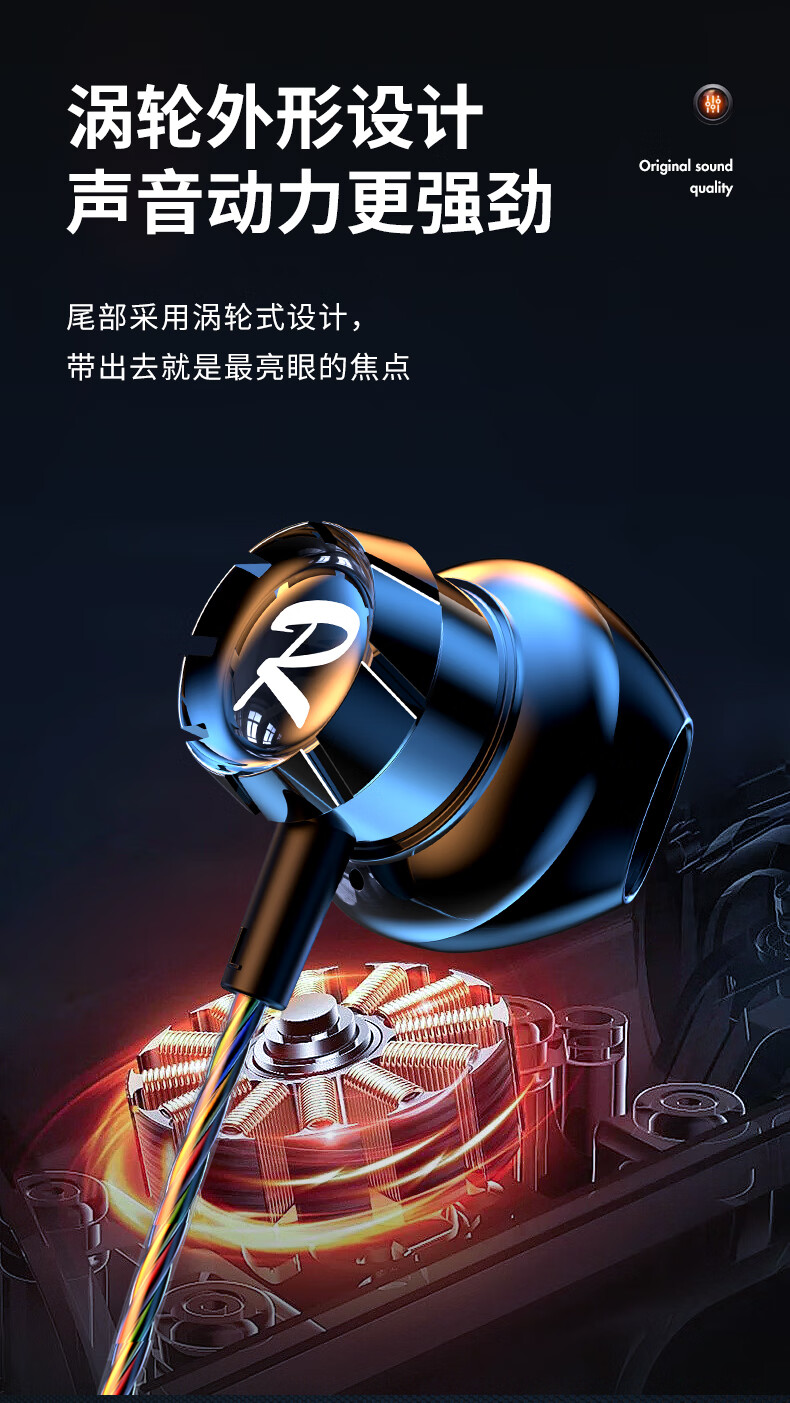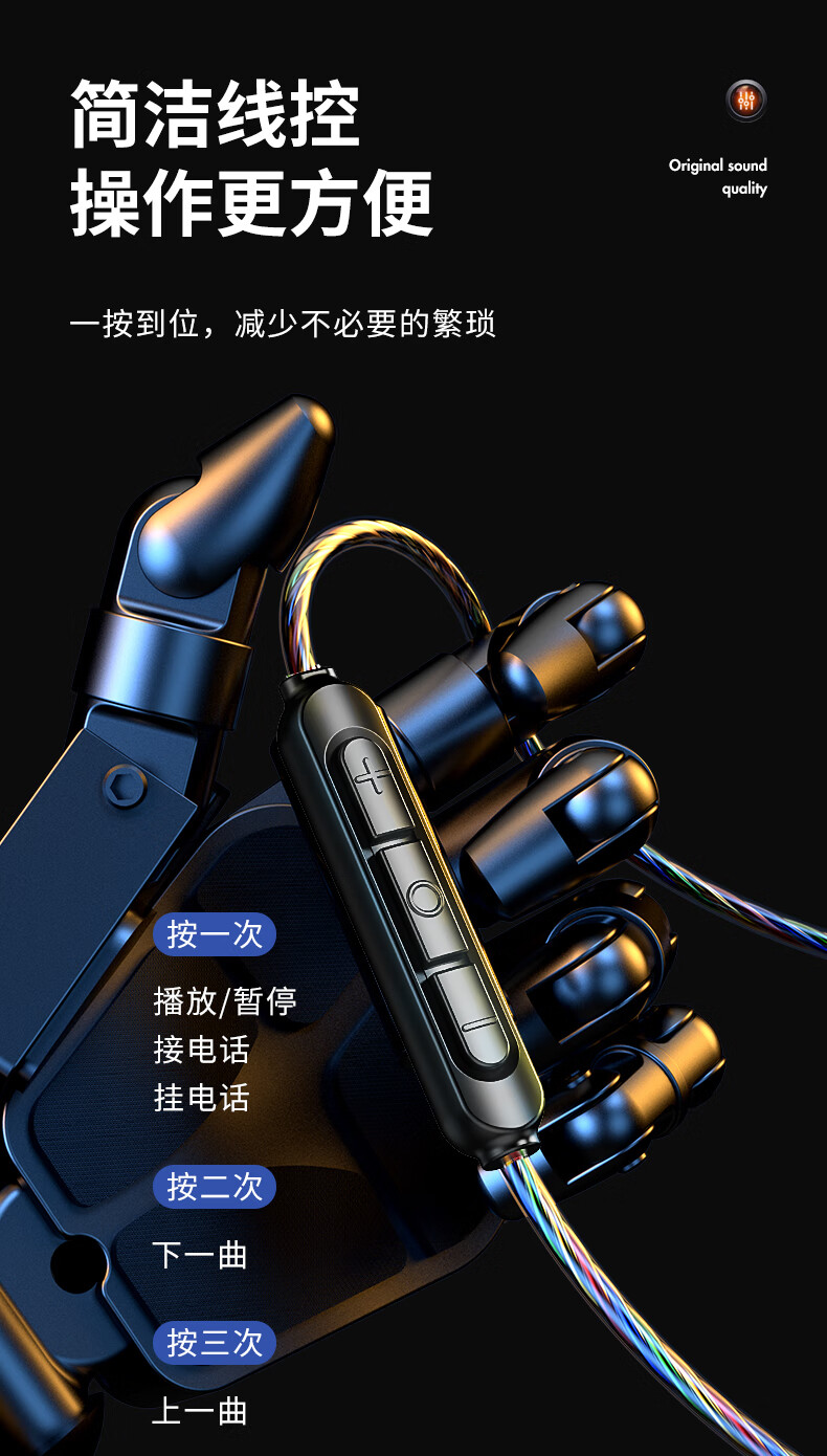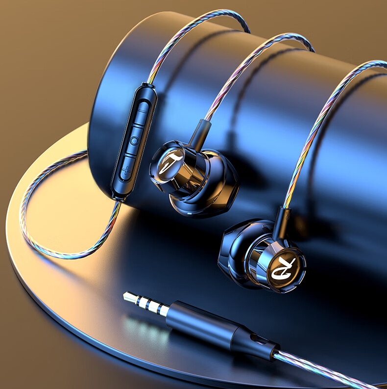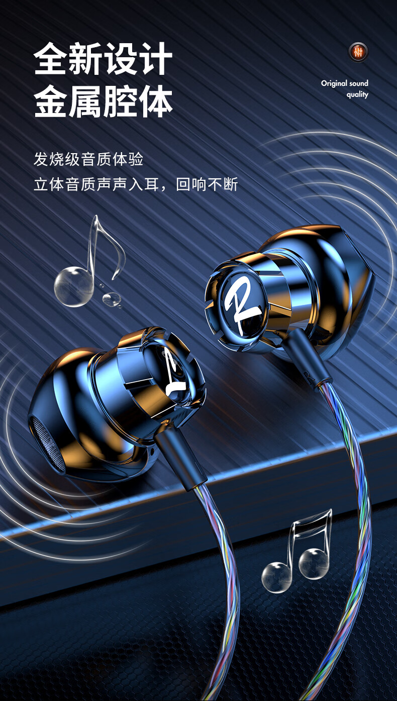 Metal wired semi-in-ear headphones digital type-c flat head high quality heavy bass shocking convenient wire control with microphone clear voice universal mobile phone earplugs white 3.5mm round head