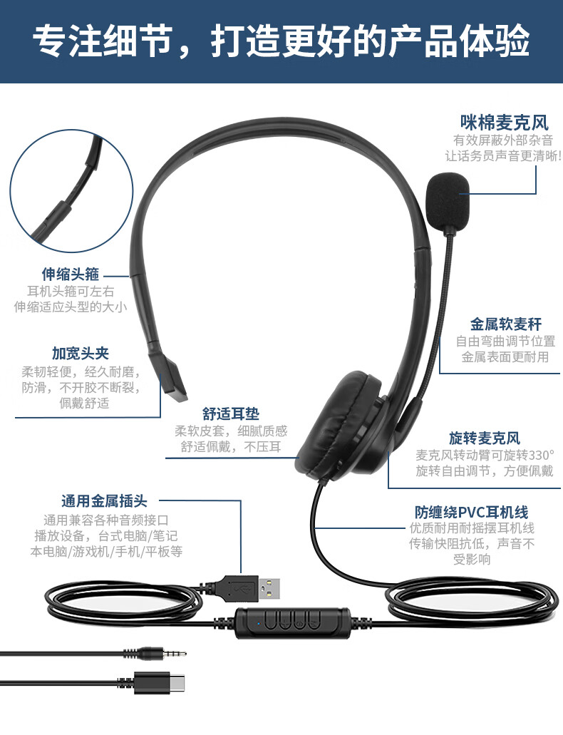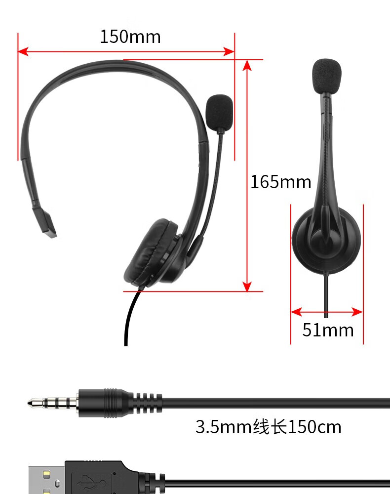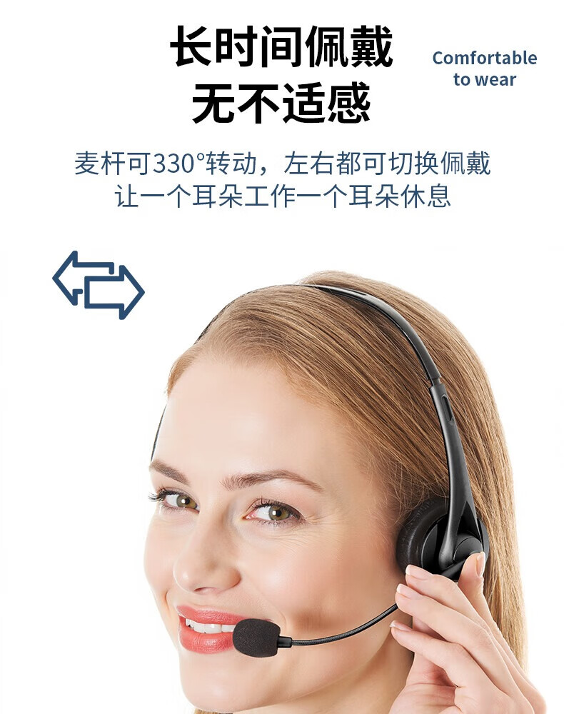 Operator's special headset, customer service headset, noise reduction, mobile phone, desktop laptop, headset, outbound call sales, telemarketing, student online class, wired with microphone, headset, USB interface-tuning function