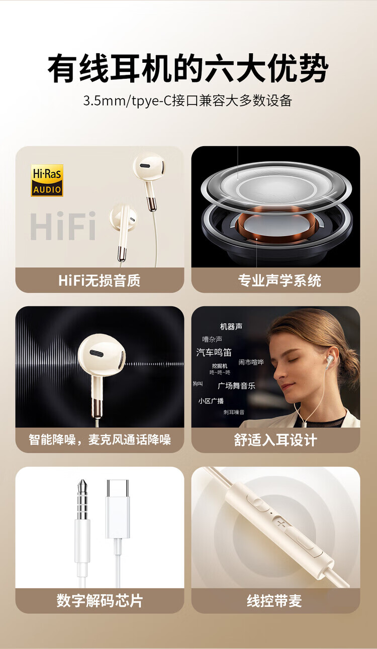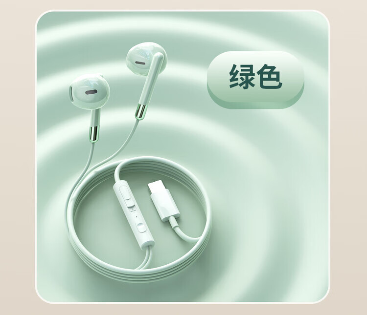 Sawang German digital headphones wired in-ear typec high-quality HIFI noise reduction K-singing mobile phone tablet round hole mobile phone headphones upgraded version Type-C flat mouth wire control with microphone 14mm dynamic coil green