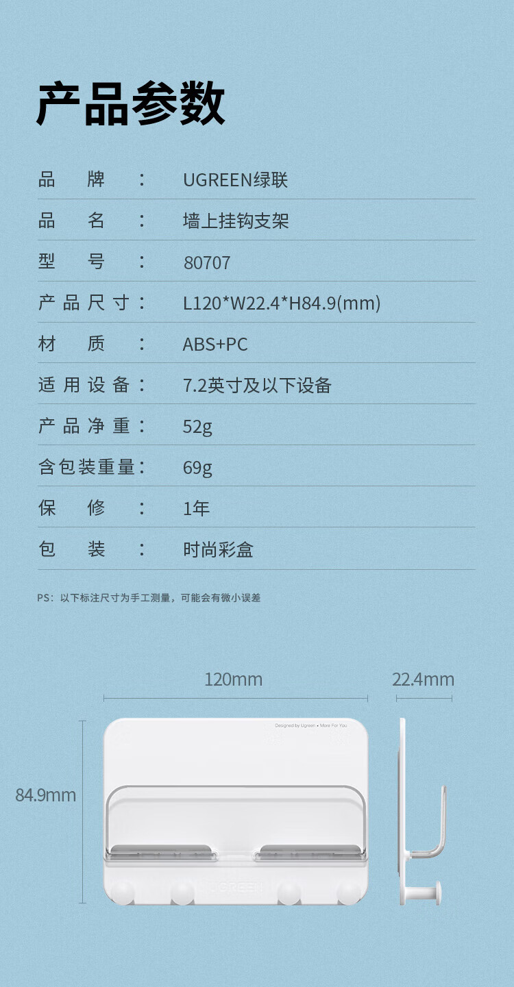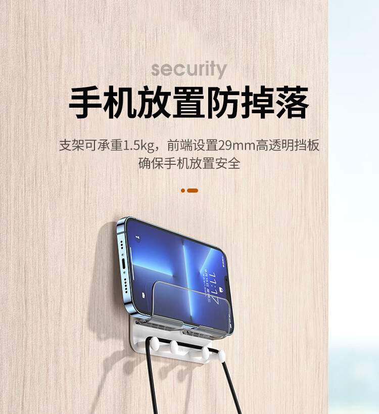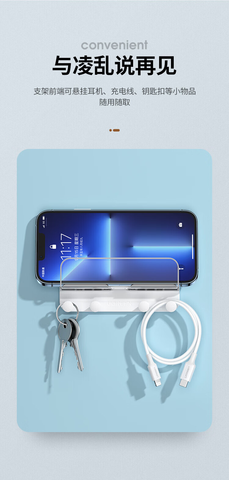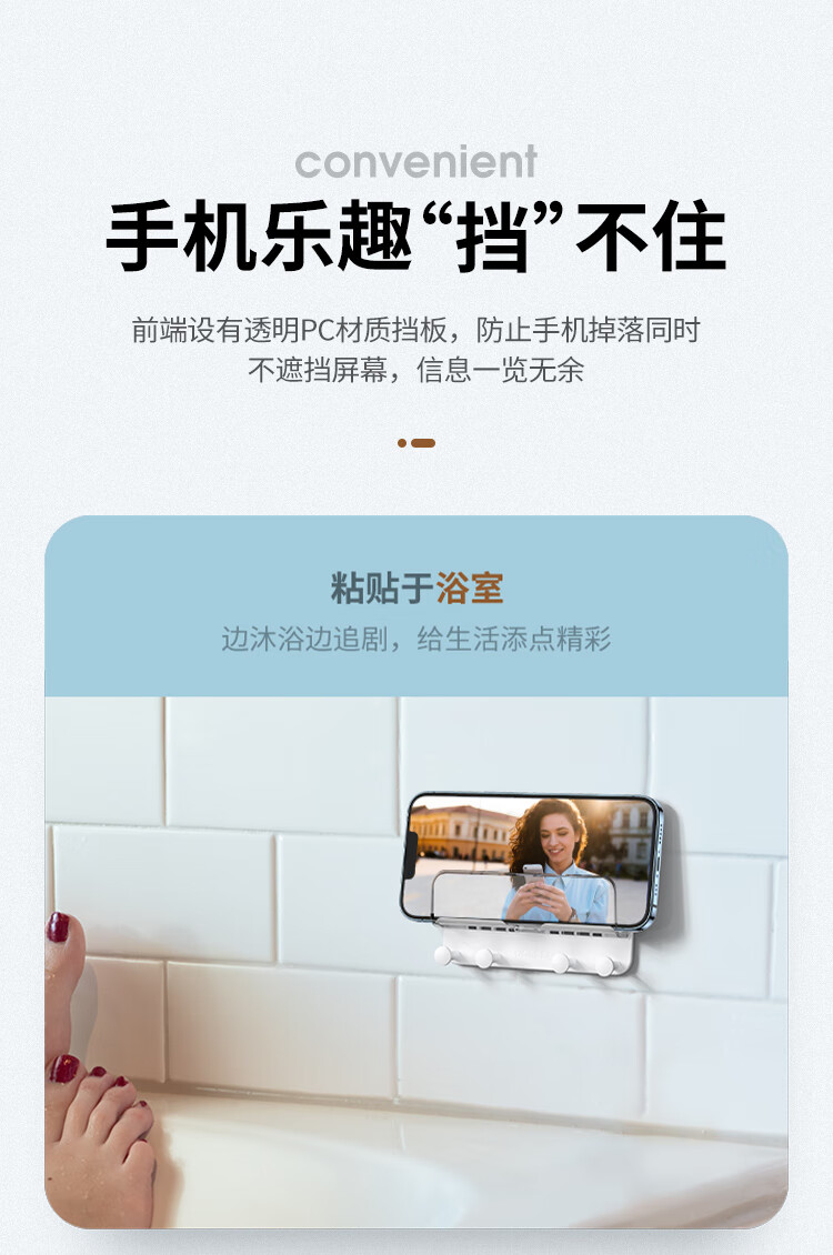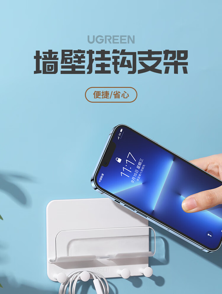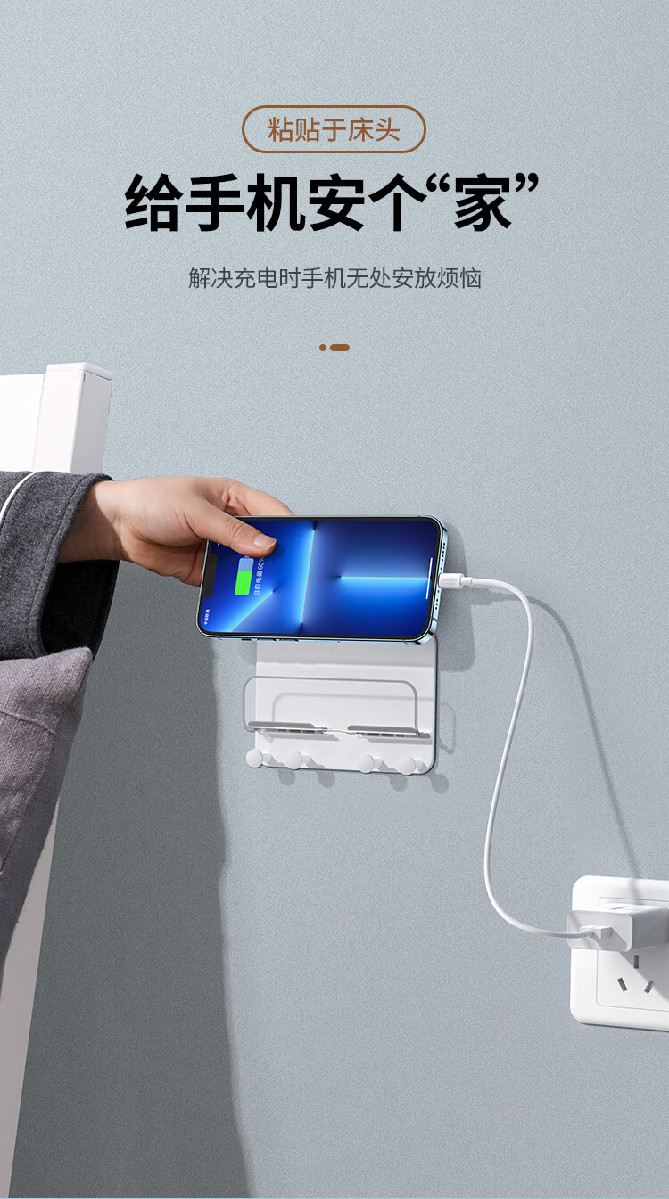 Green Union wall-mounted mobile phone holder multi-functional shelf bedroom bedside bathroom kitchen mobile phone holder wall punch-free adhesive support bracket suitable for Apple 17 Huawei Xiaomi