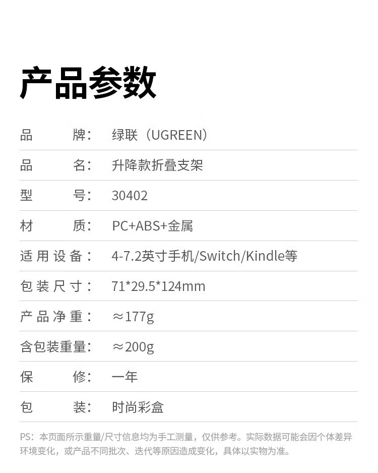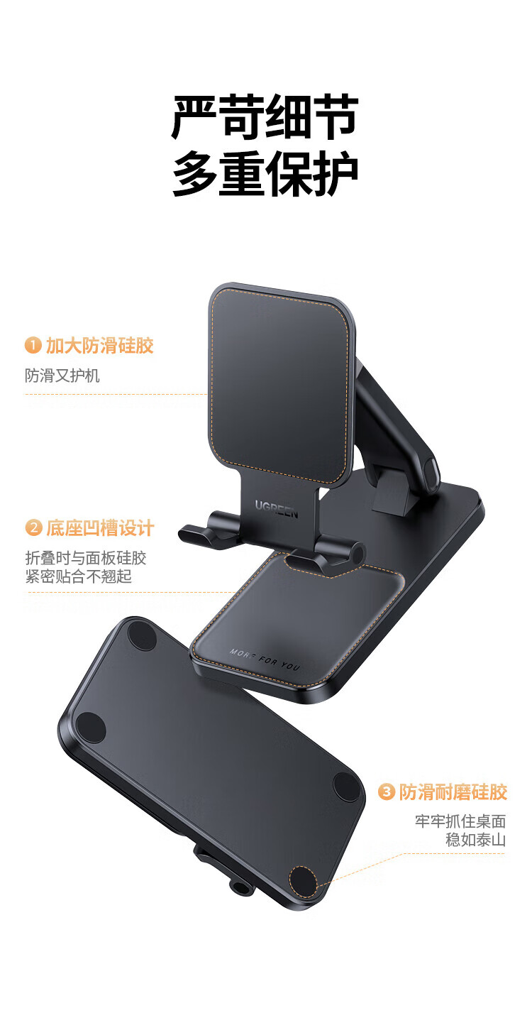 绿联手机支架 桌面折叠升降平板ipad支架懒人床头直播阅读追剧多功能小巧便捷伸缩支架适用iPhone17/16
