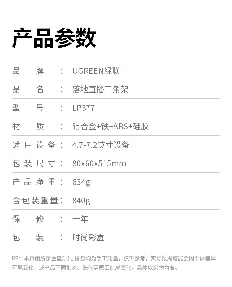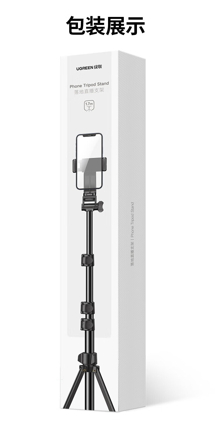 绿联手机支架落地直播支架自拍杆三脚架多功能便携视频录制户外立式俯拍伸缩支架铝合金适用苹果17小米