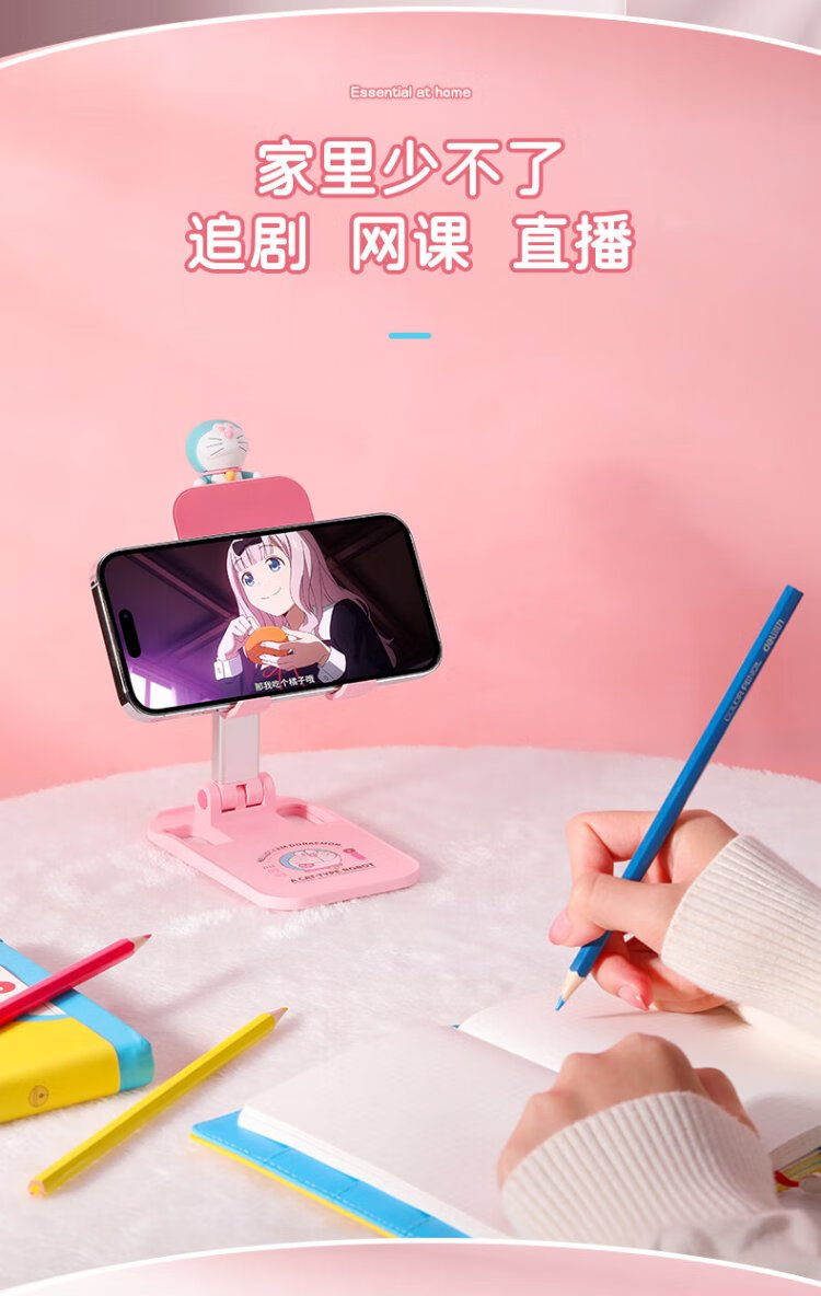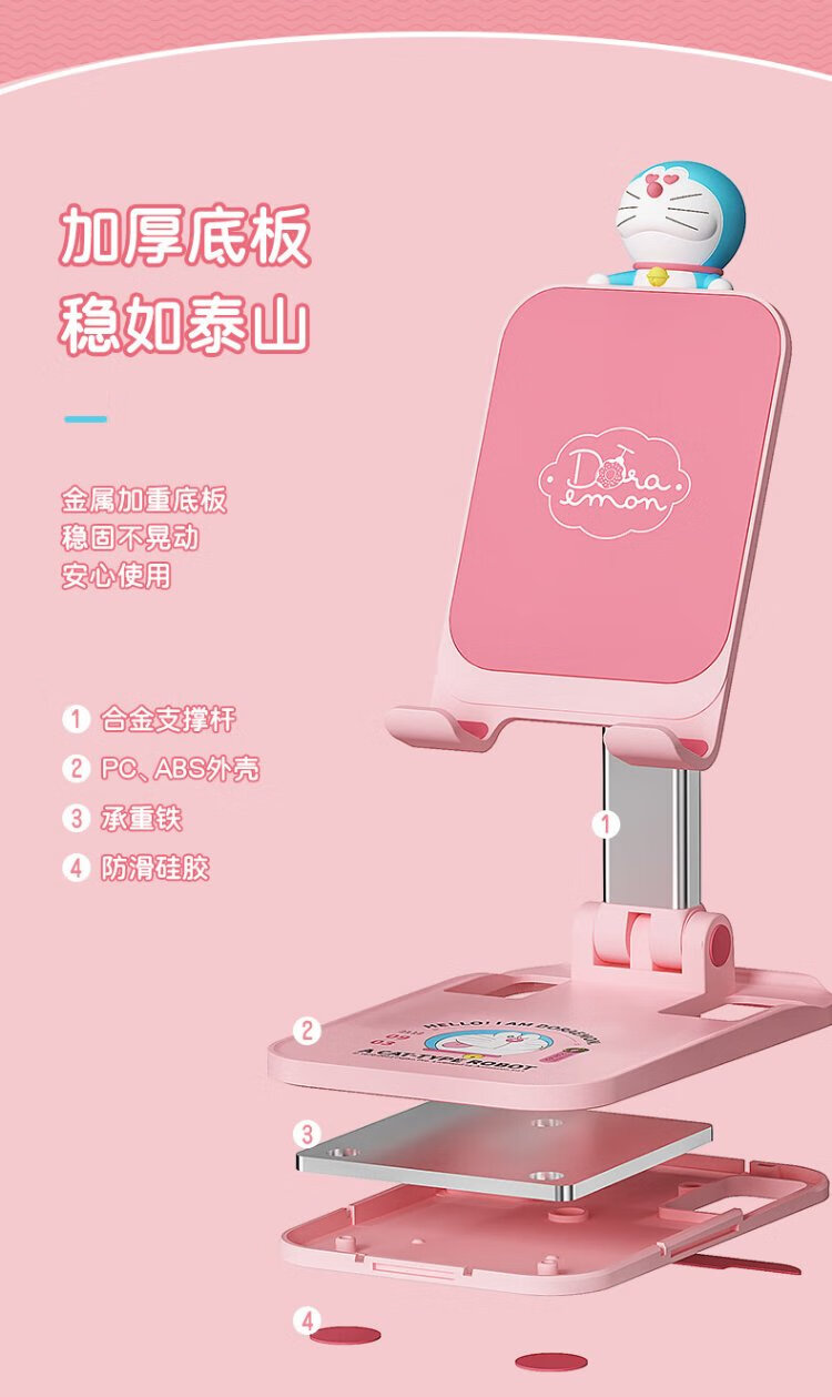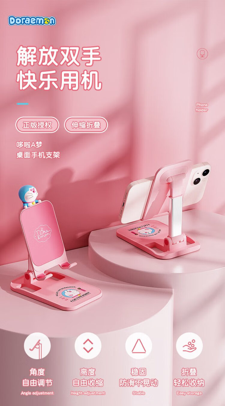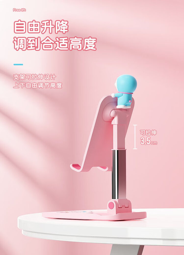 ROCK Doraemon mobile phone holder desktop tablet lazy live broadcast game eating chicken online class chasing drama multi-functional compact powder folding portable lift-adjustable belt doll model