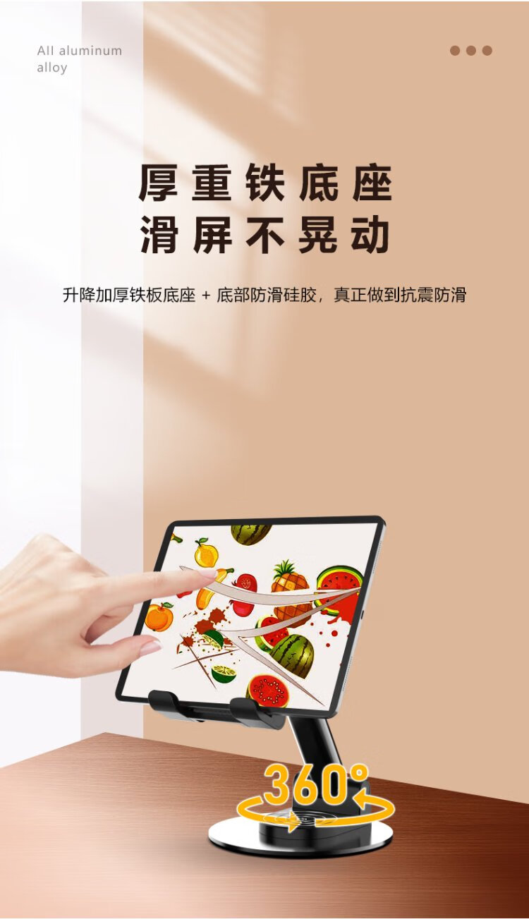 Kewo Liftable + Rotating Mobile Phone Stand Desktop iPad Tablet Stand Lazy Stand Bedside Thickened Metal Base for Drama Multifunctional Apple 17 Air Stand