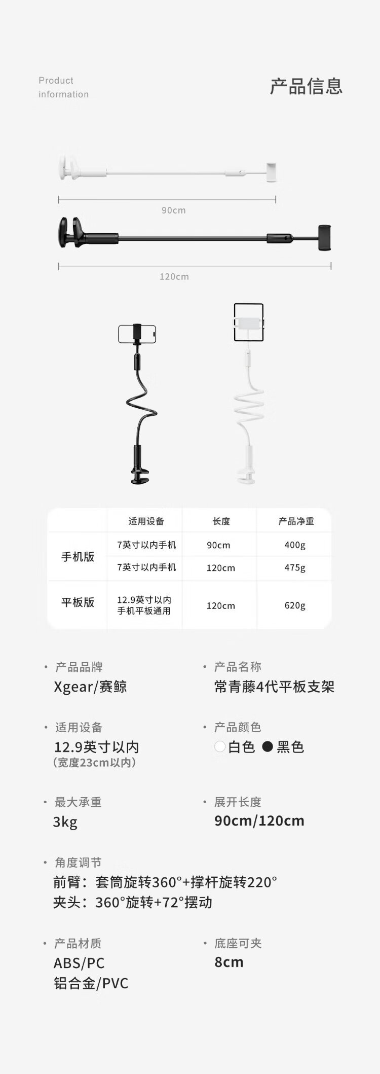 Sai Whale Ivy 4 Tablet Bracket Mobile Phone Bracket Bedside Mobile Phone Bracket Lazy iPad Bracket Bedside Desktop Sofa Chasing Drama Artifact Suitable for Multiple Devices Extra Long Bracket